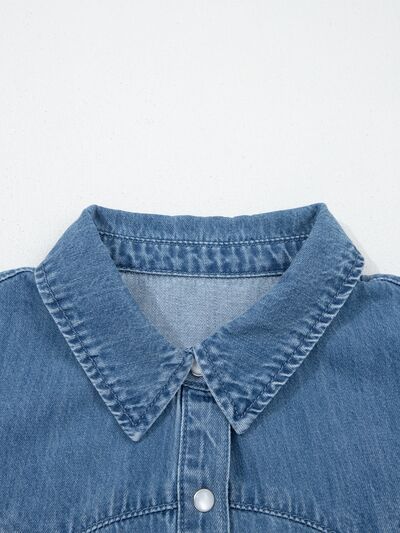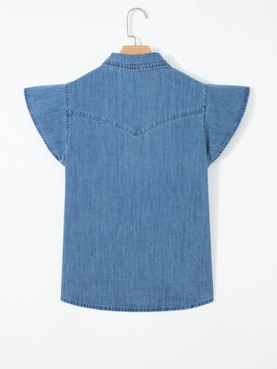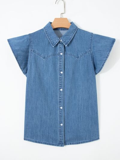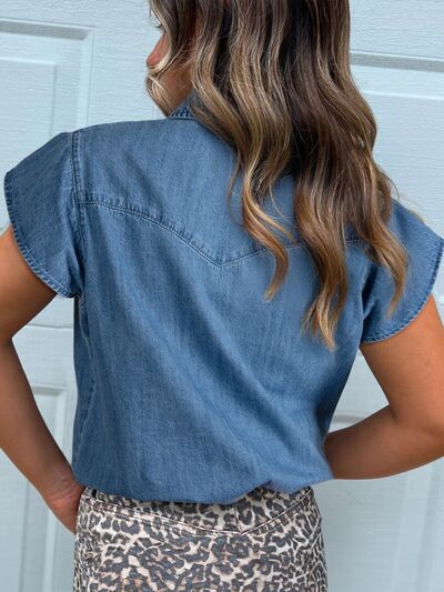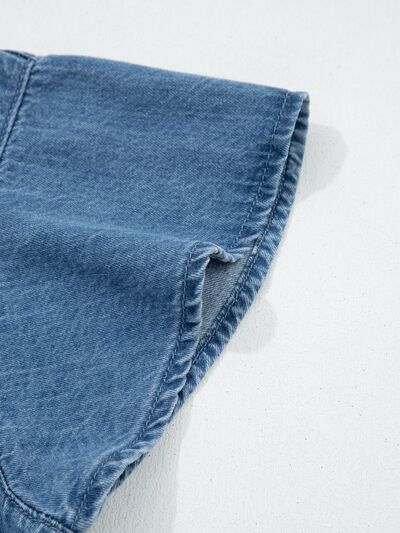 Ruffled Short Sleeve Denim Shirt