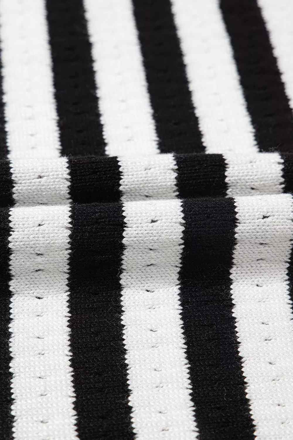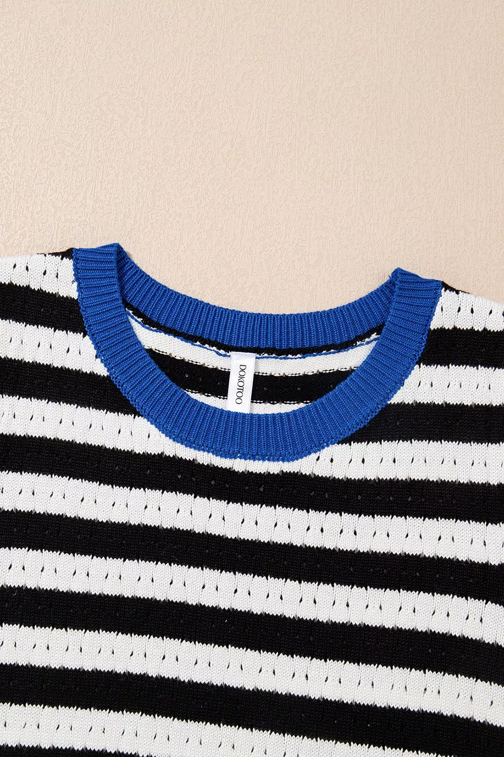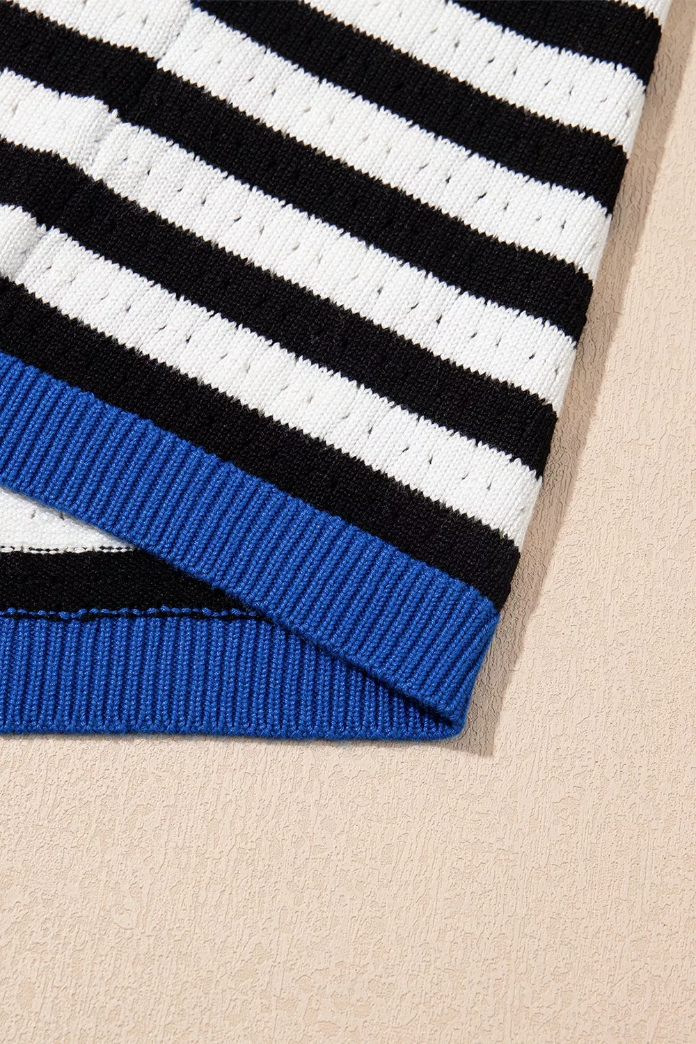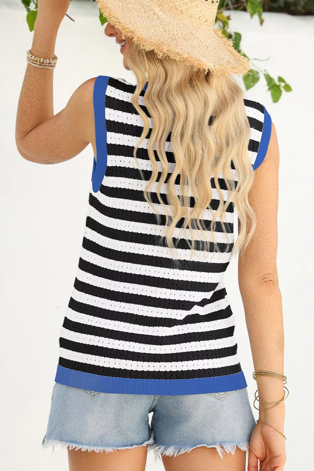 Stripe Pointelle Knit Contrast Trim Sleeveless Sweater Top