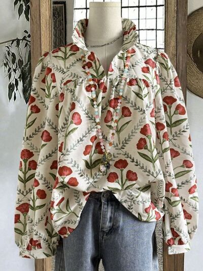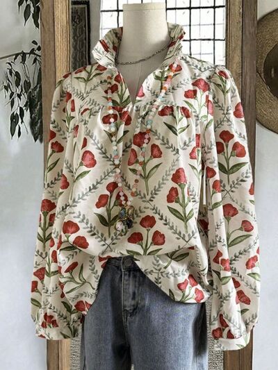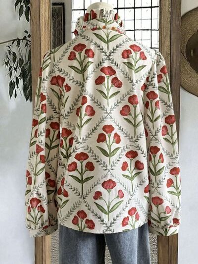 Floral Print High Collar Blouse