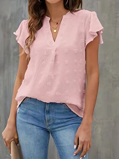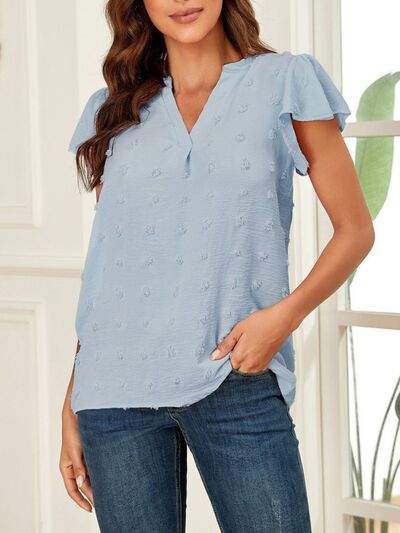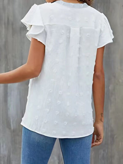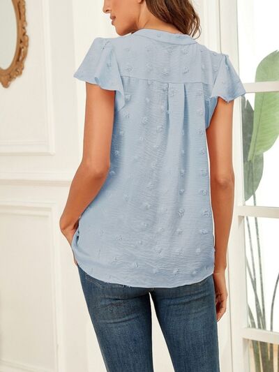Swiss Dot Ruffled Sleeve Blouse