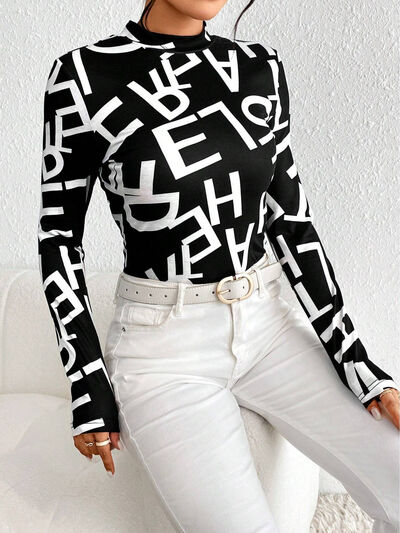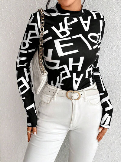 Animal Print Mock Neck Long Sleeve T-Shirt