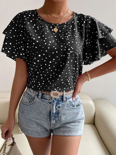 Animal Print Ruffle Sleeve Blouse
