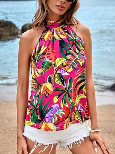 Tropical Print Halter Neck Cami
