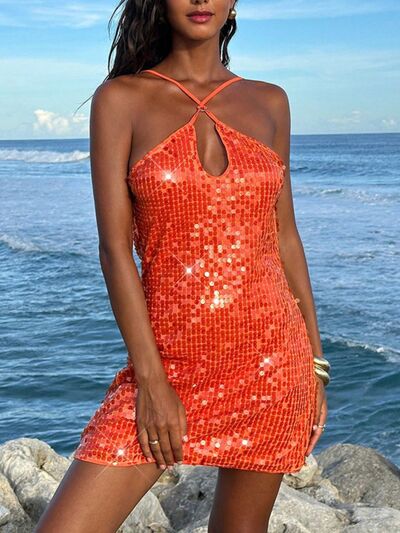 Sequin Halter Neck Mini Dress