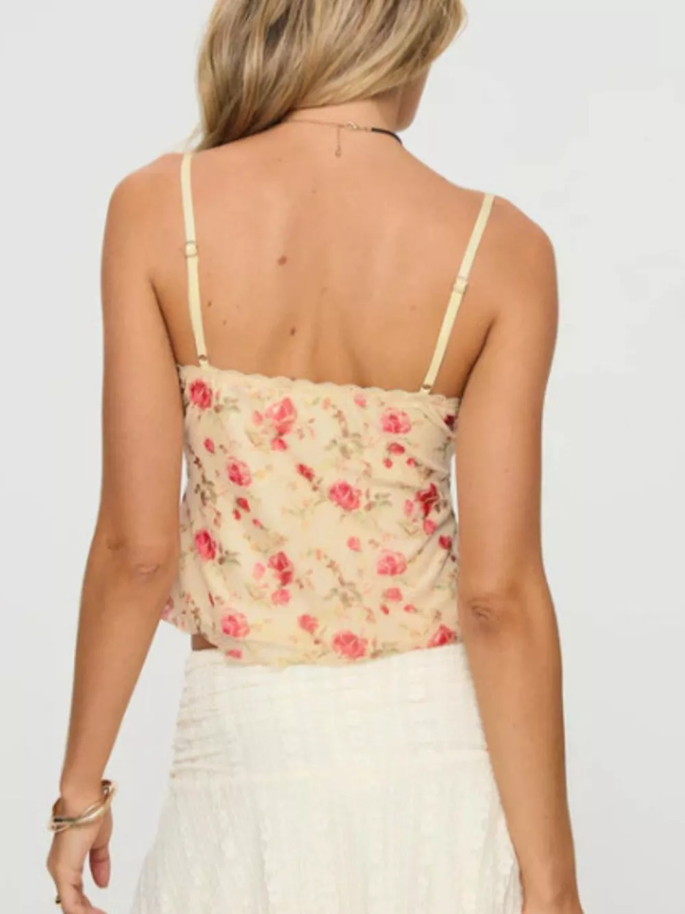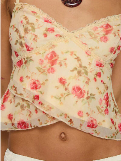 Floral Print Lace Trim Cami