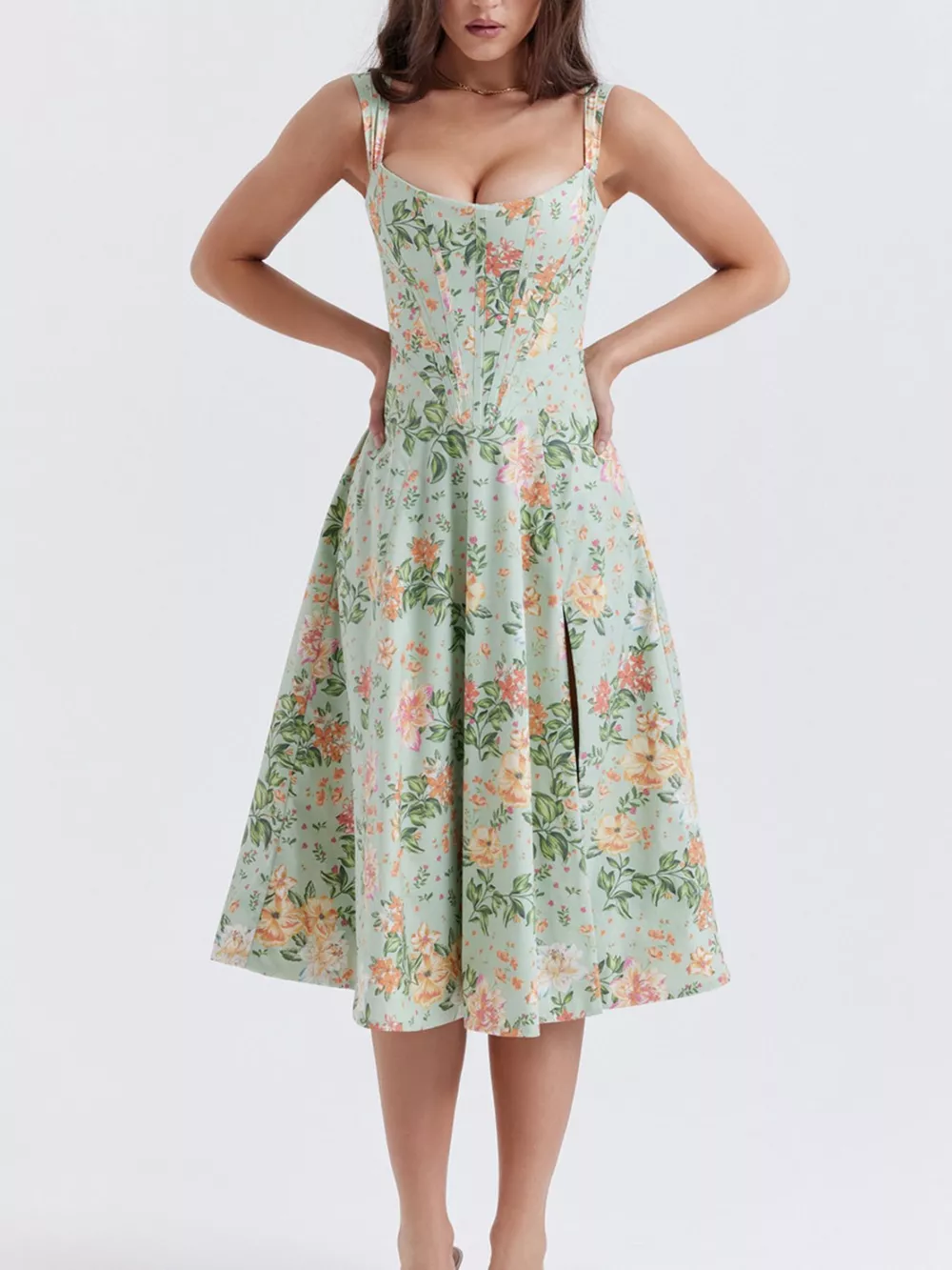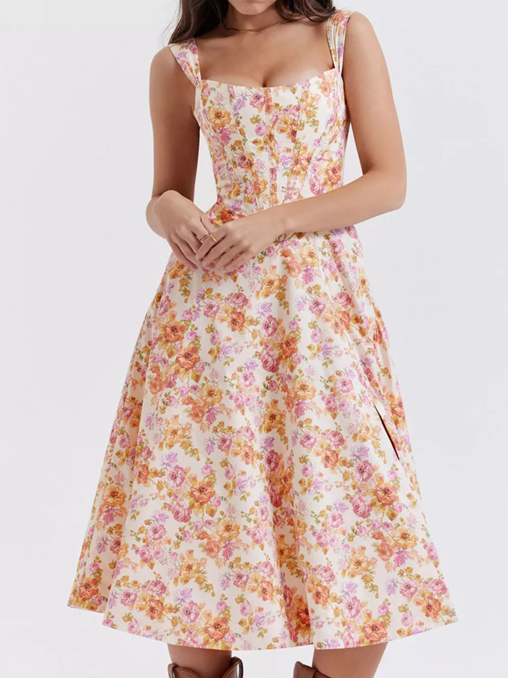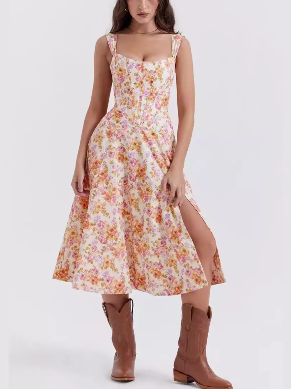 Floral Print Midi Dress with Slit