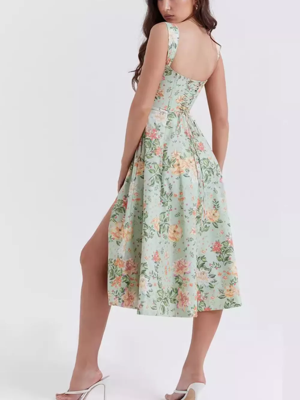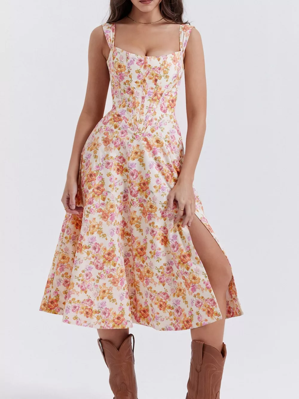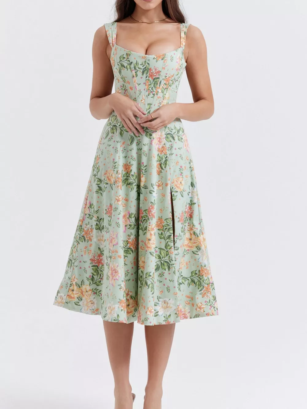 Floral Print Midi Dress with Slit