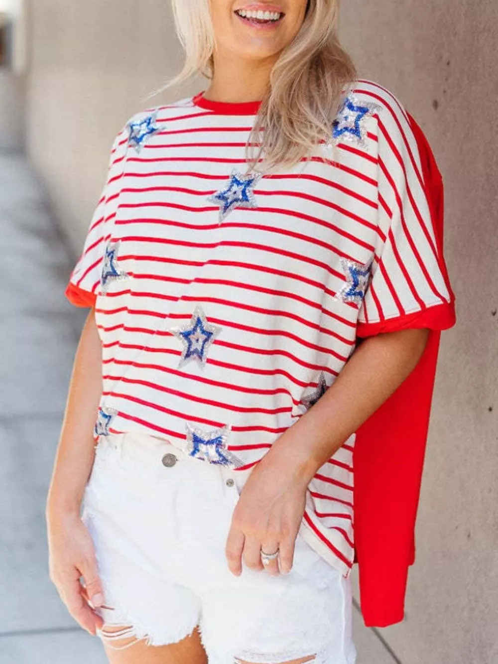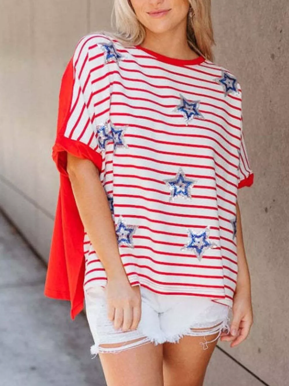 Striped Star Sequin Patriotic T-Shirt