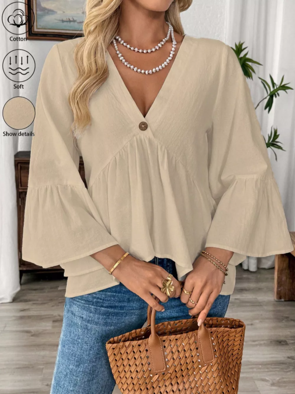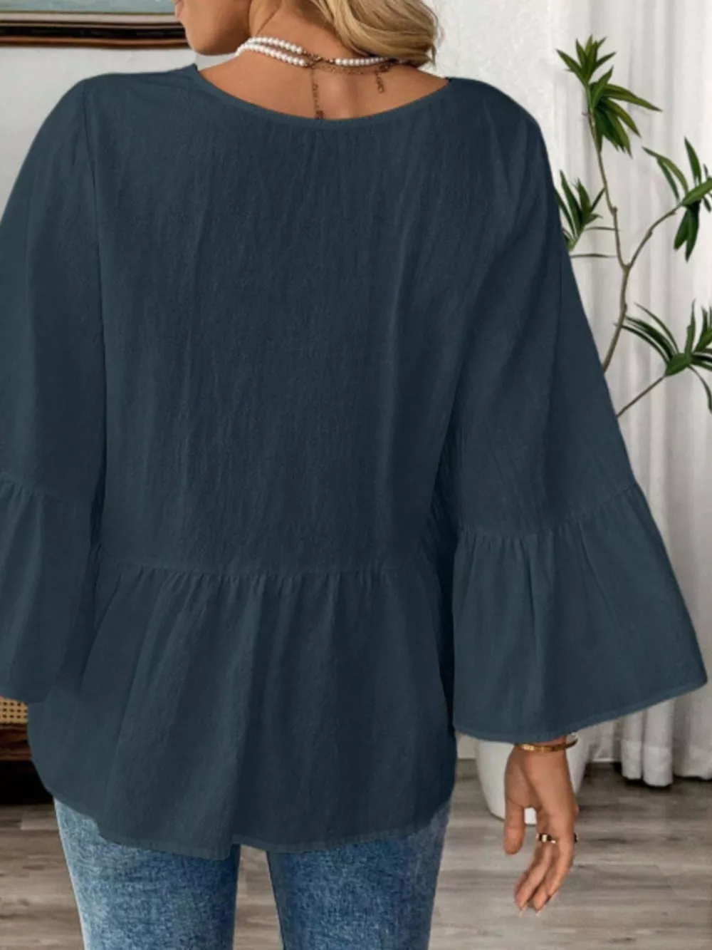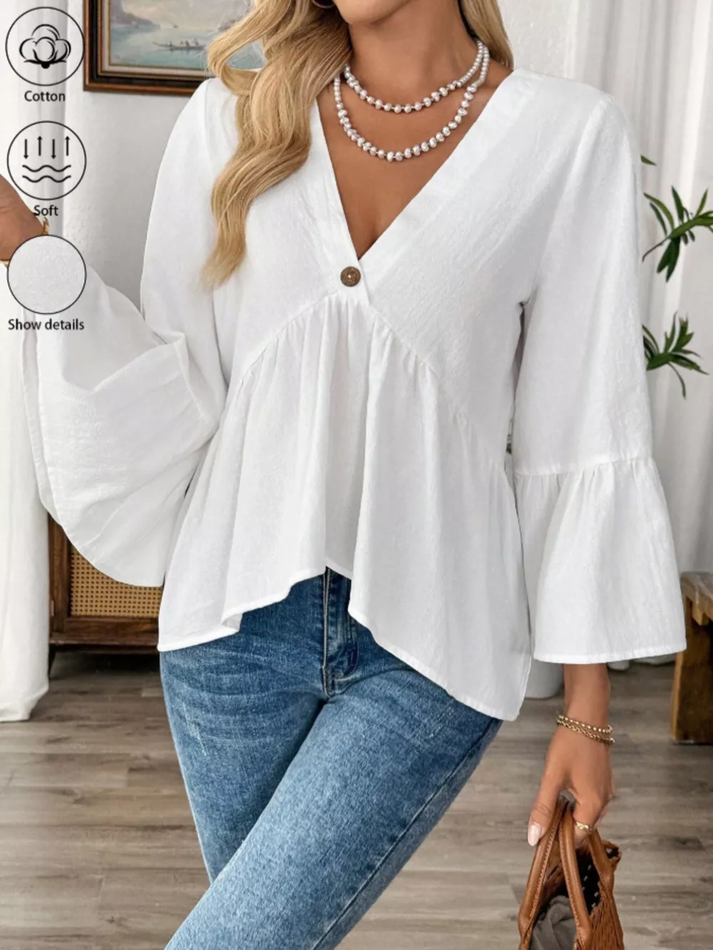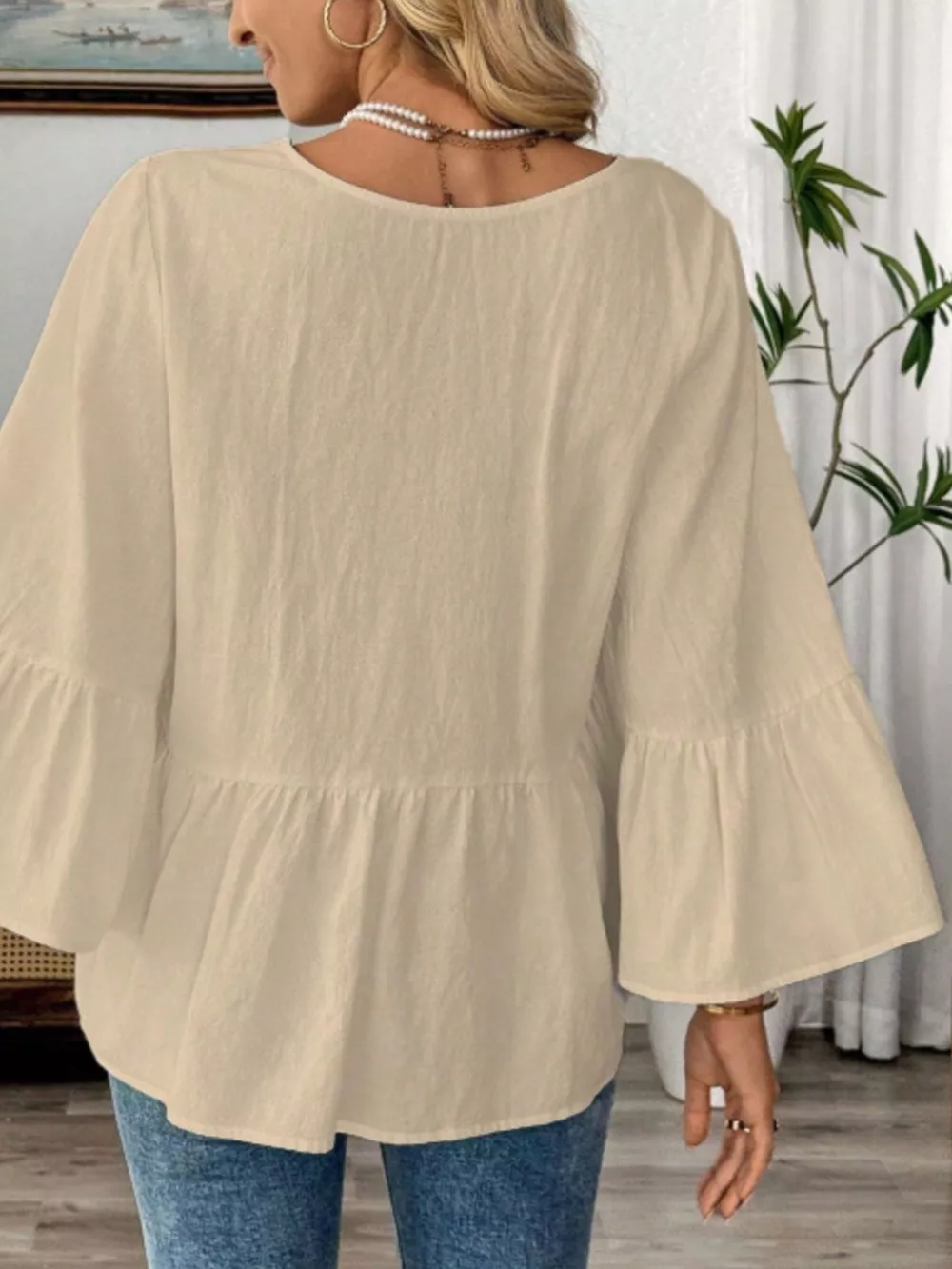V-Neck Bell Sleeve Blouse