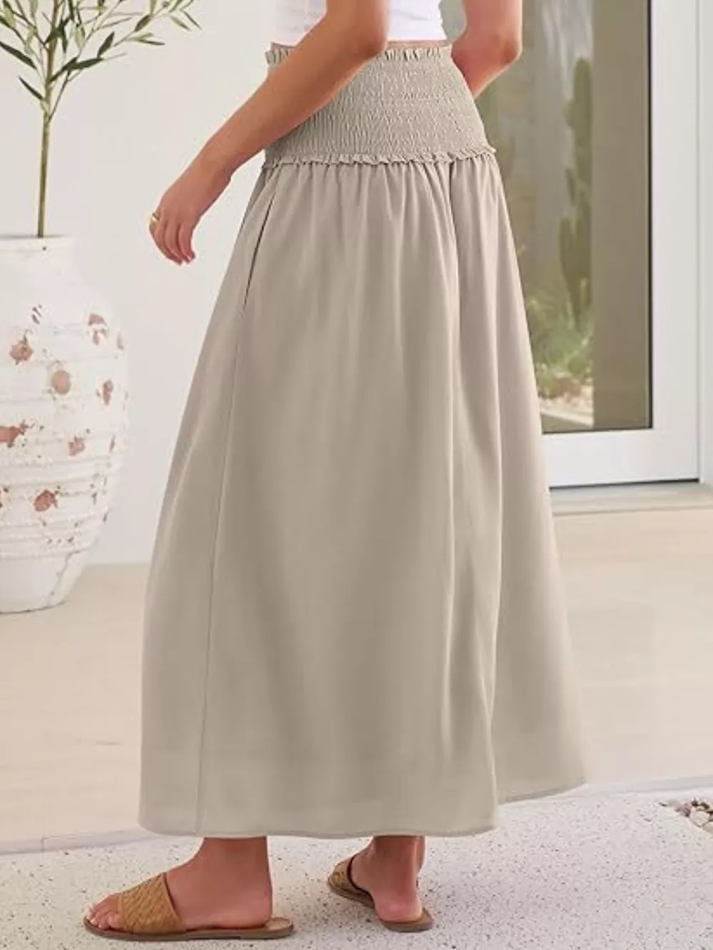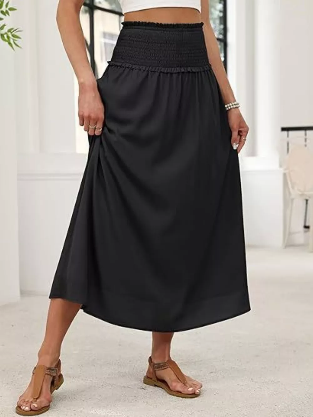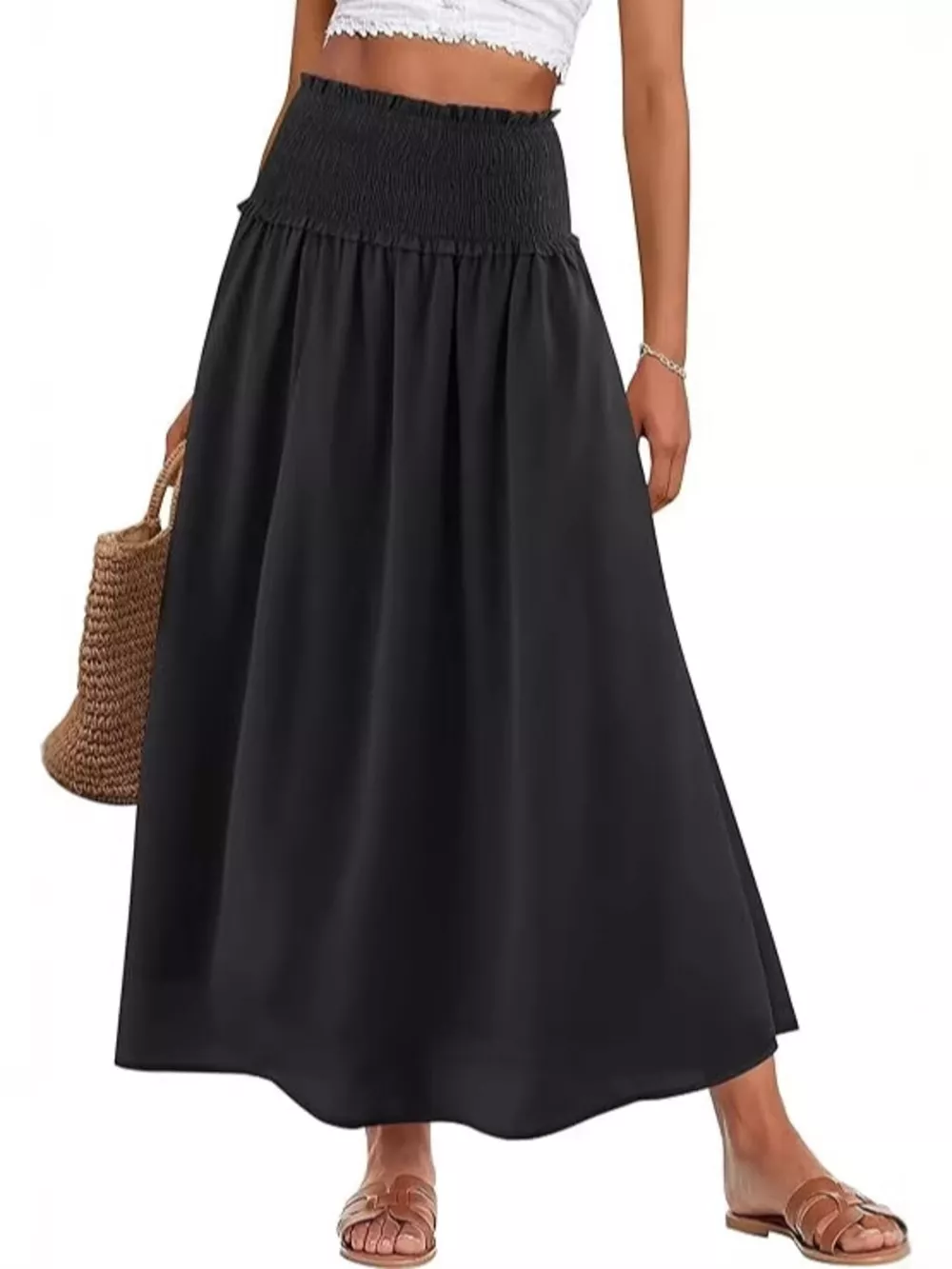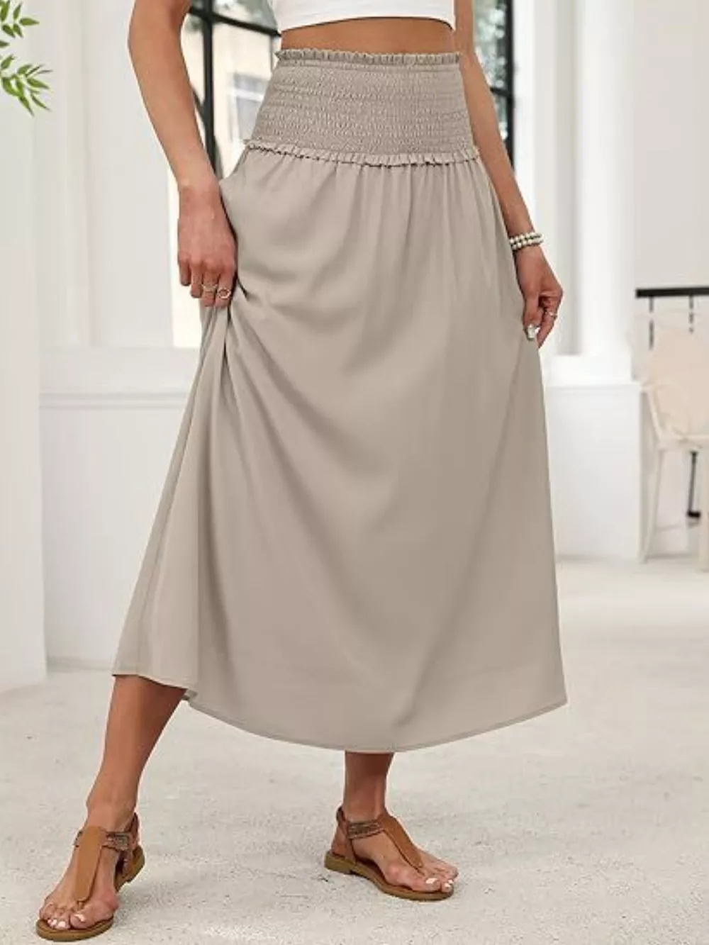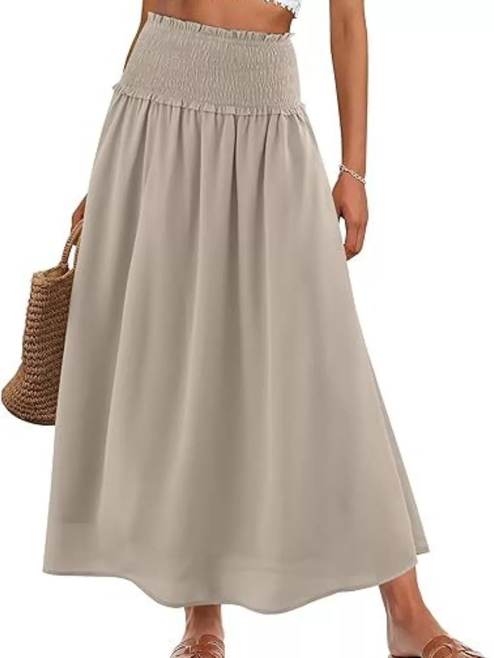 Smocked Waist Flowy Midi Skirt