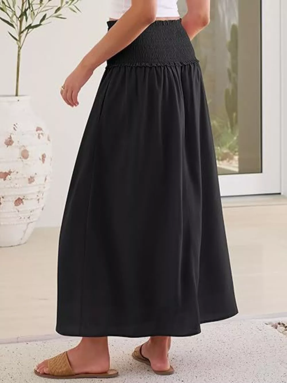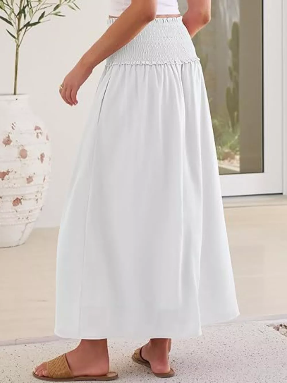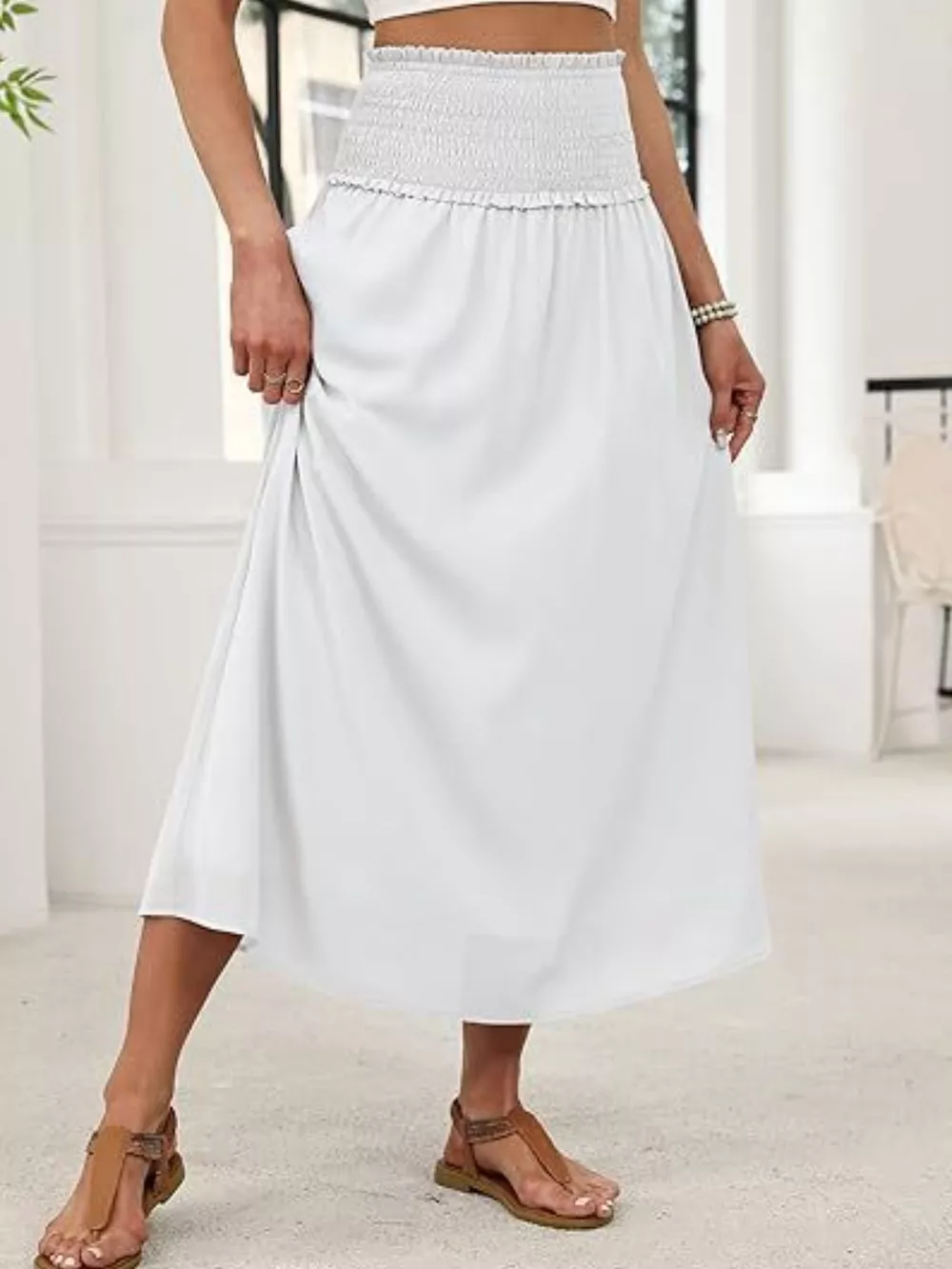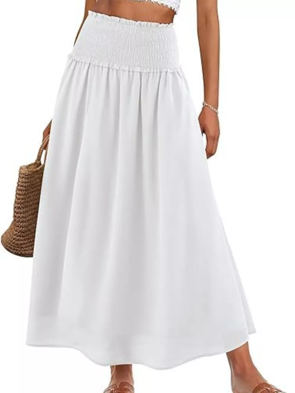 Smocked Waist Flowy Midi Skirt