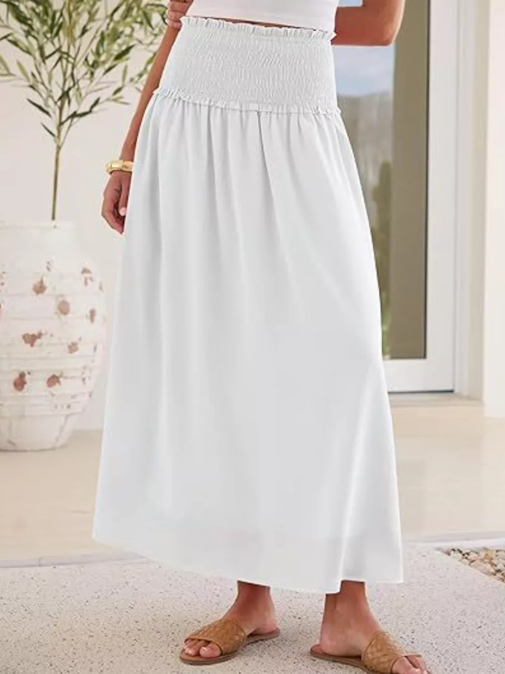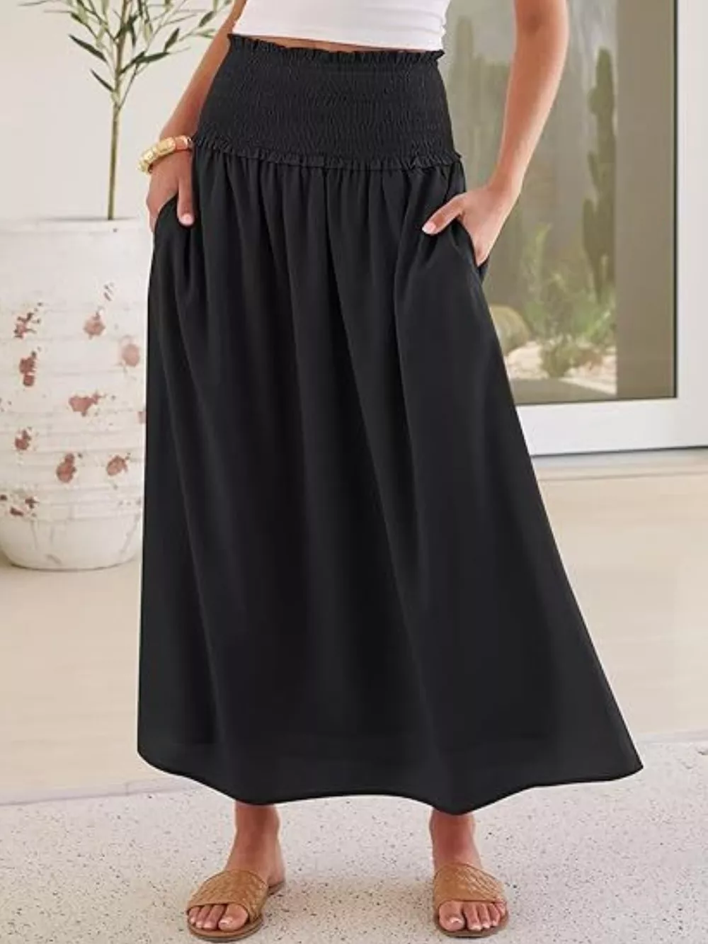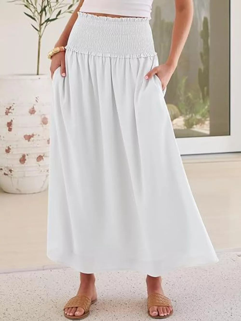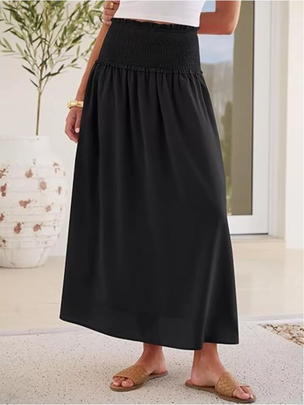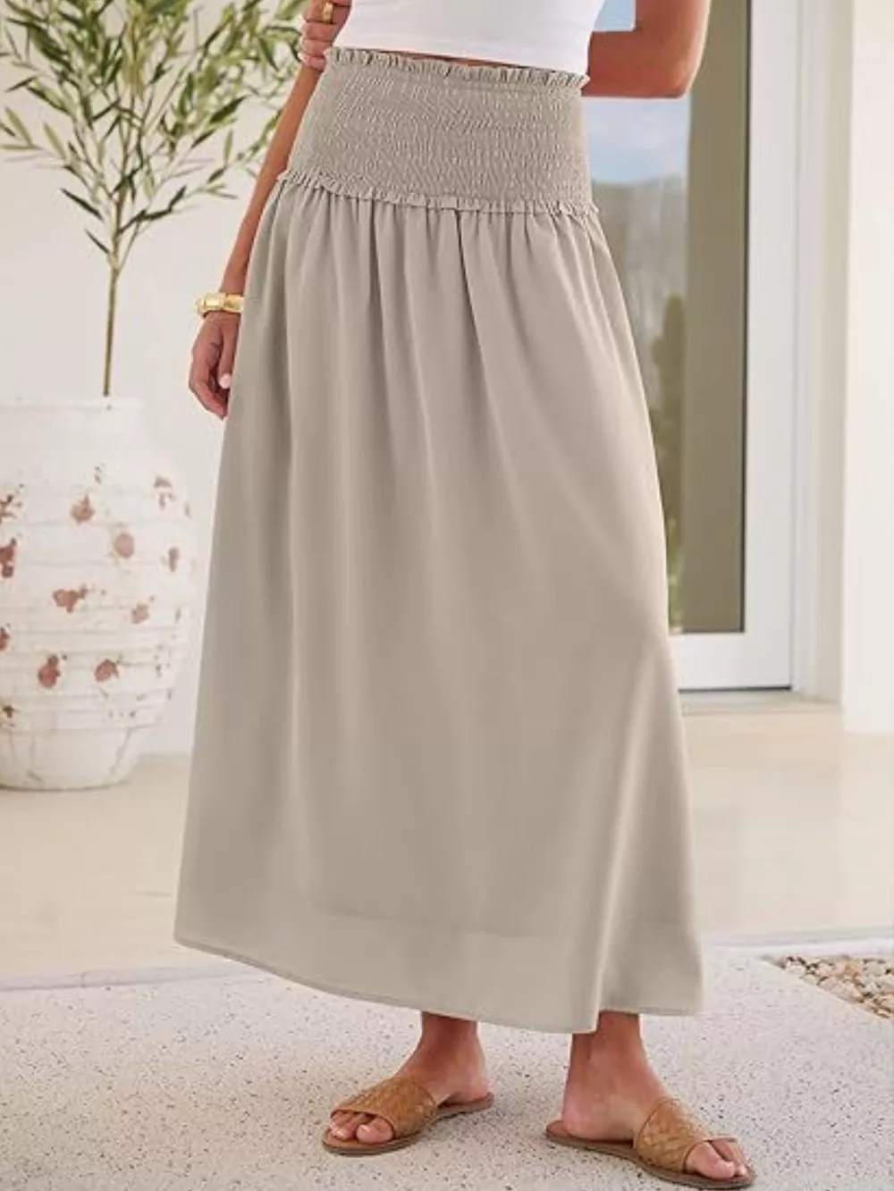 Smocked Waist Flowy Midi Skirt