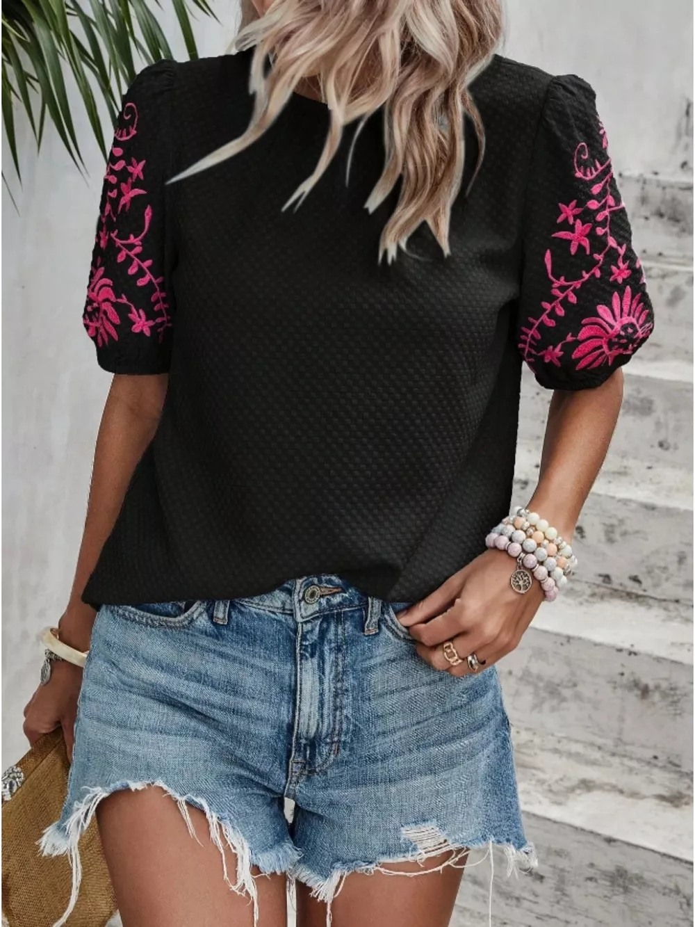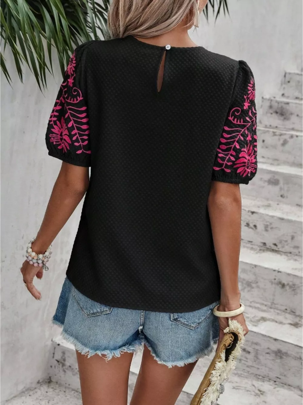 Embroidered Puff Sleeve Blouse