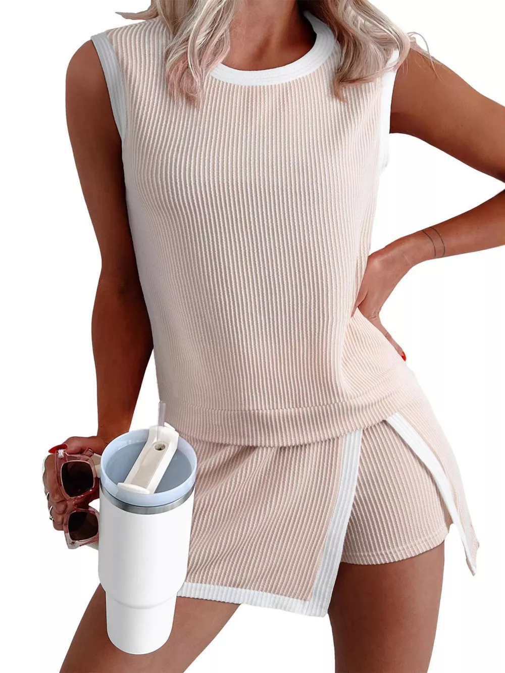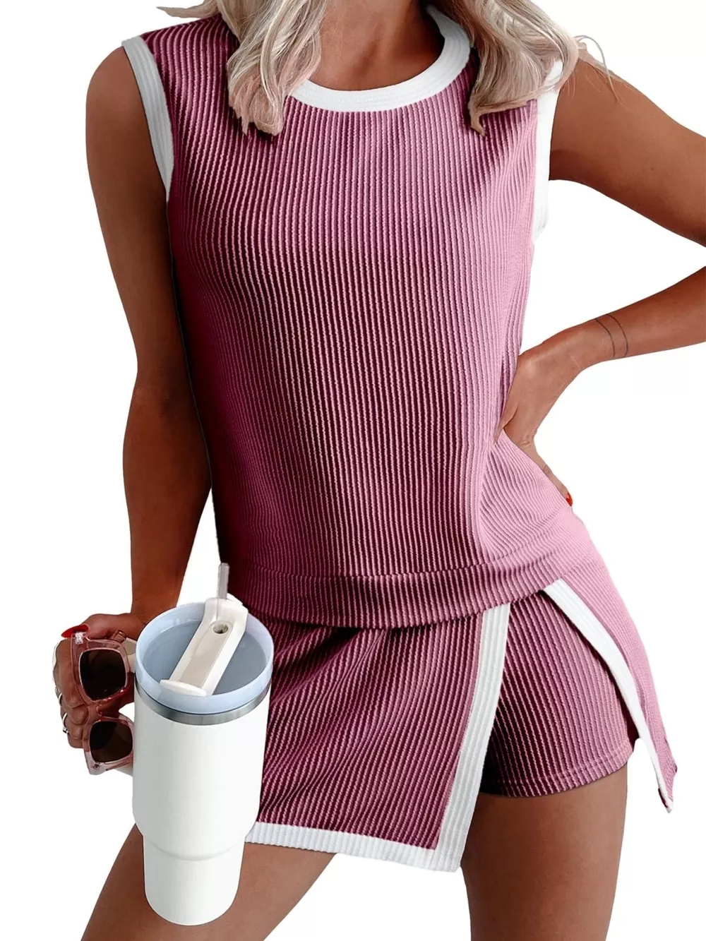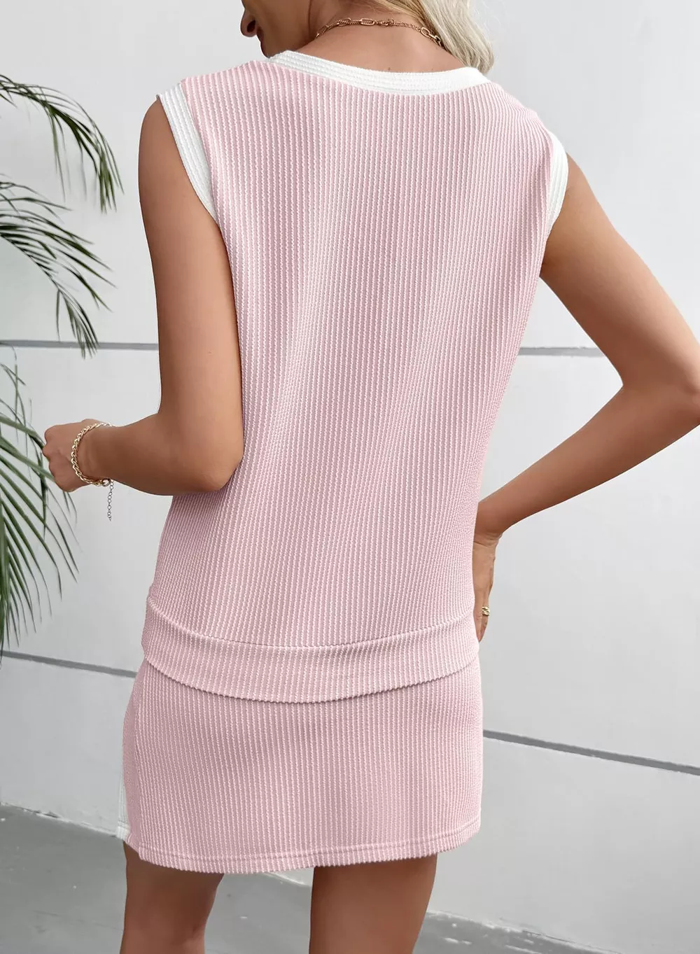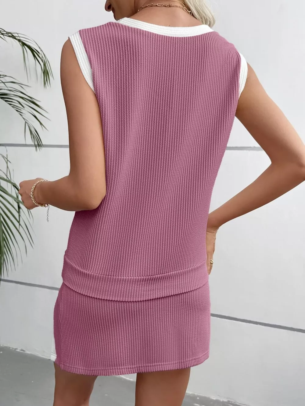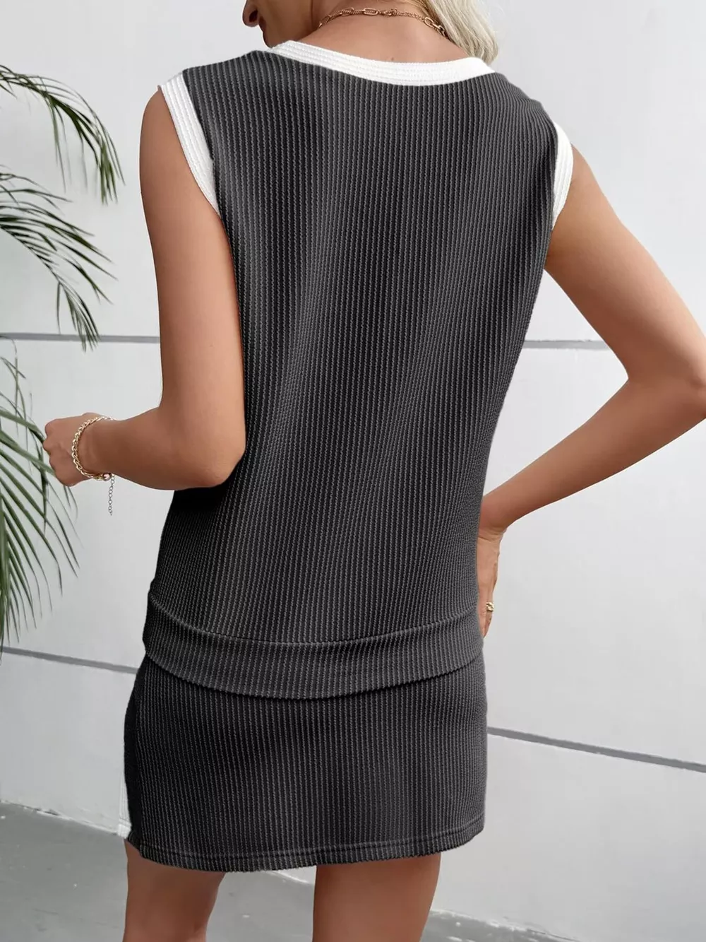 Ribbed Knit Sleeveless Top and Skort Set