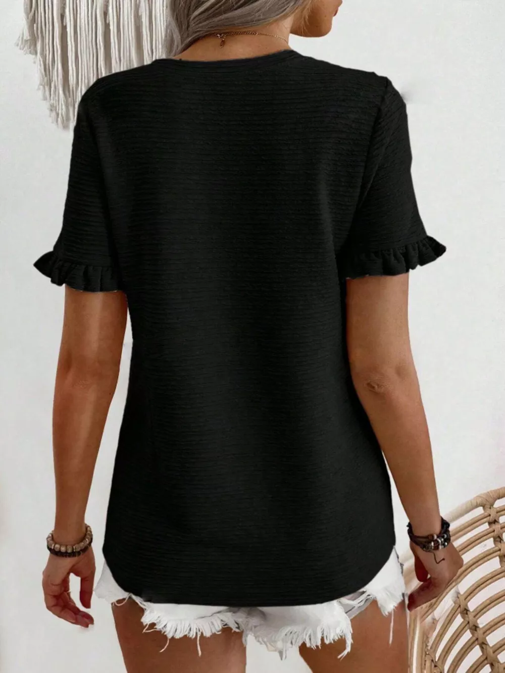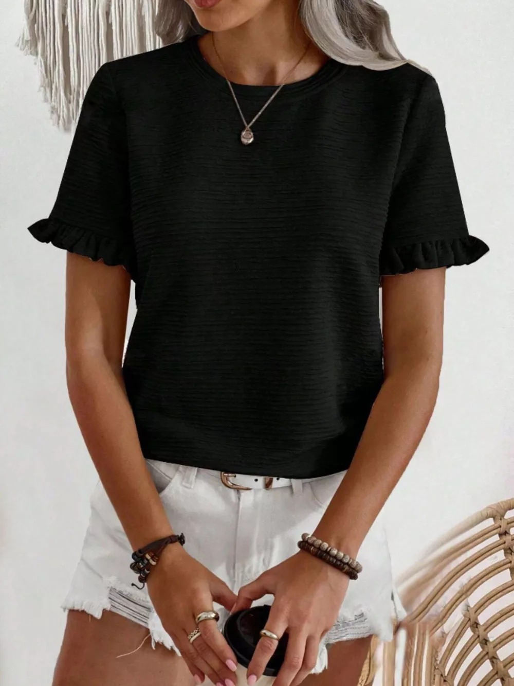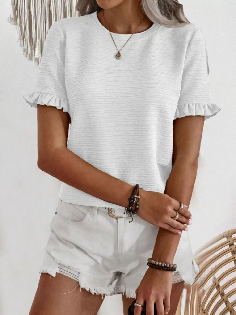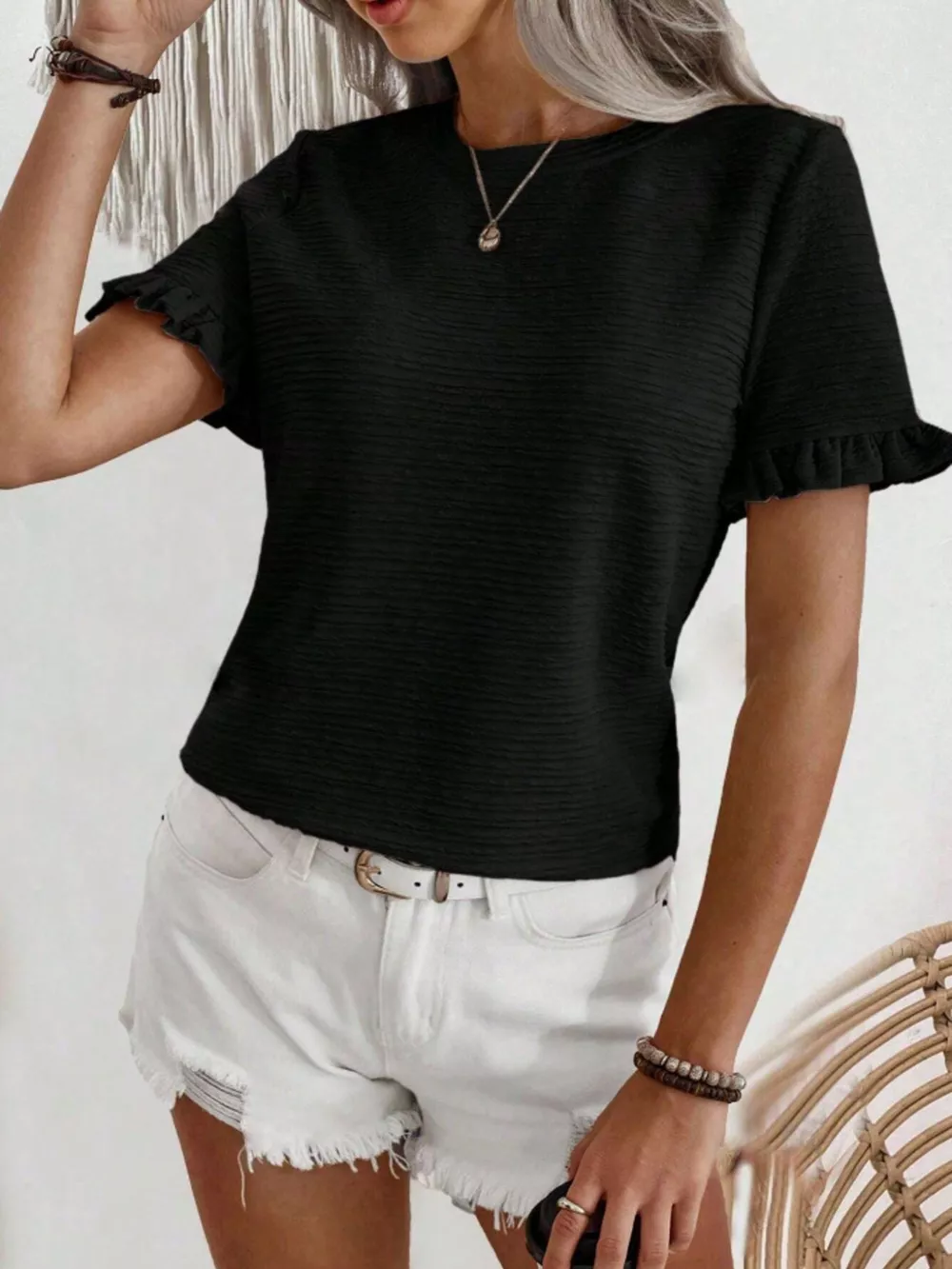 Textured Ruffle Sleeve Round Neck T-Shirt