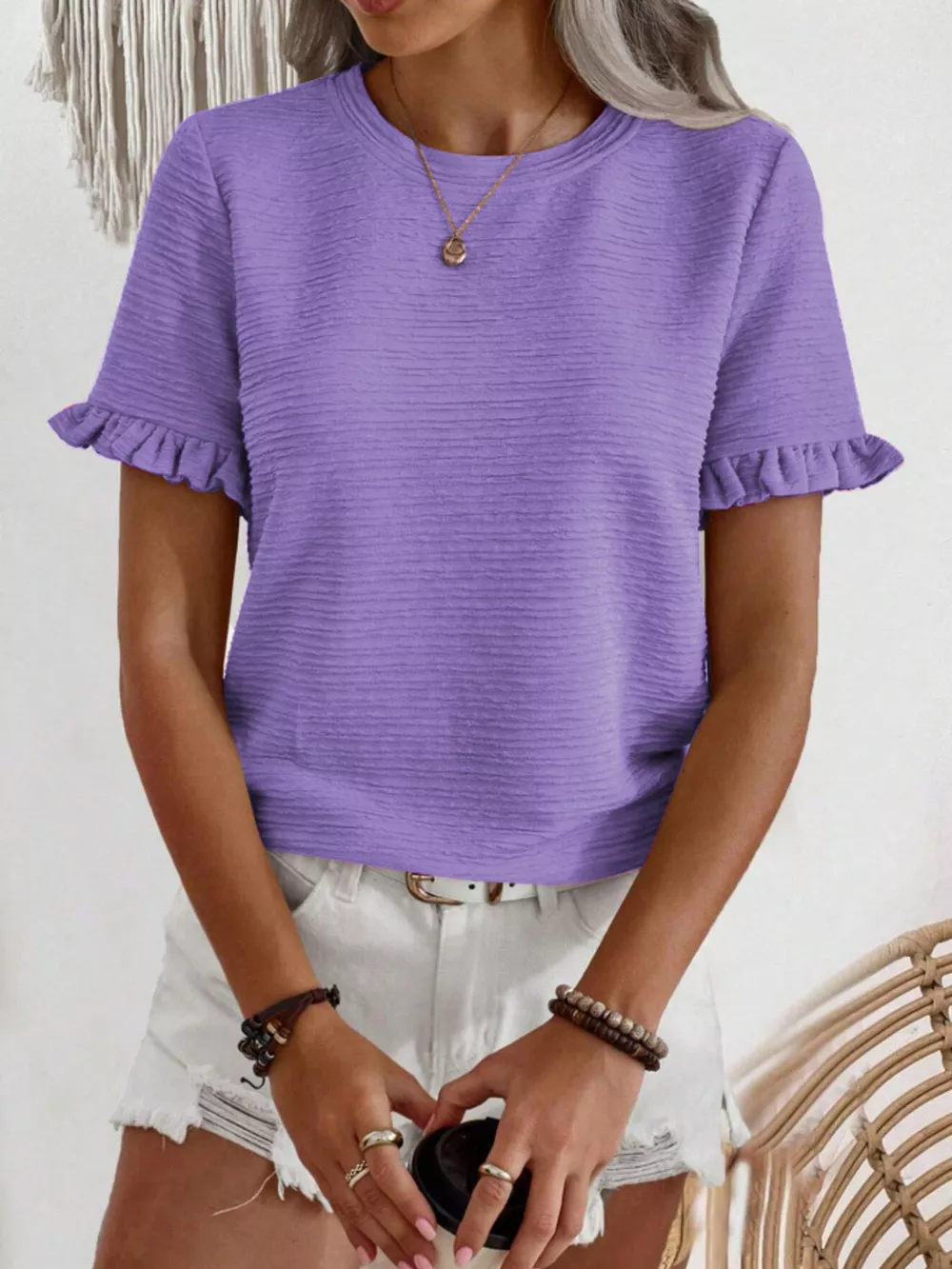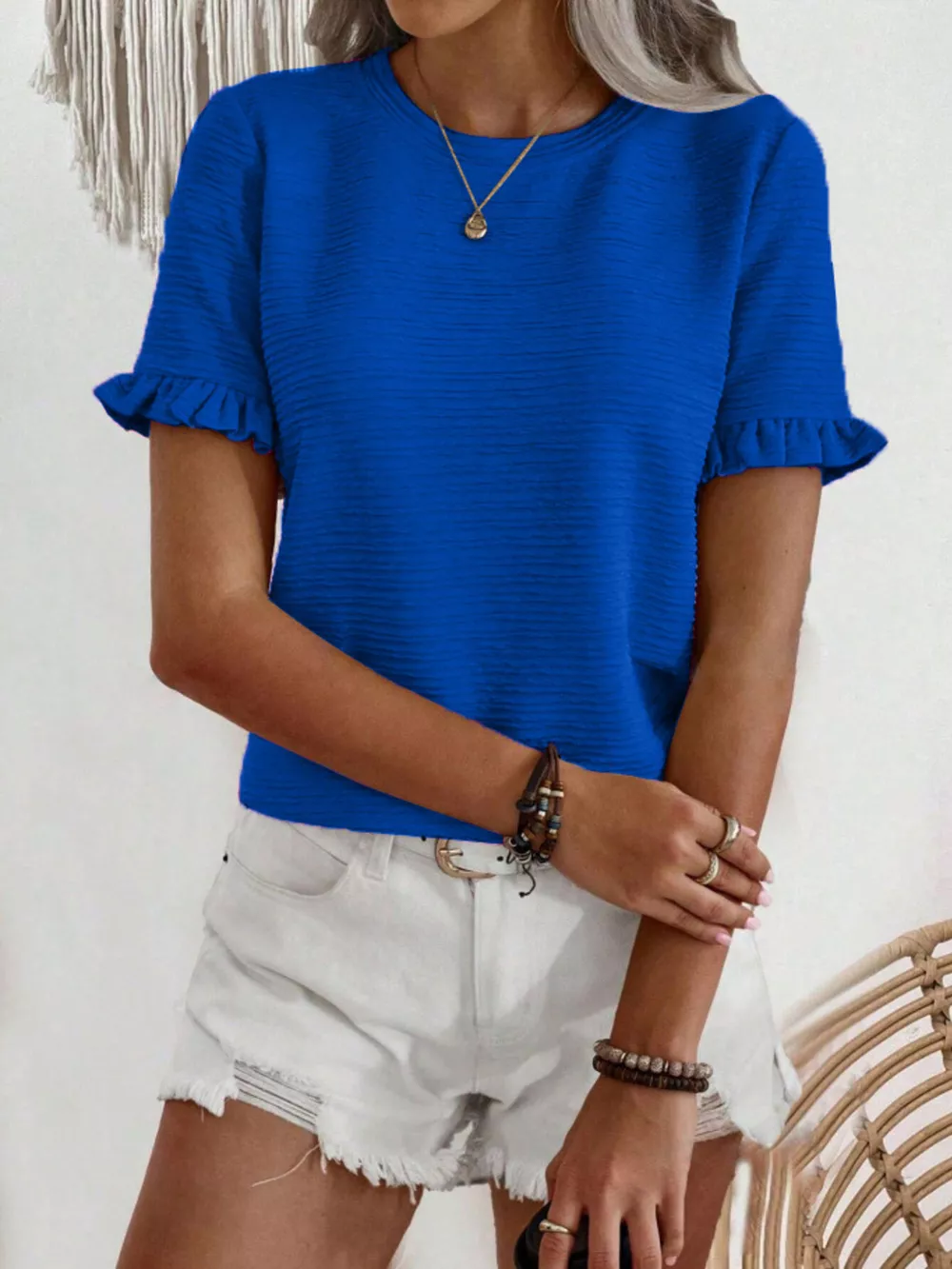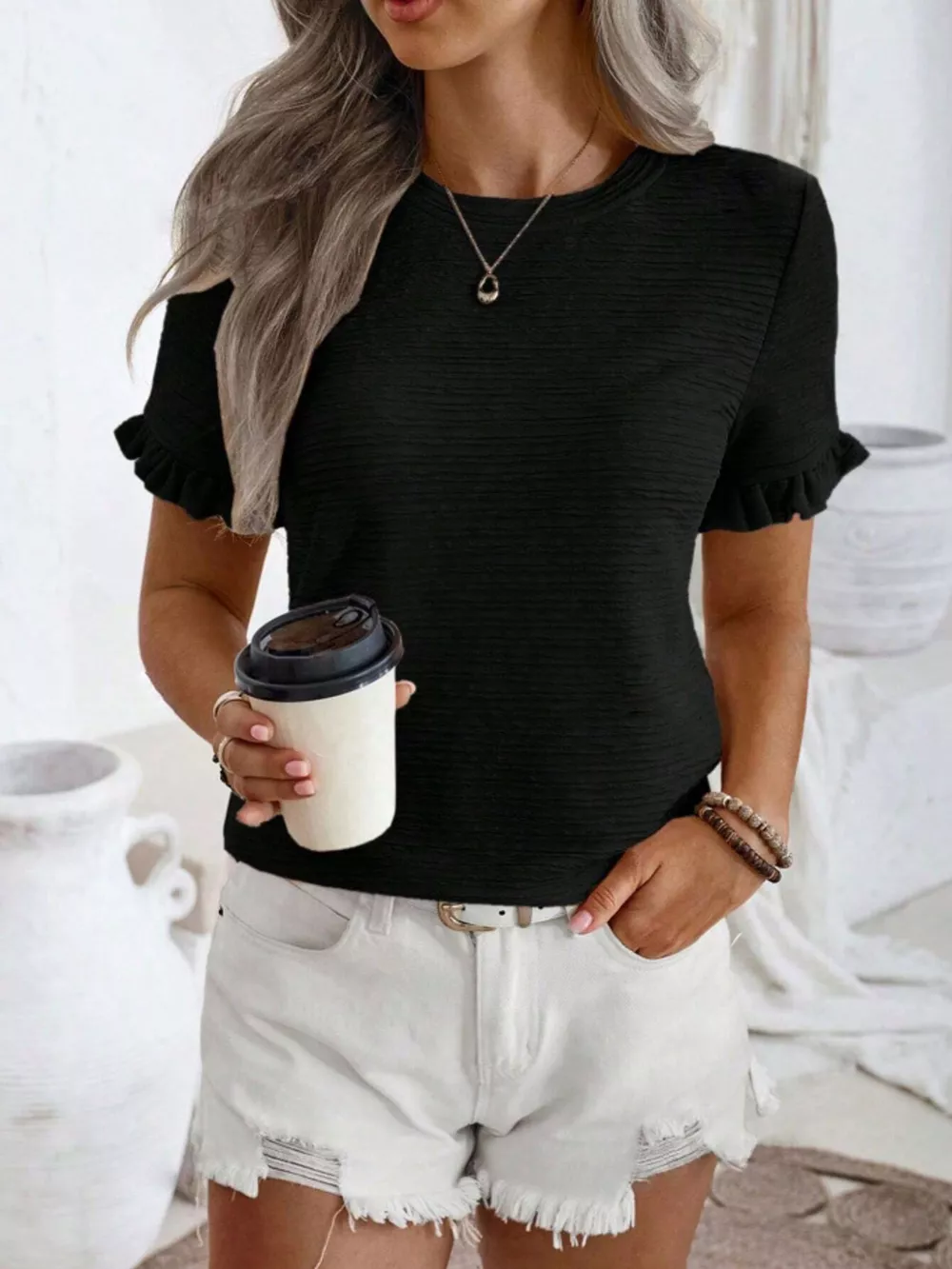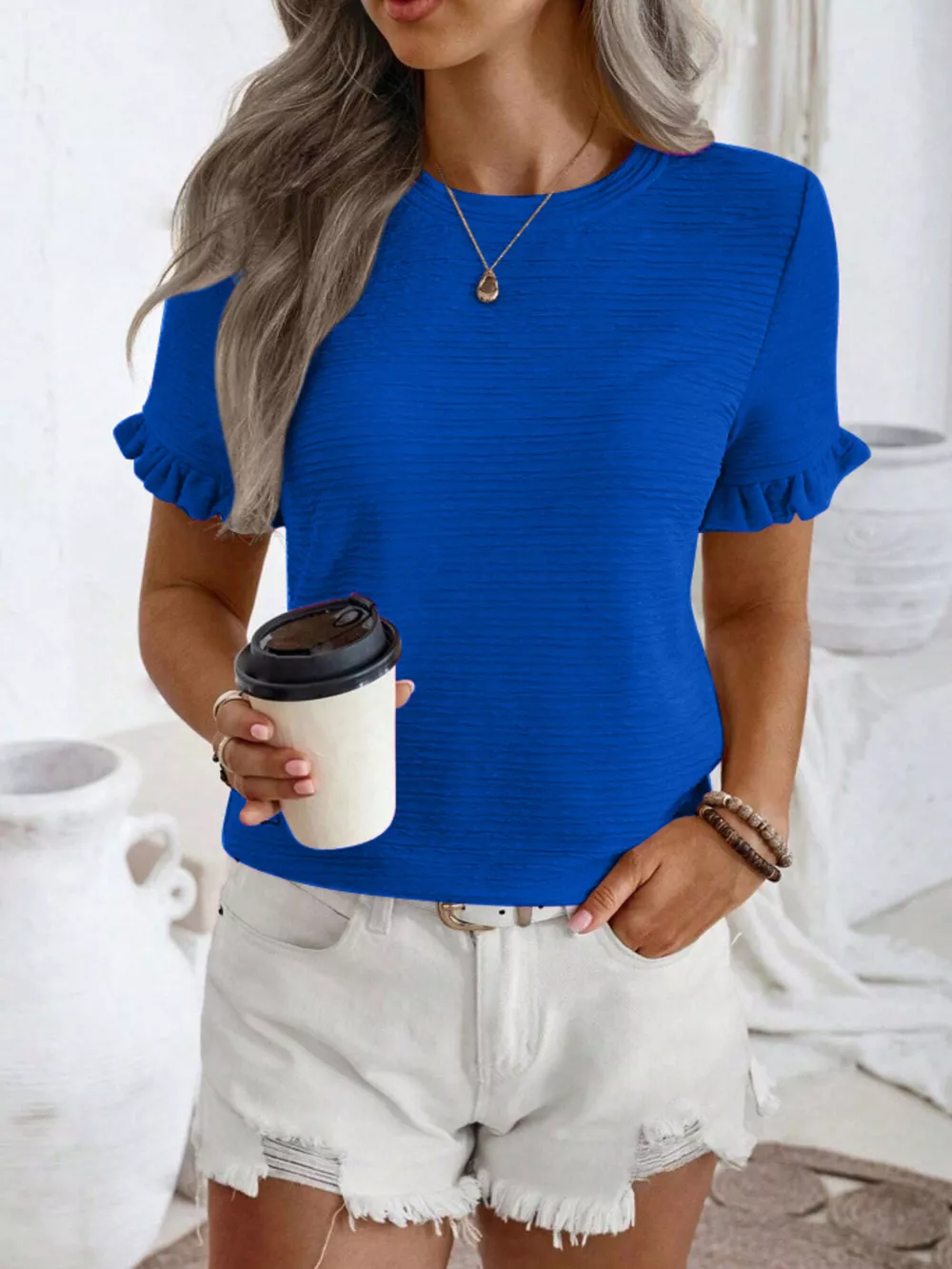 Textured Ruffle Sleeve Round Neck T-Shirt