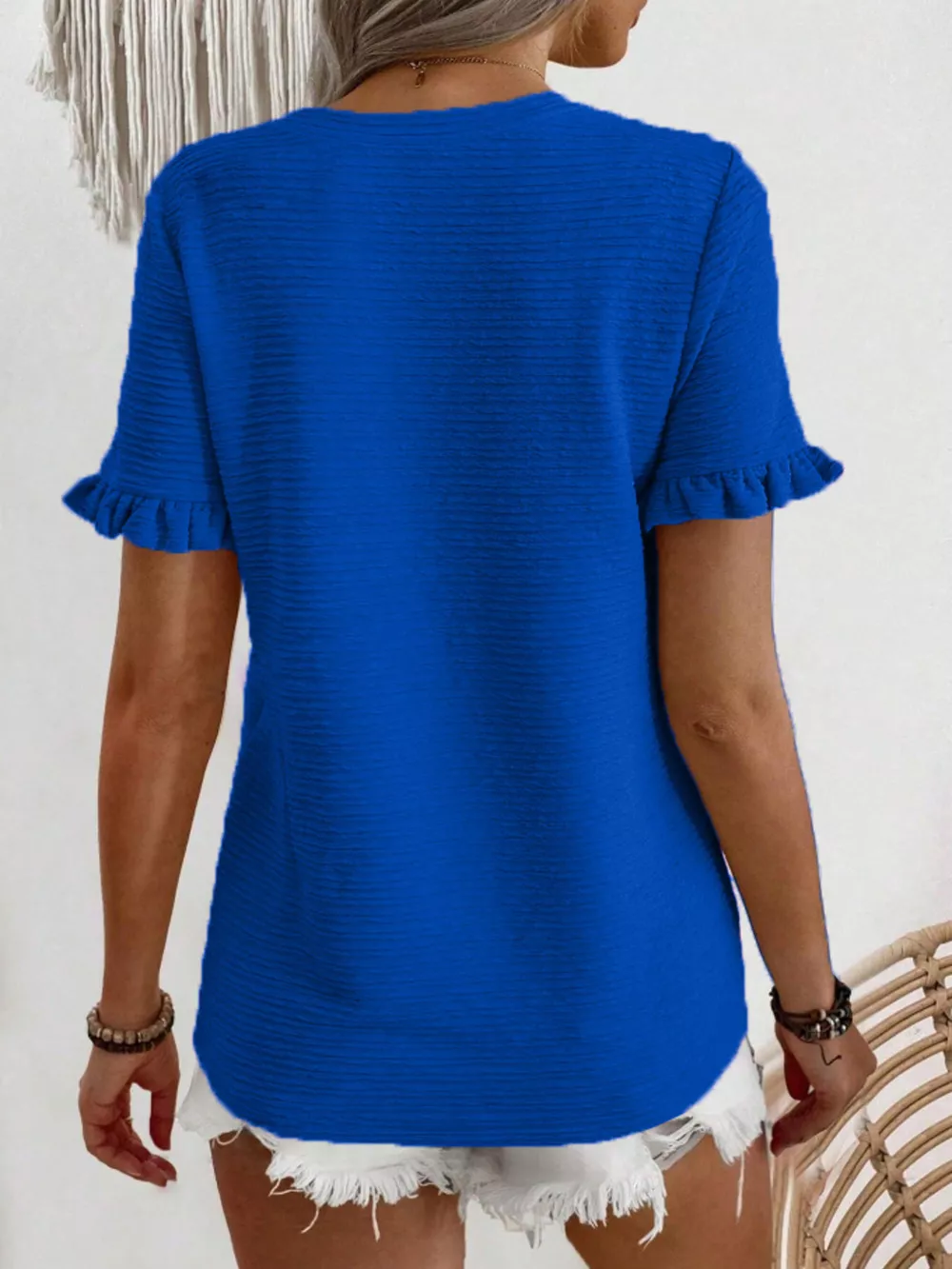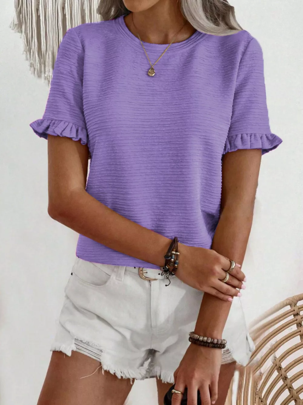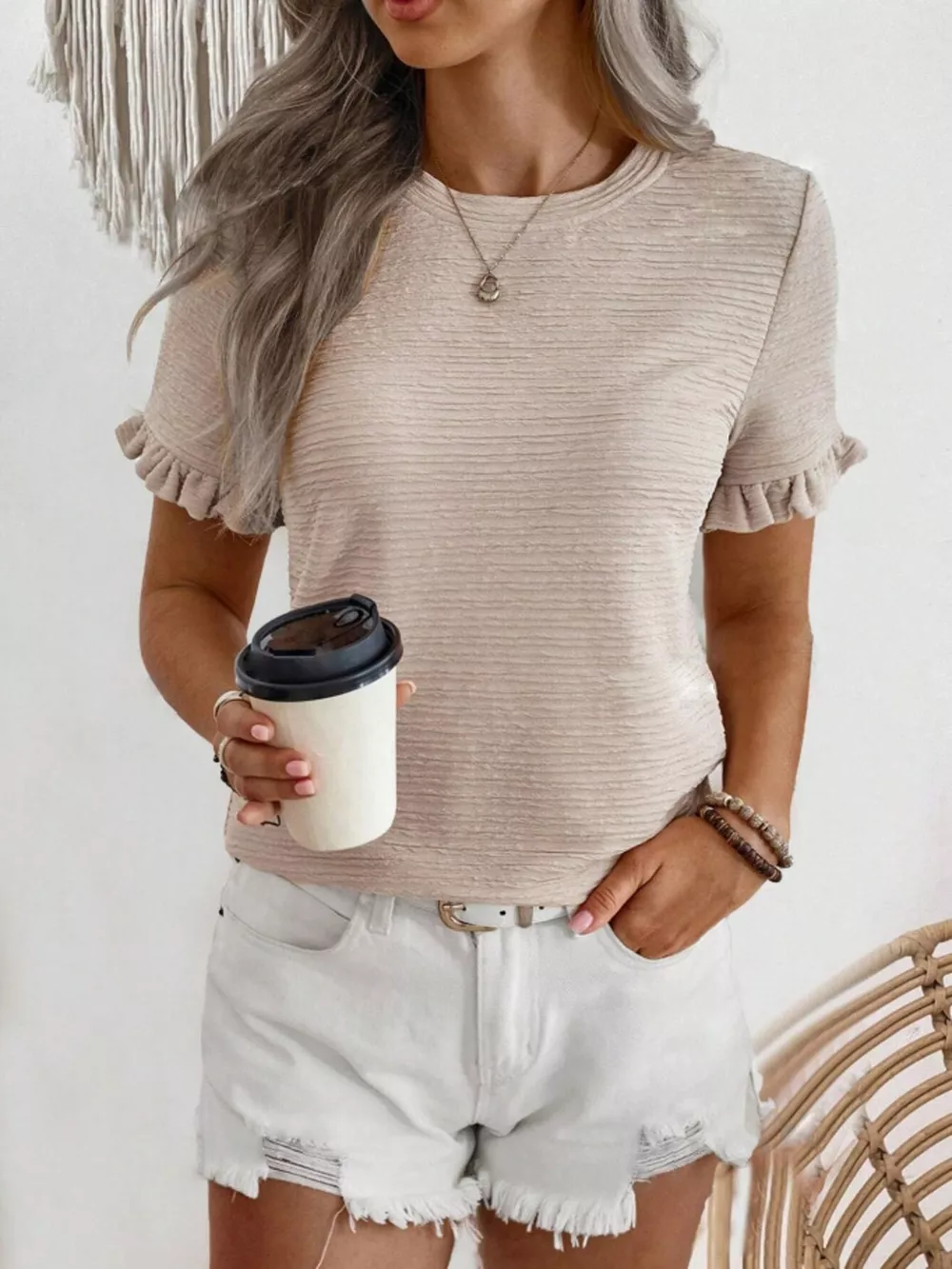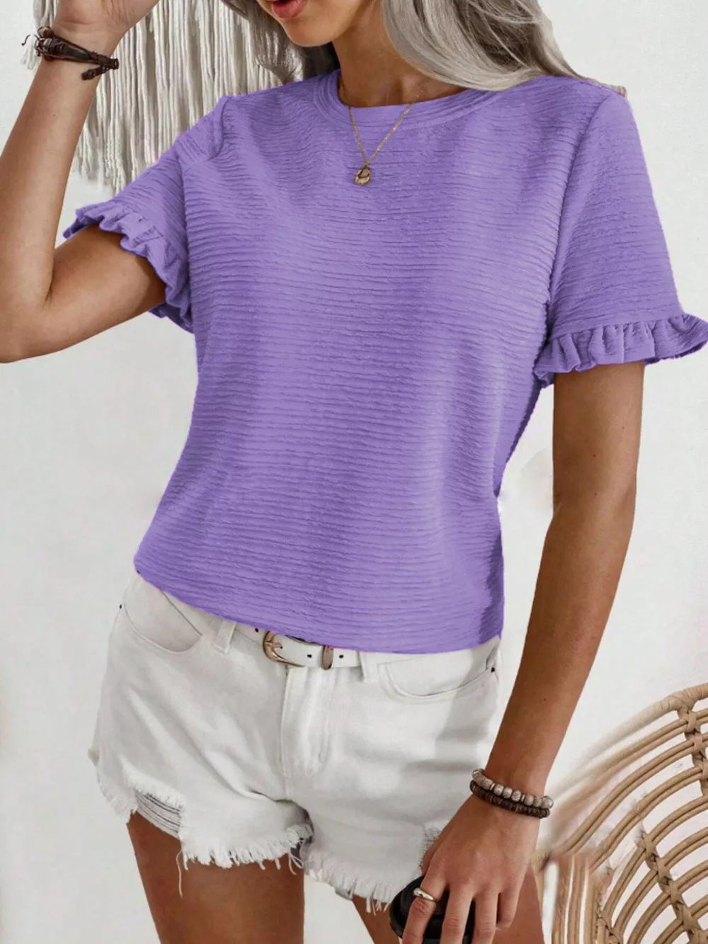 Textured Ruffle Sleeve Round Neck T-Shirt