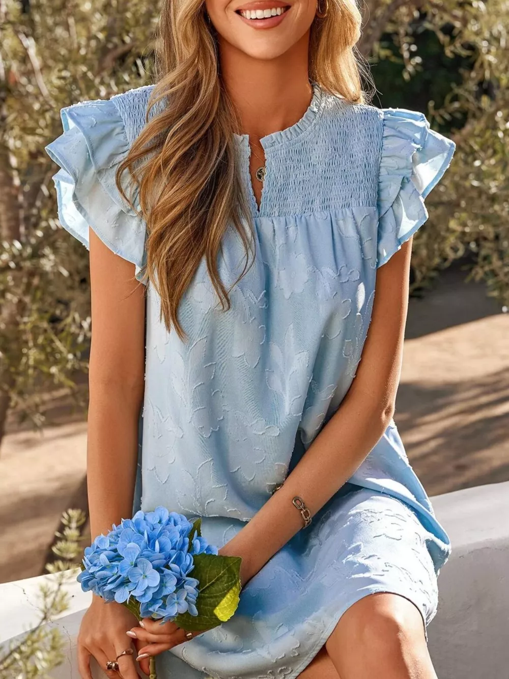 - Features:Ruffled,Smocked
