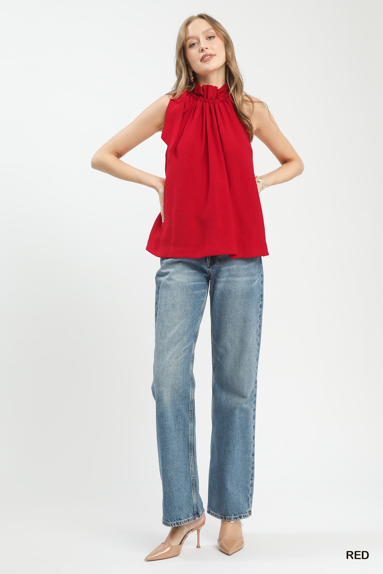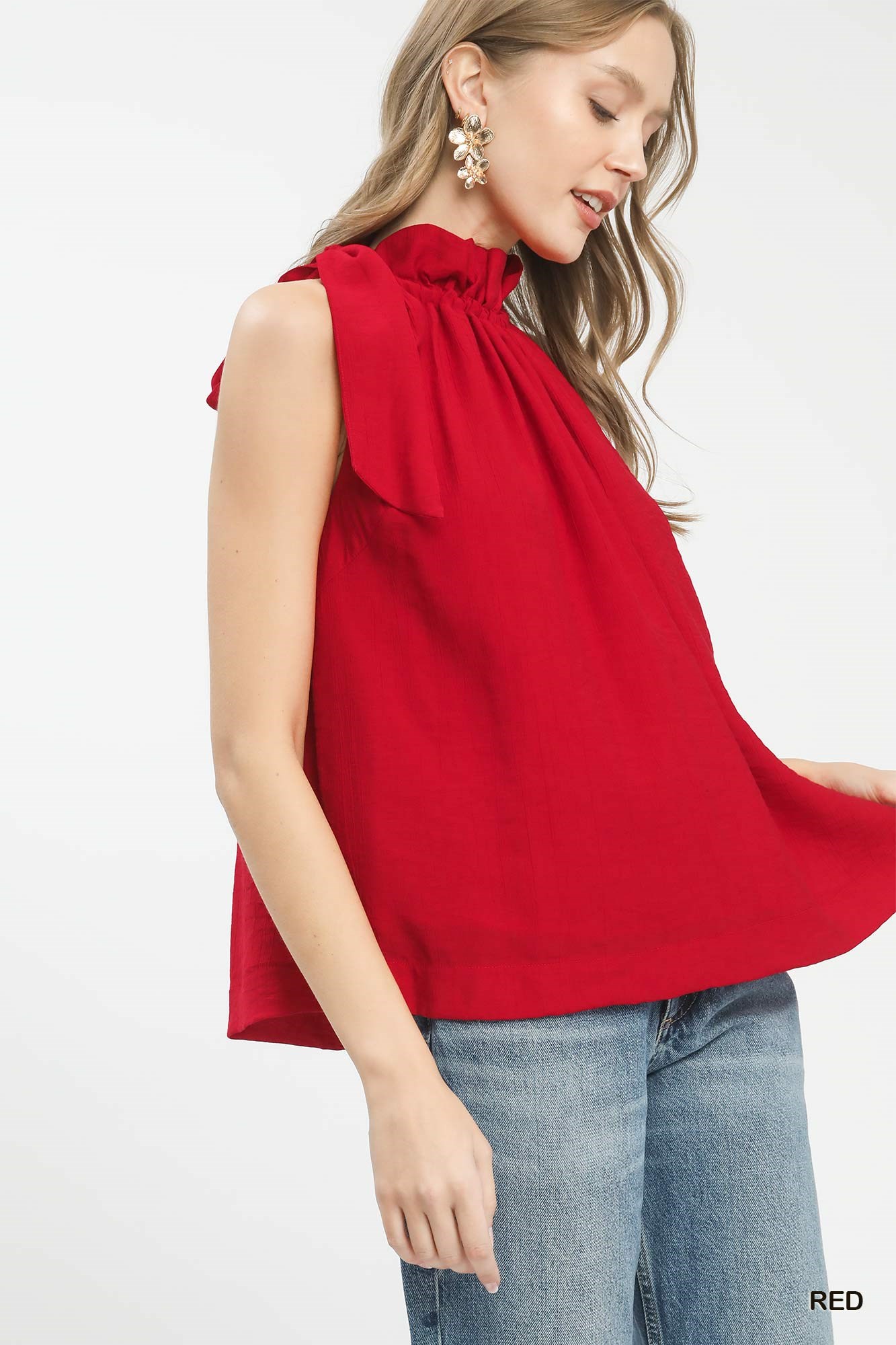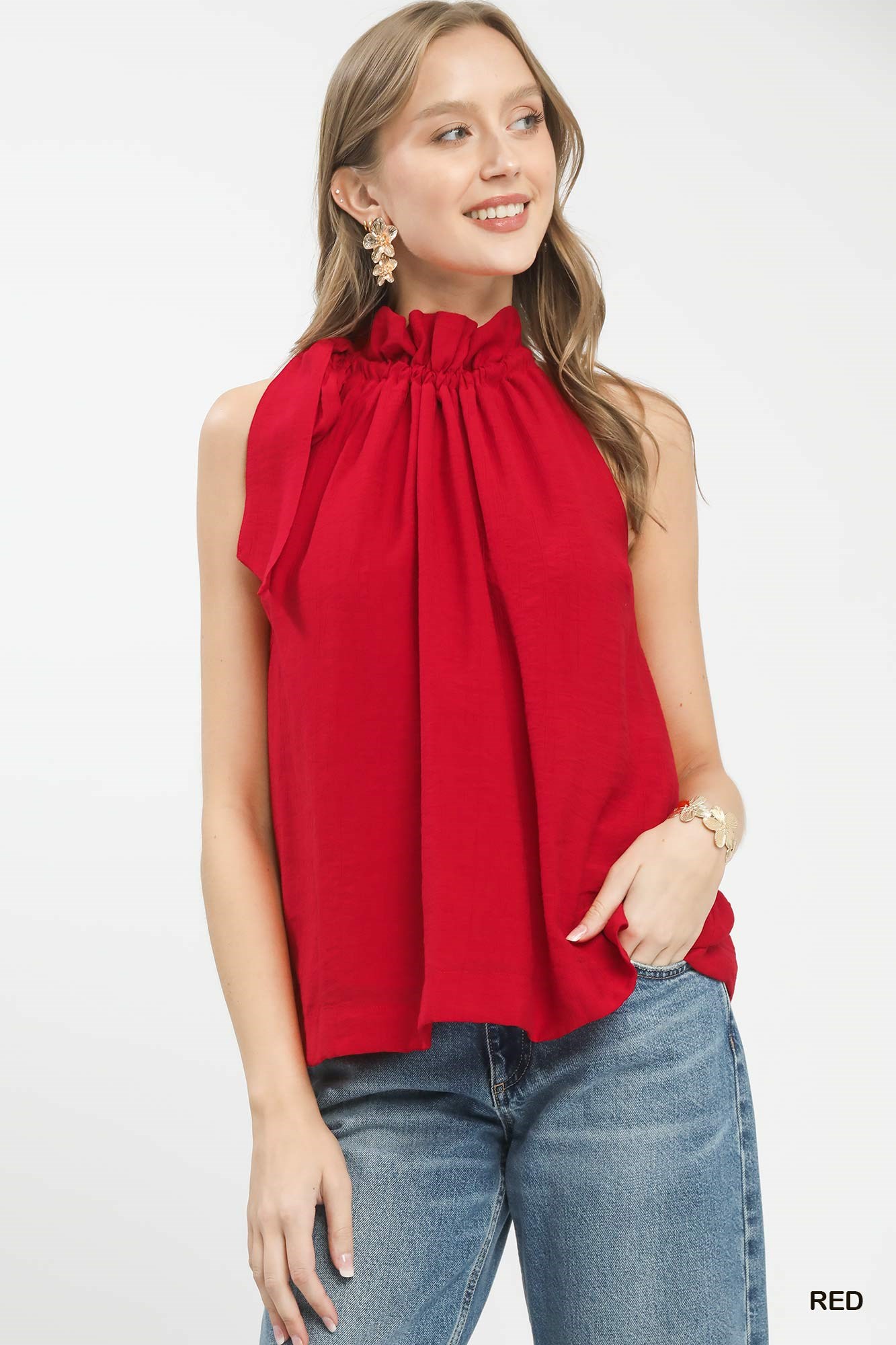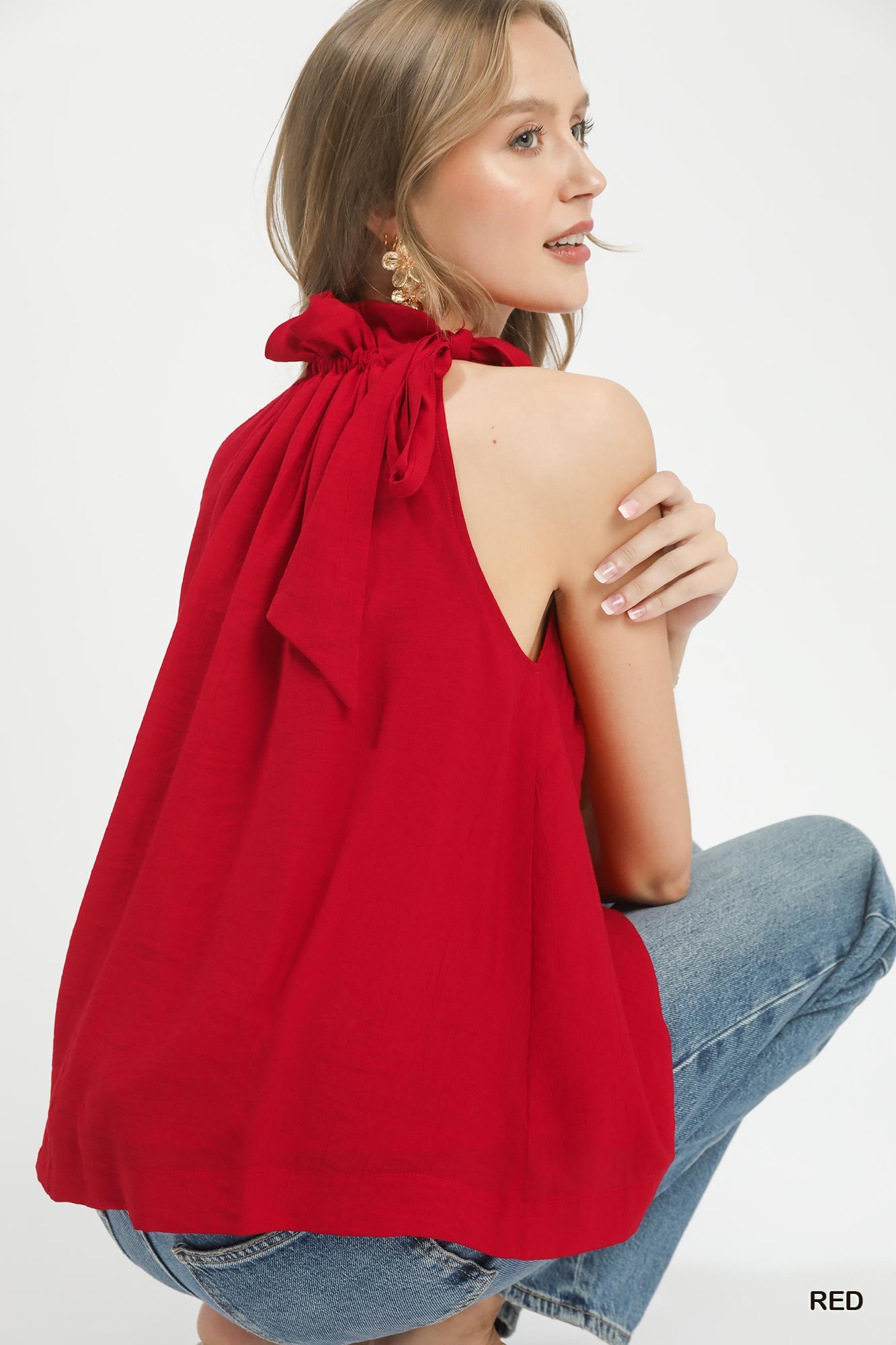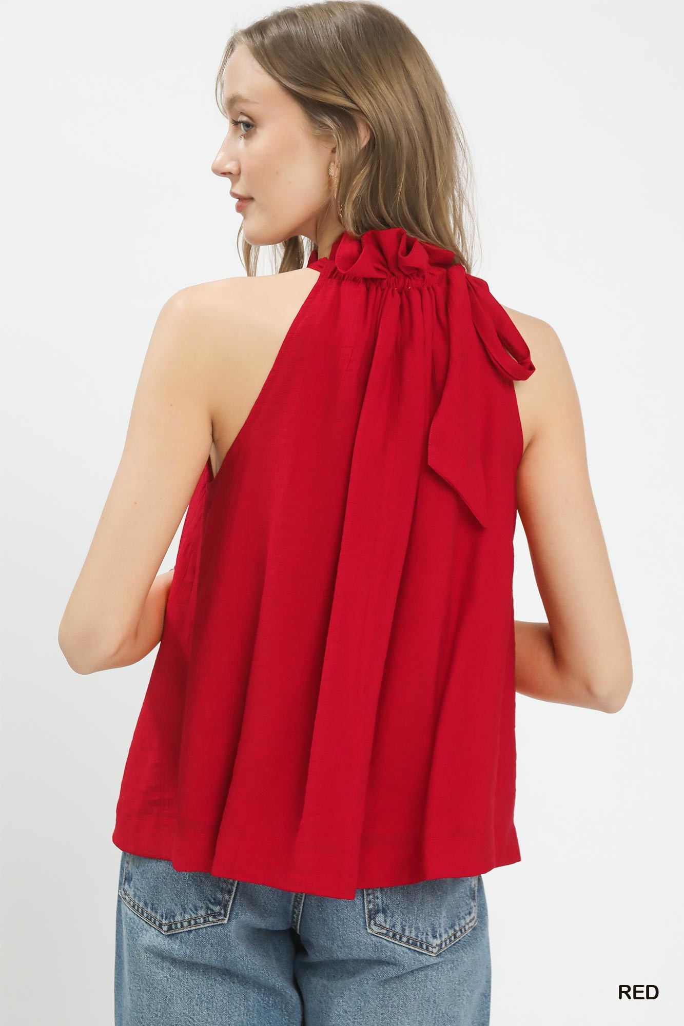Umgee Tie-Neck Ruffle Halter Boho Top