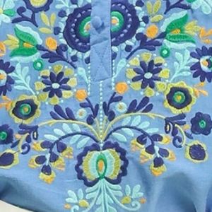This Embroidered Puff Sleeve Blouse features delicate floral embroidery that adds romantic, artisanal detail to your look. Designed with soft puff sleeves for a feminine silhouette, it’s made from lightweight, breathable fabric for all‑day comfort. The relaxed fit and classic neckline make it easy to dress up or down, pairing perfectly with jeans, skirts, or shorts. Elegant, timeless, and effortlessly charming, it's a standout piece for everyday and occasion wear.