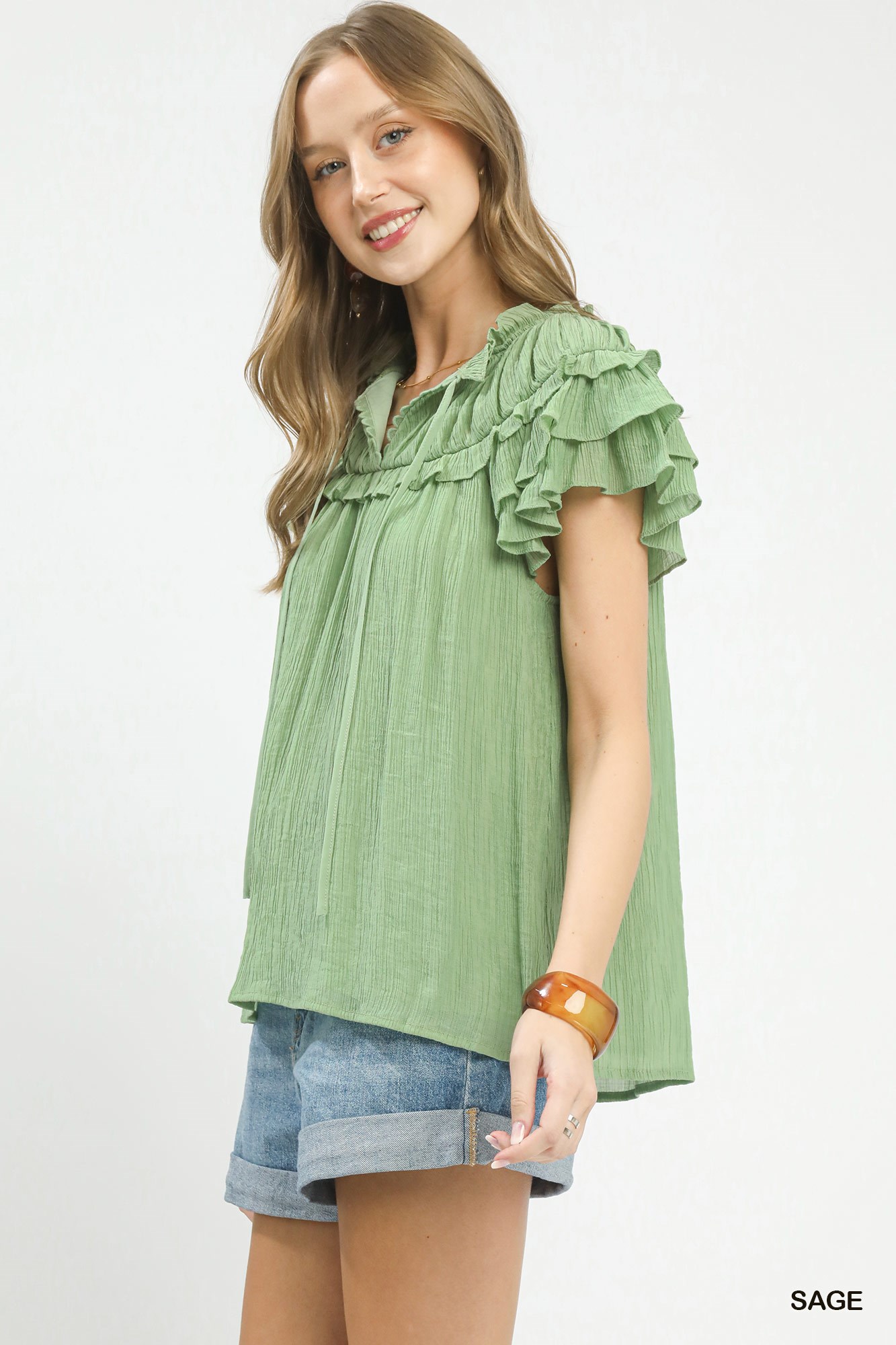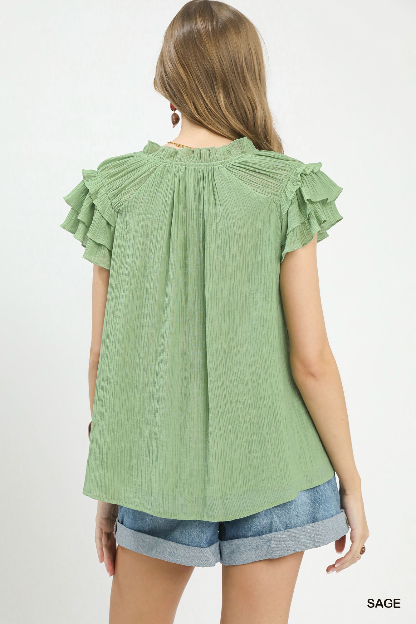 Umgee Ruffled Flutter Sleeve Textured Blouse