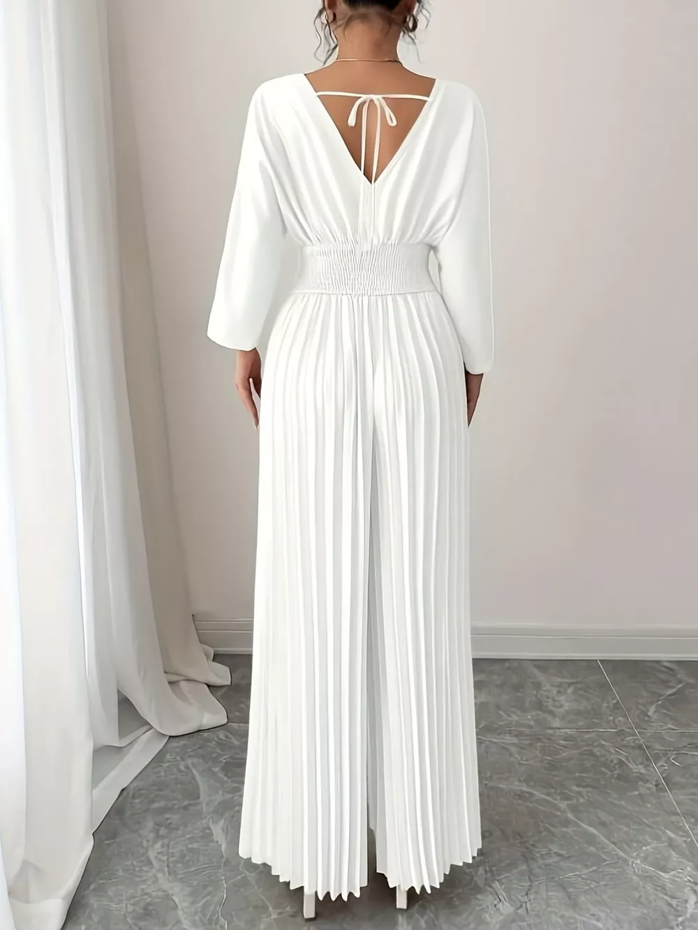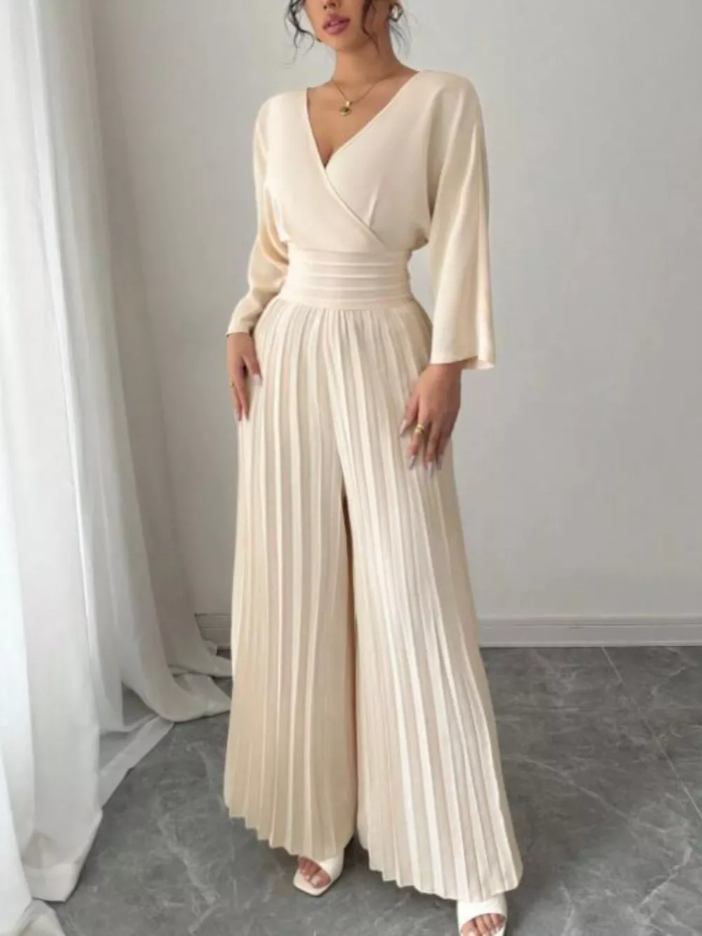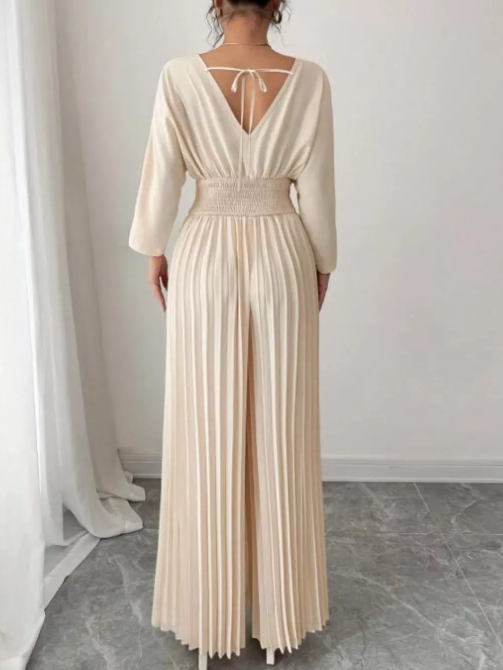 Surplice Pleated Wide Leg Jumpsuit