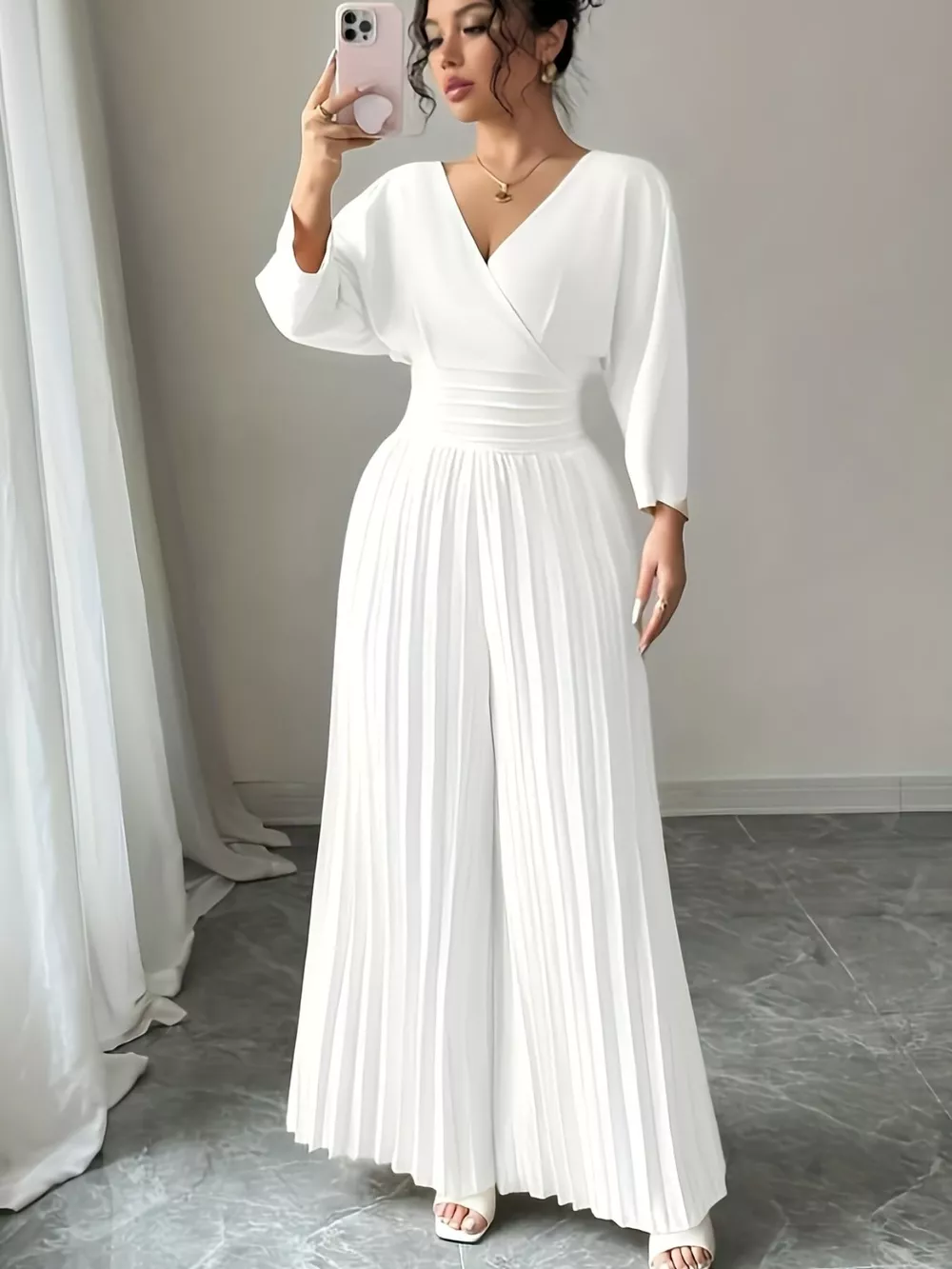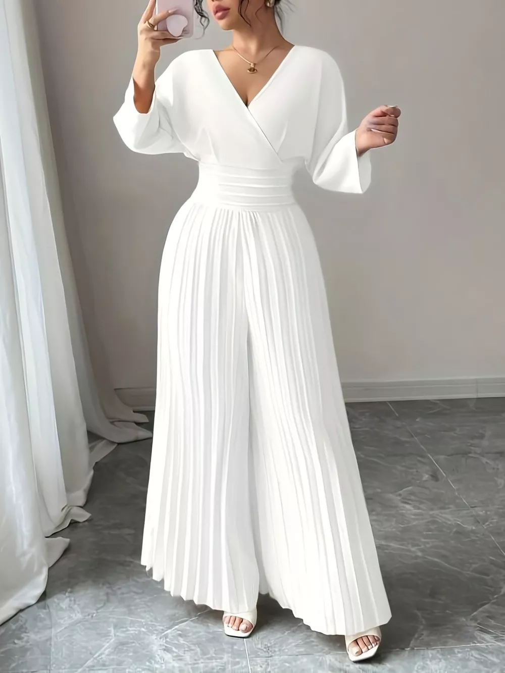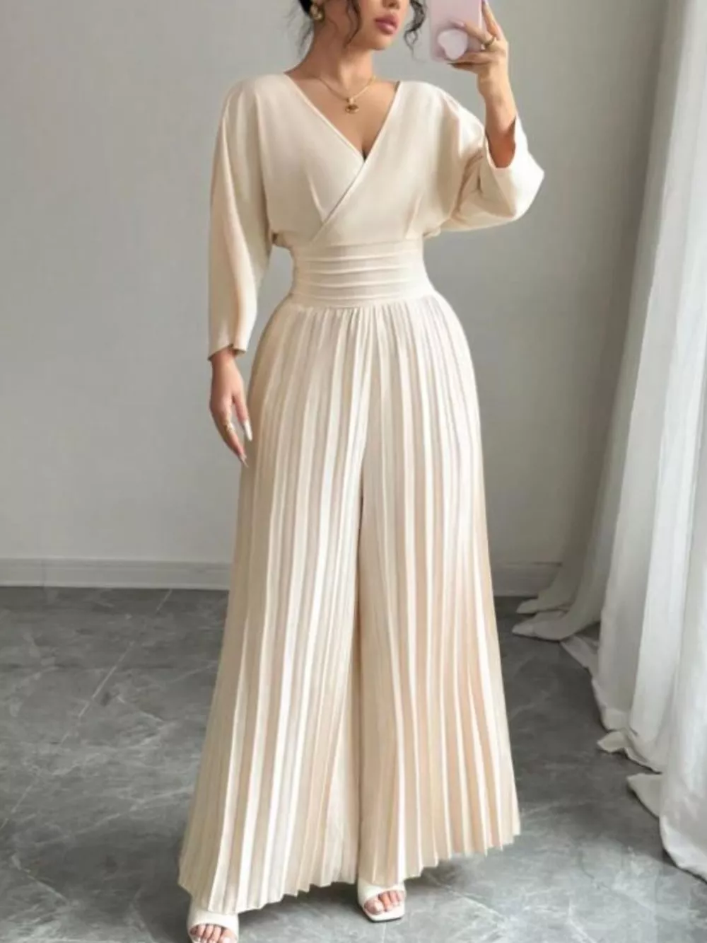 Surplice Pleated Wide Leg Jumpsuit