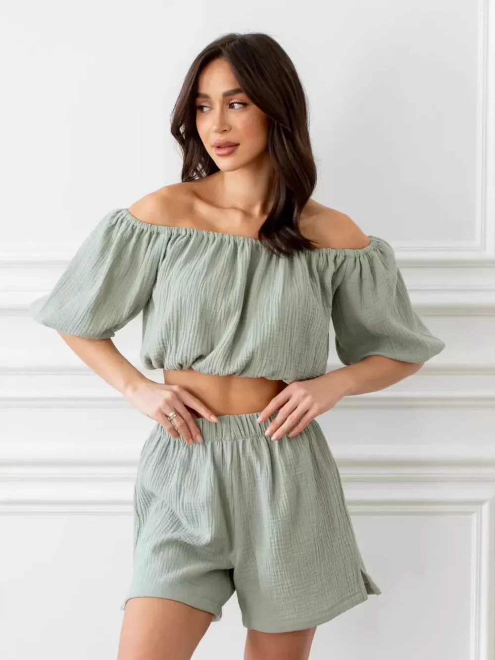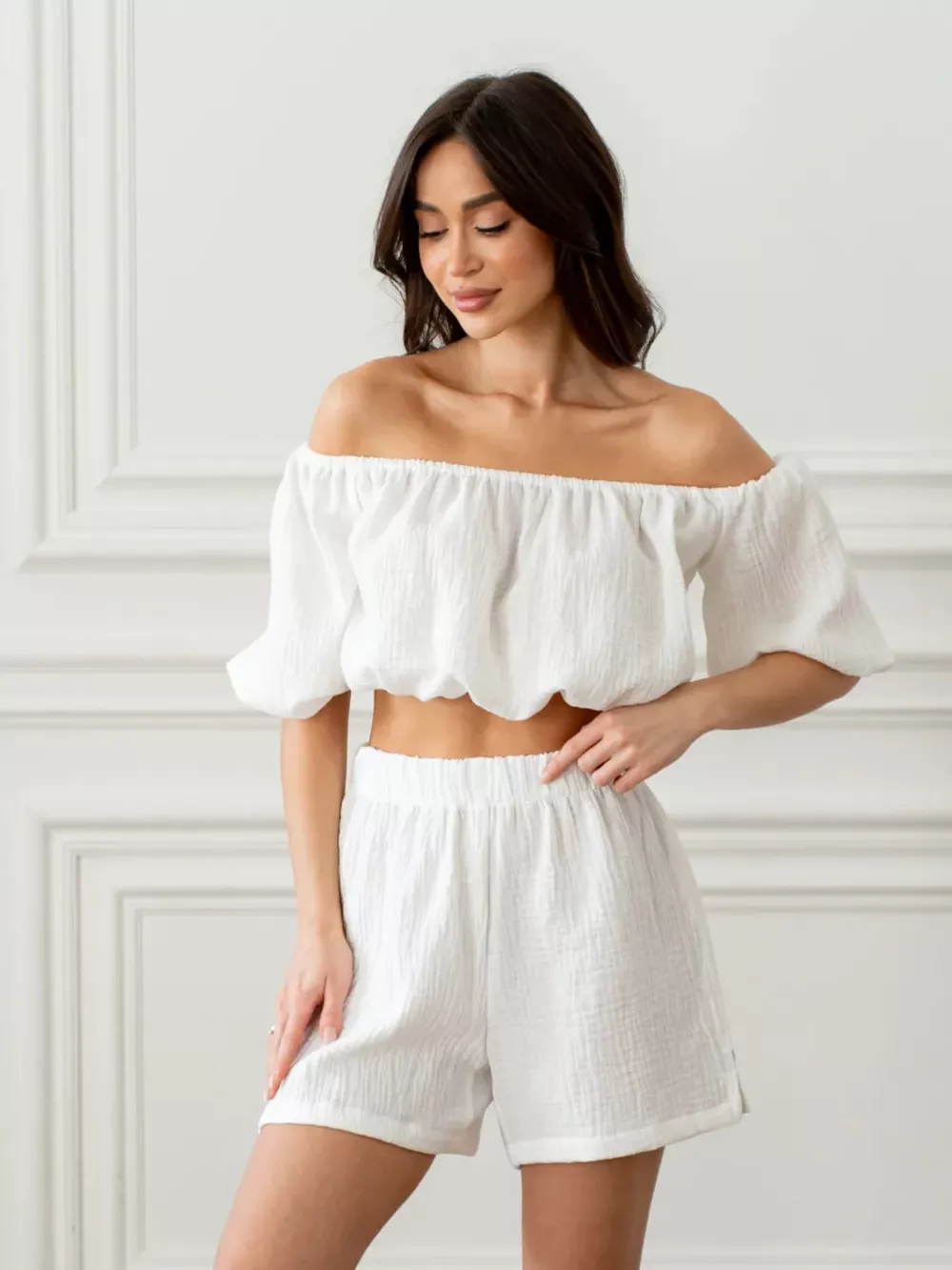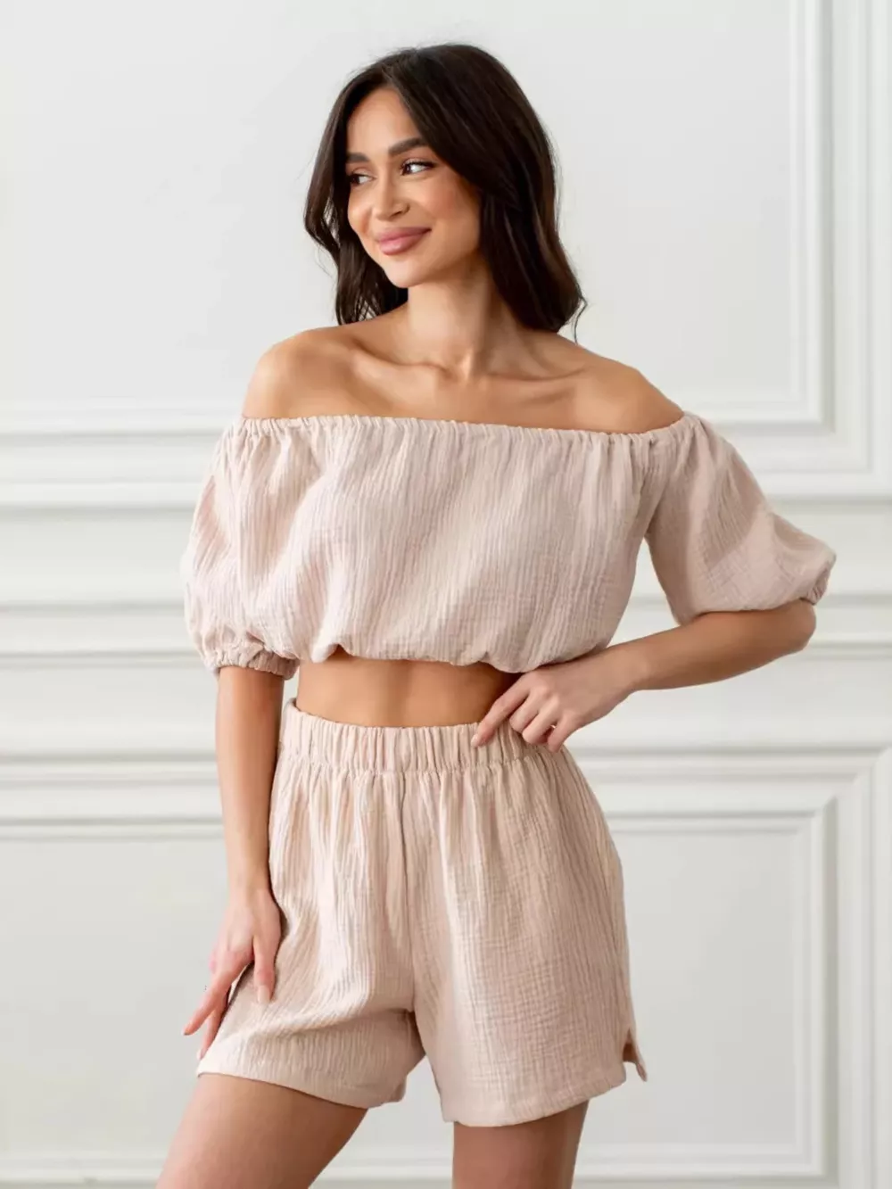 Off-Shoulder Cropped Top and Shorts Set