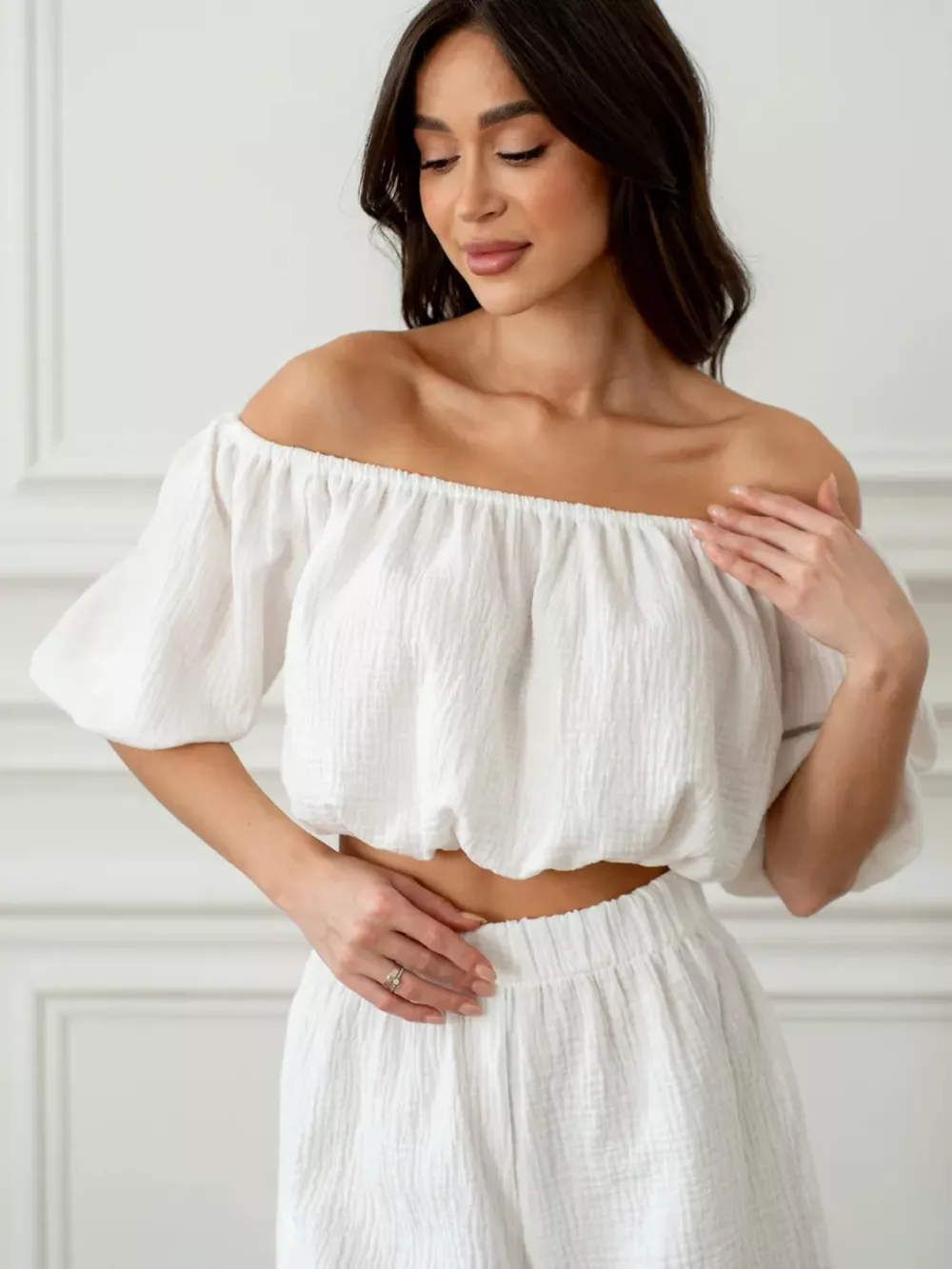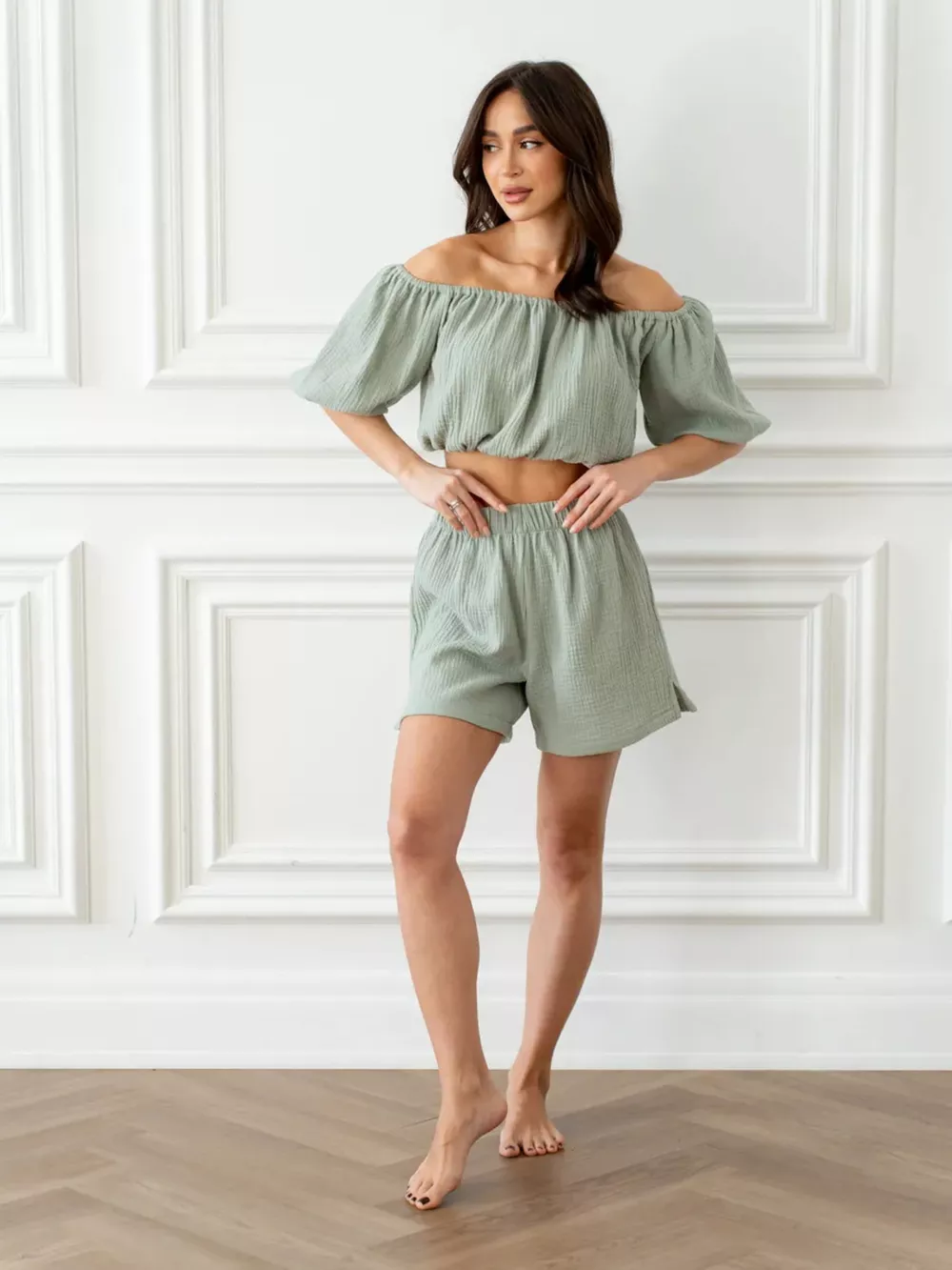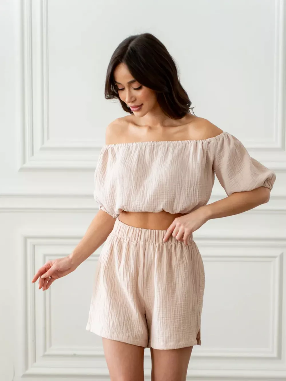 Off-Shoulder Cropped Top and Shorts Set