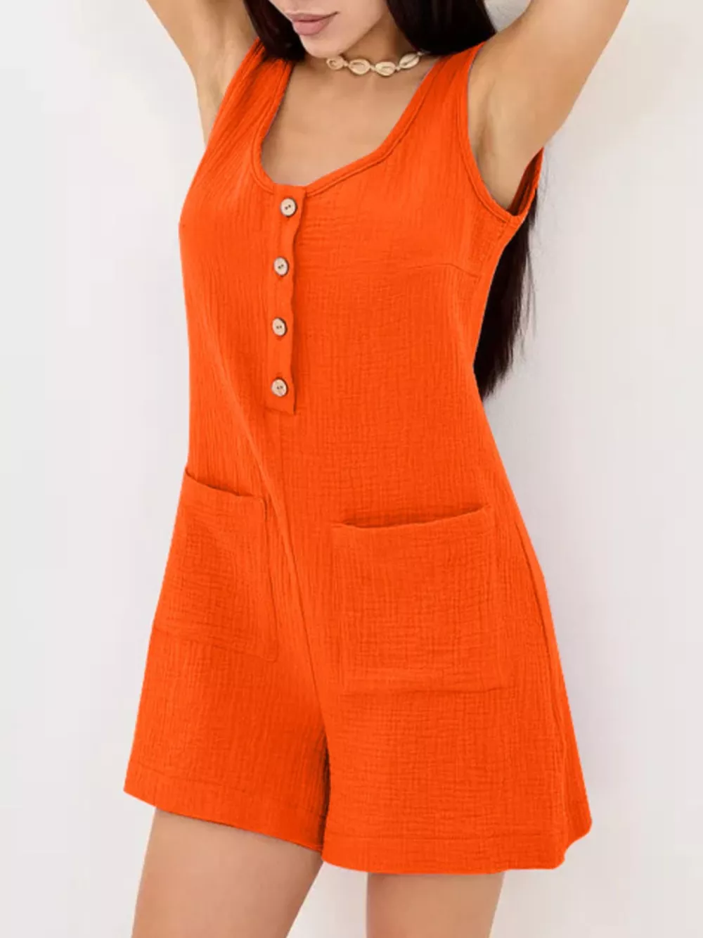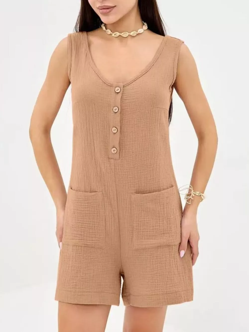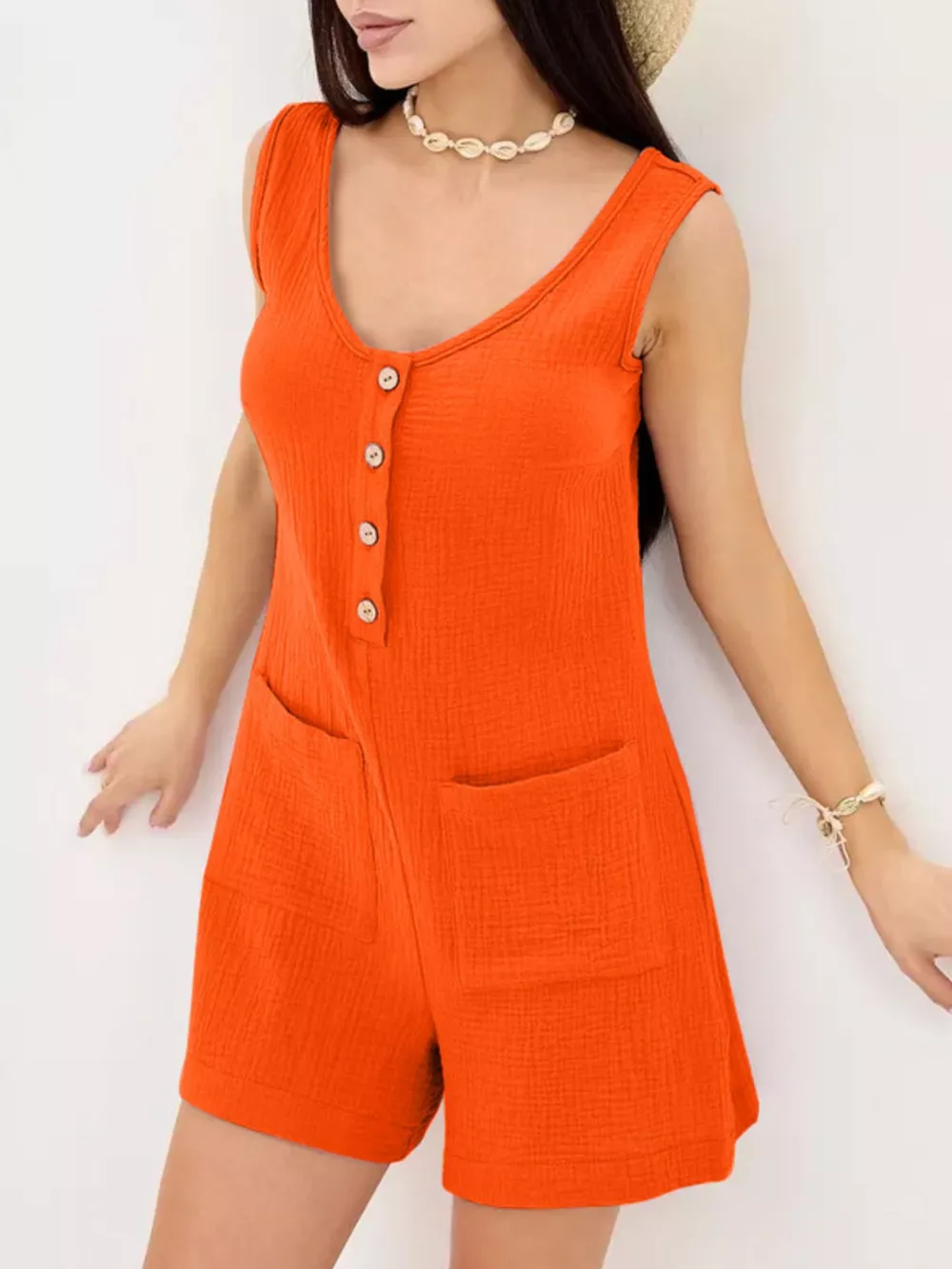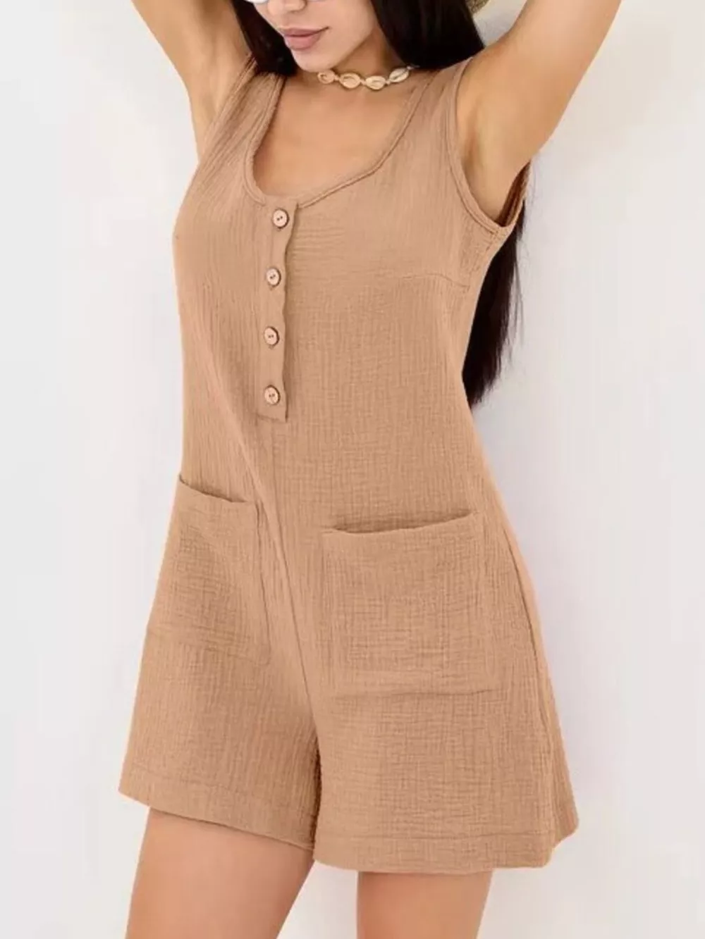Casual Button-Down Sleeveless Romper