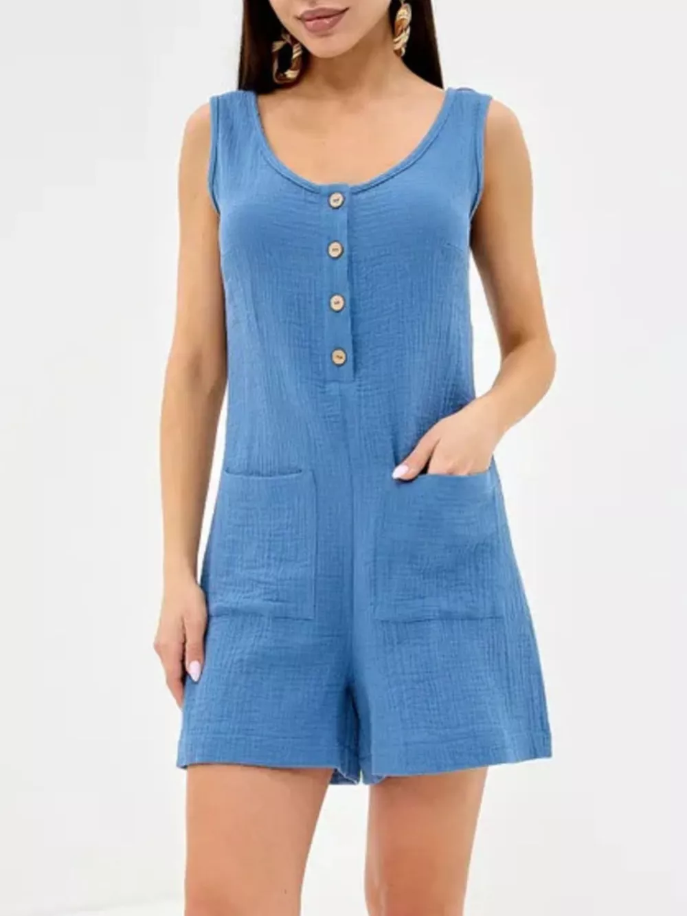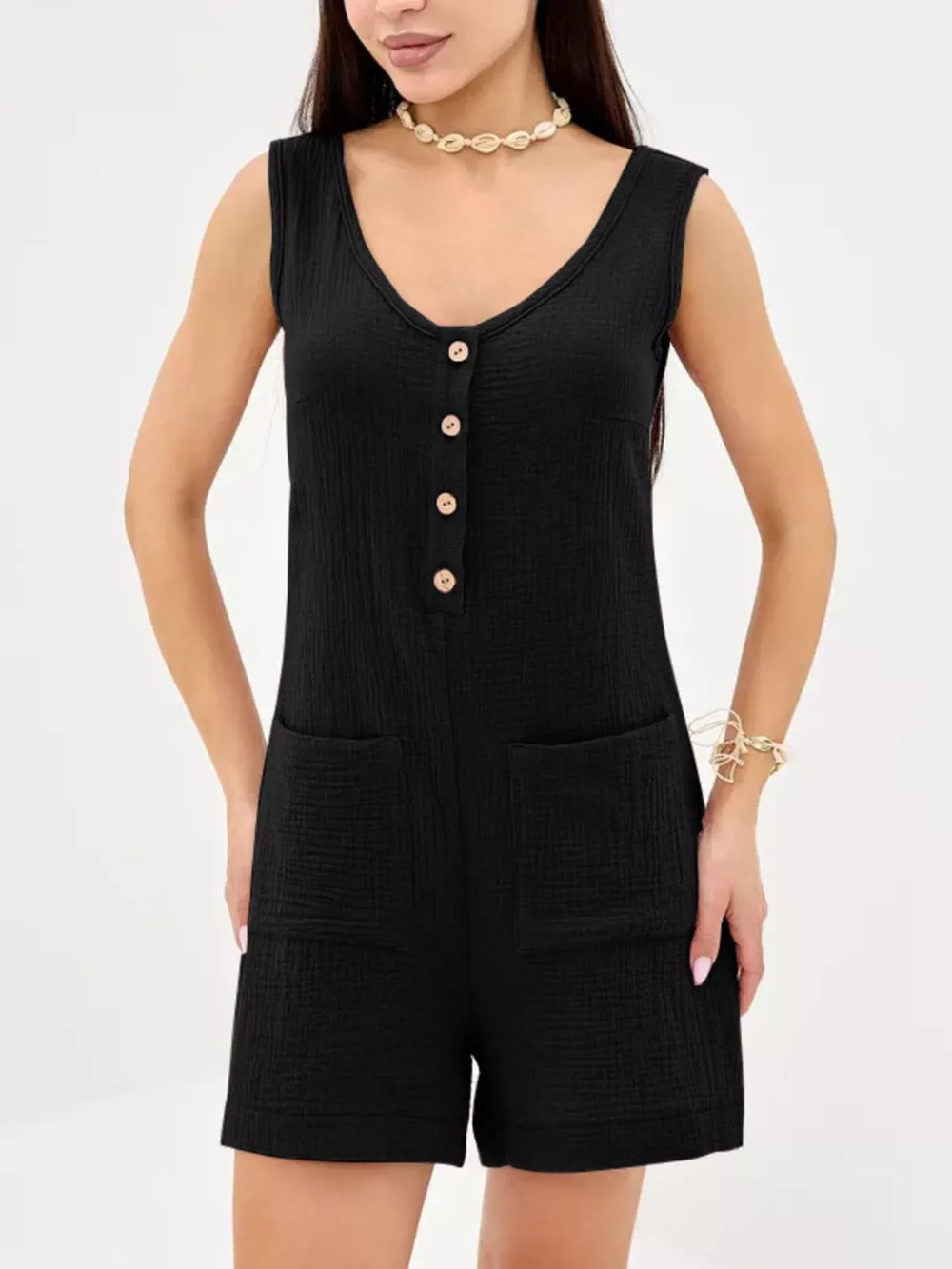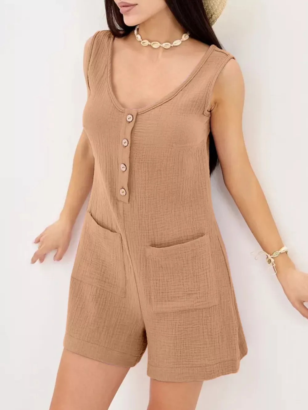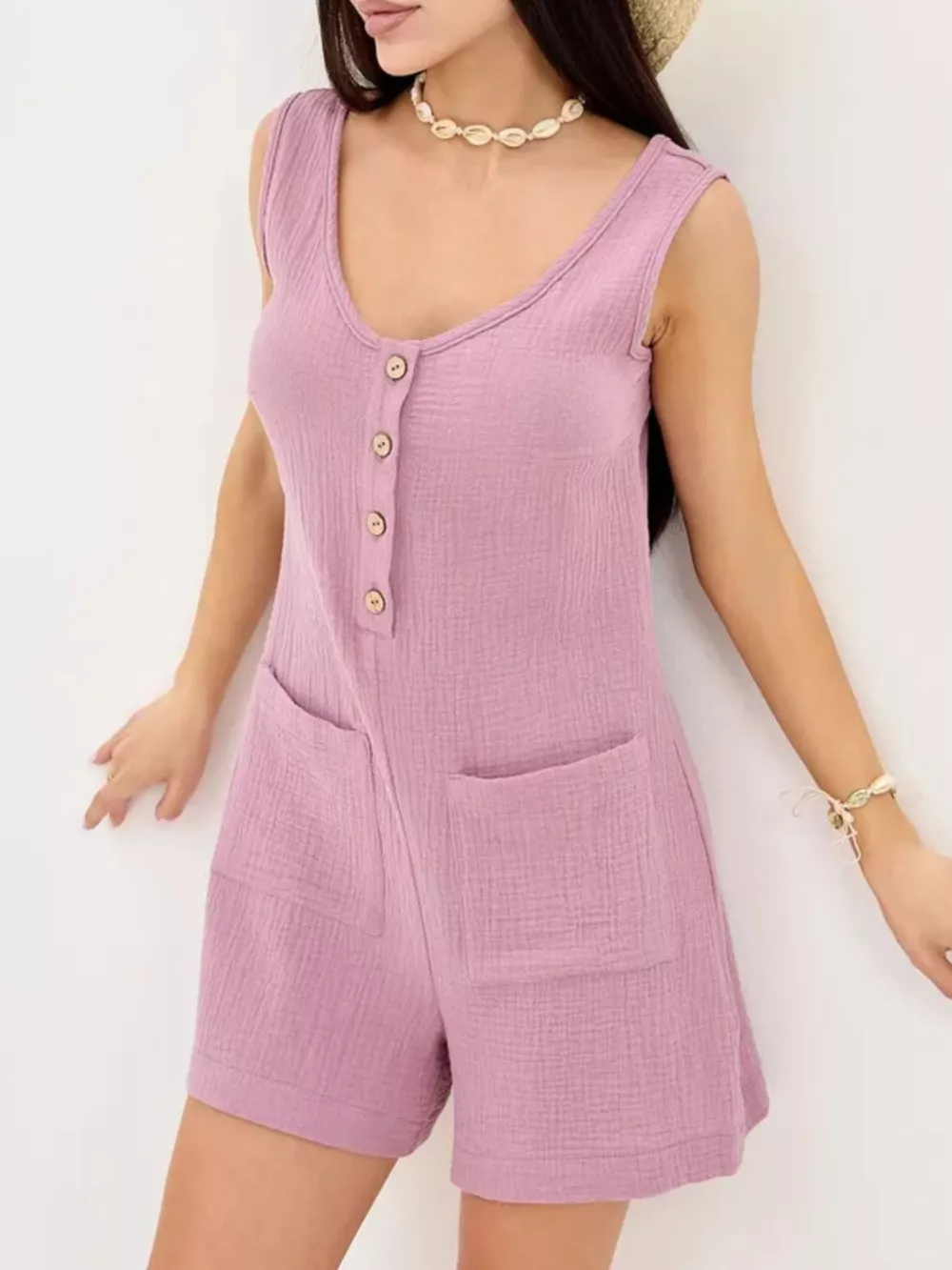 Casual Button-Down Sleeveless Romper