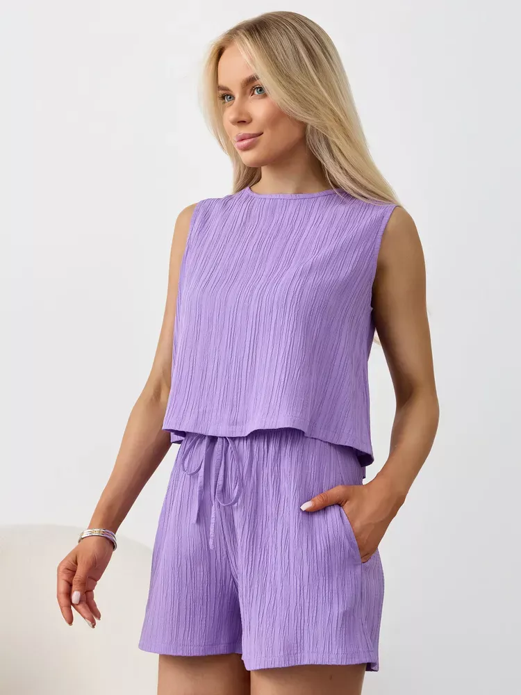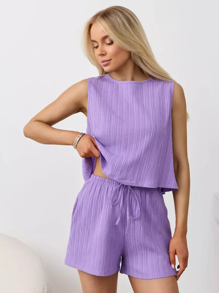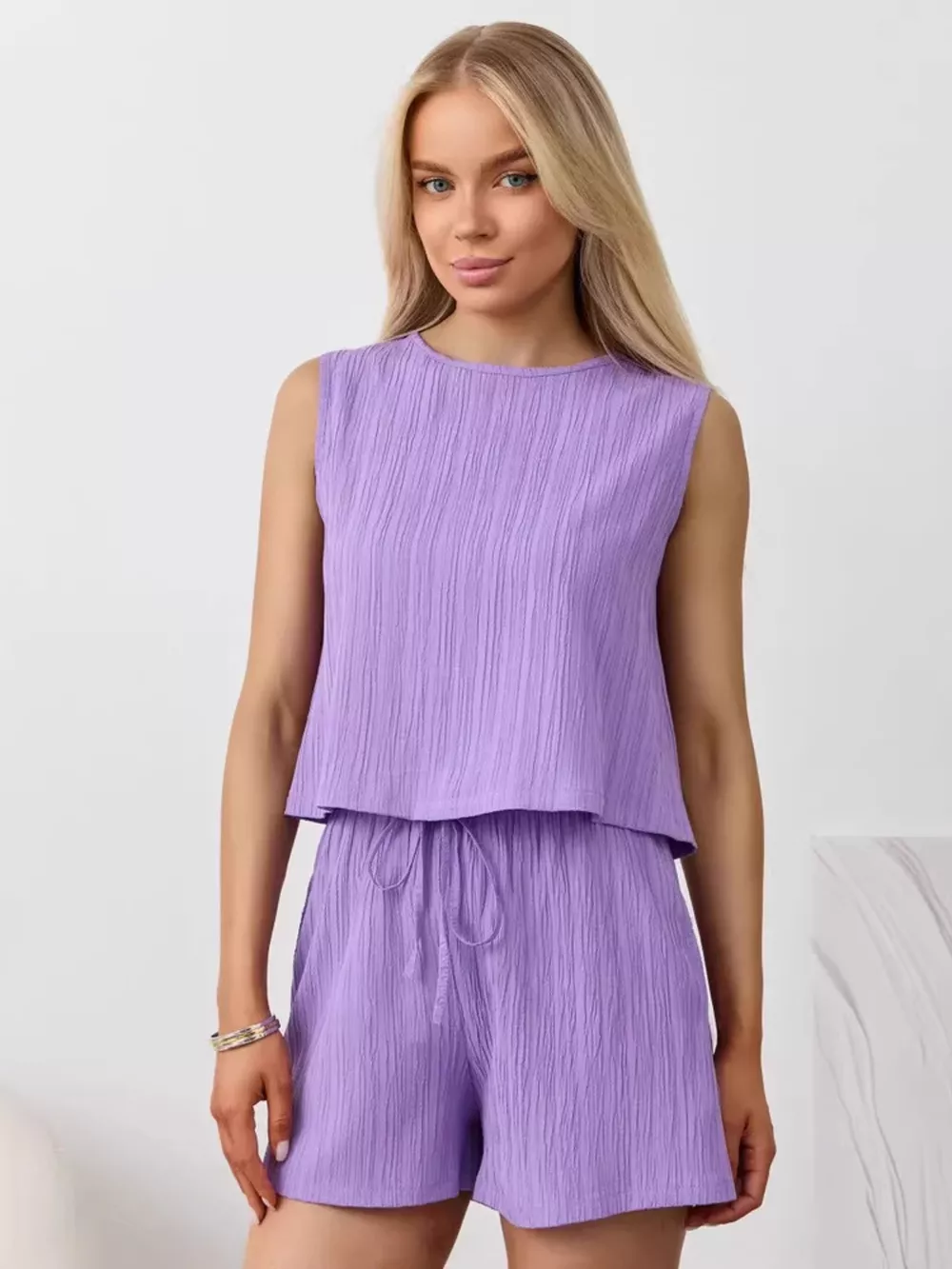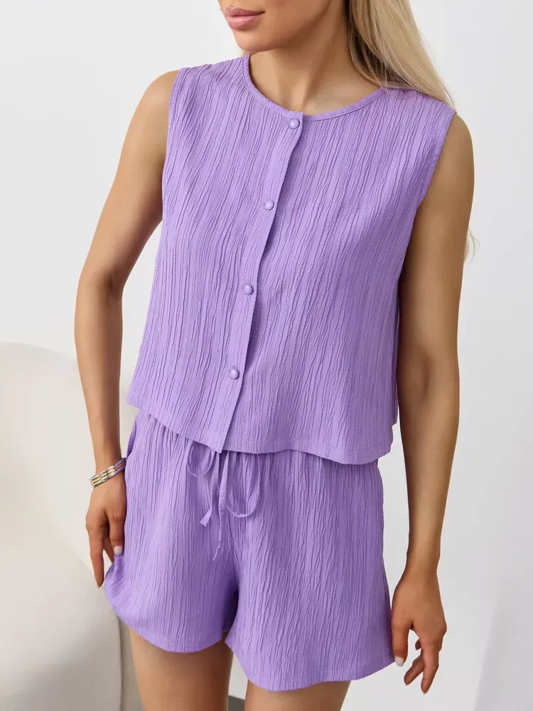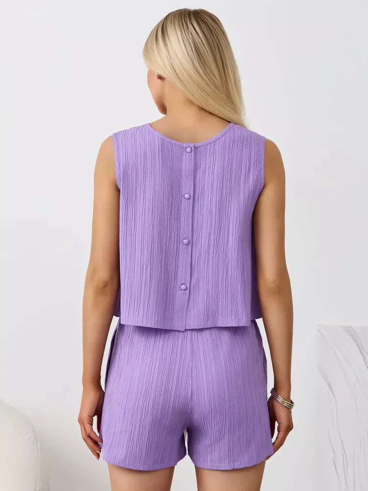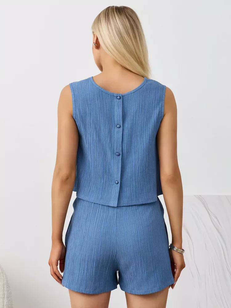 Textured Round Neck Tank and Shorts Set