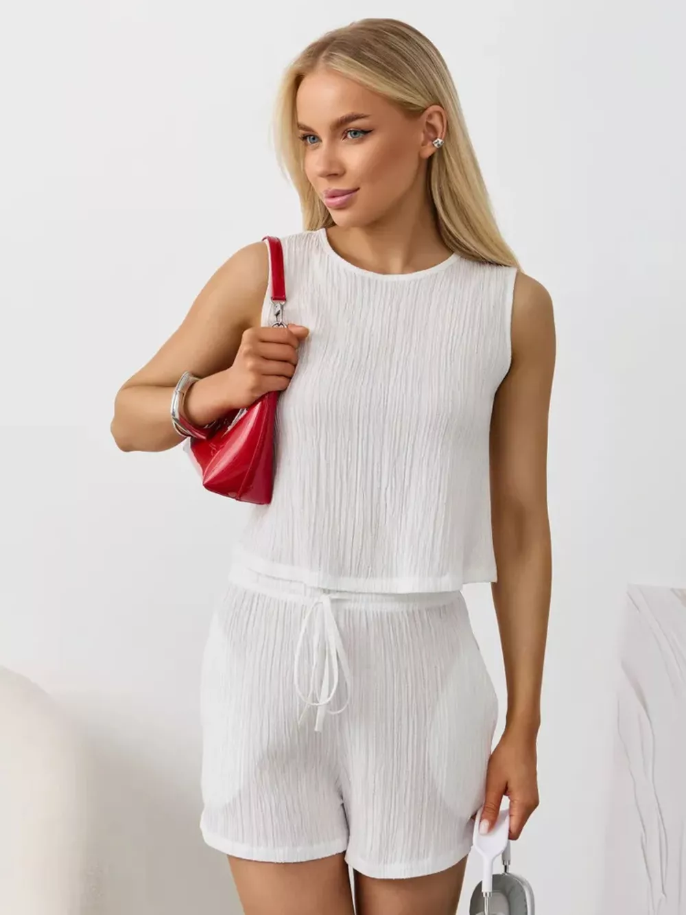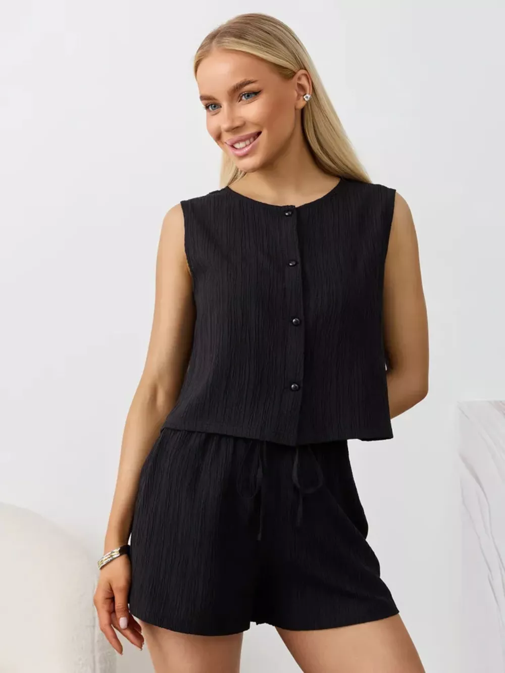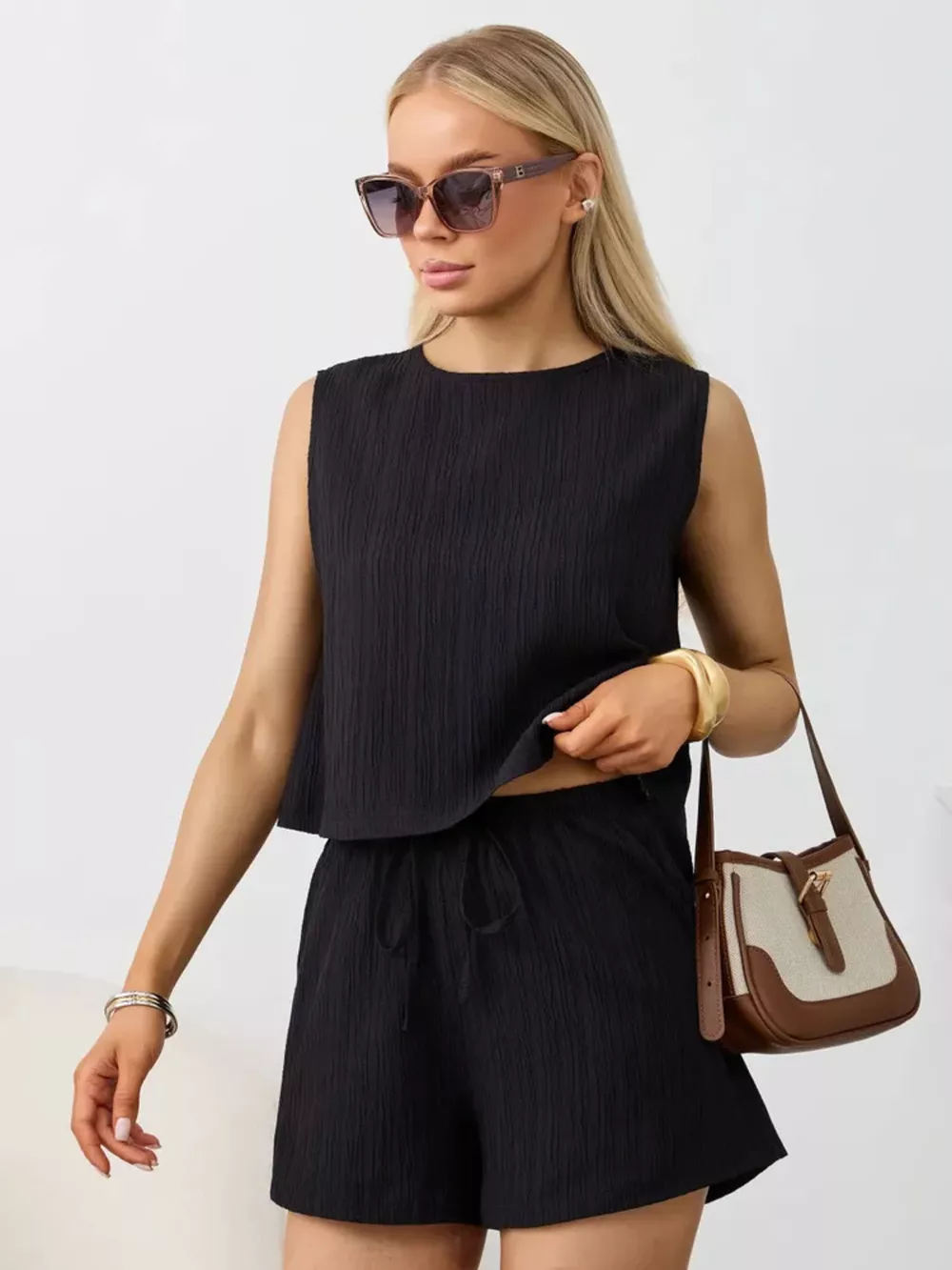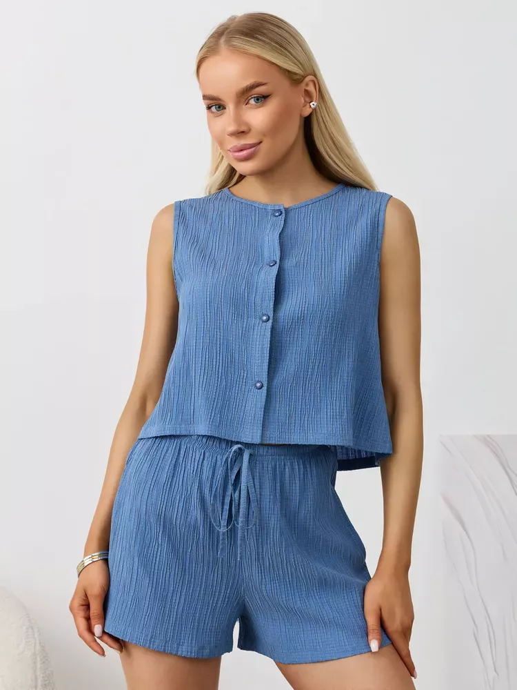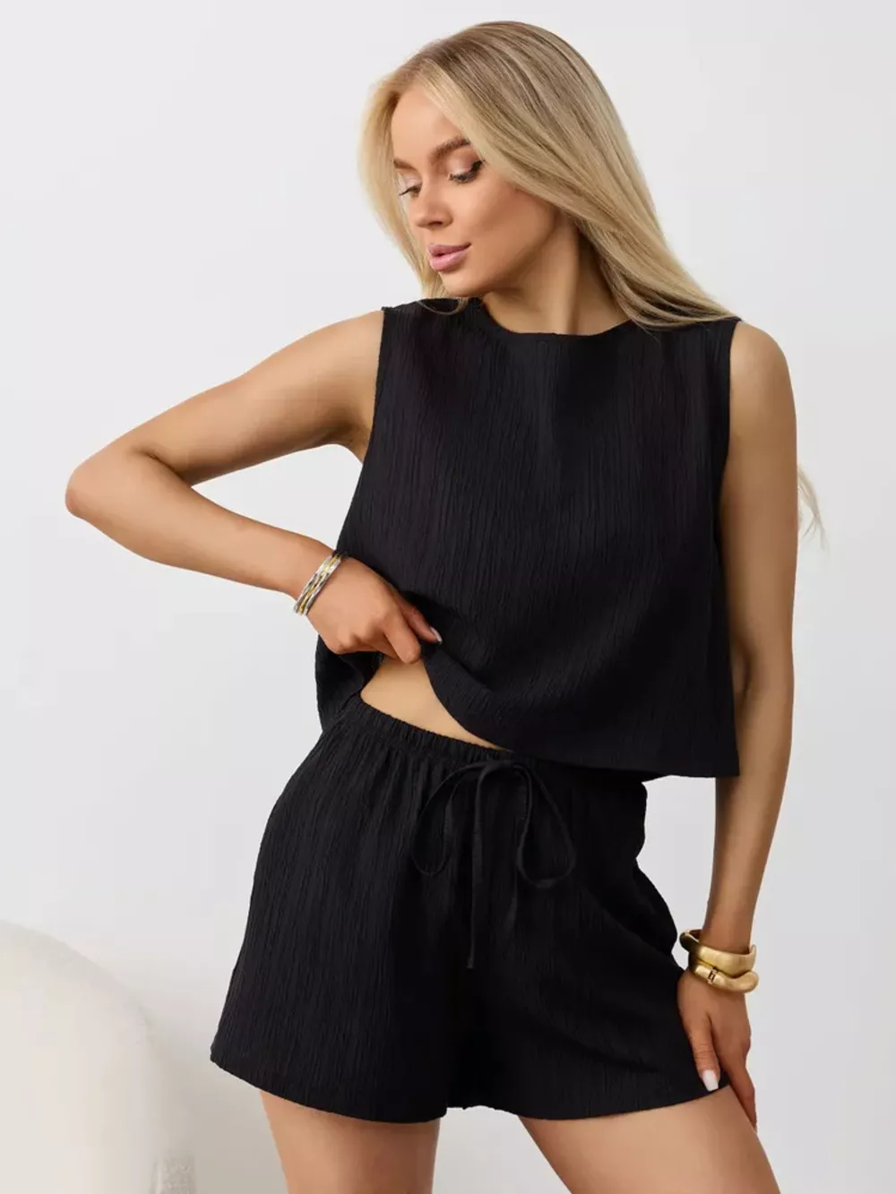 Textured Round Neck Tank and Shorts Set