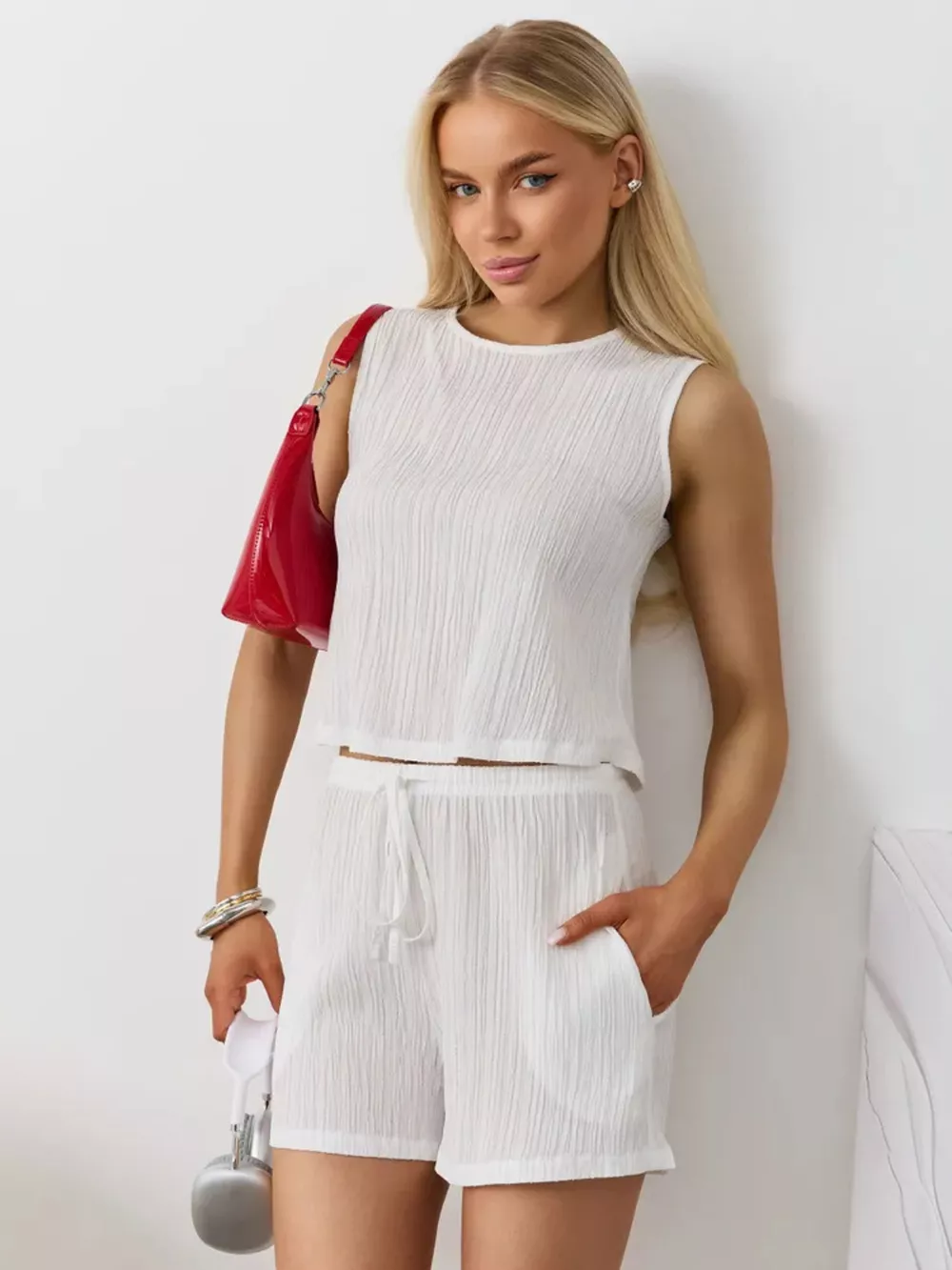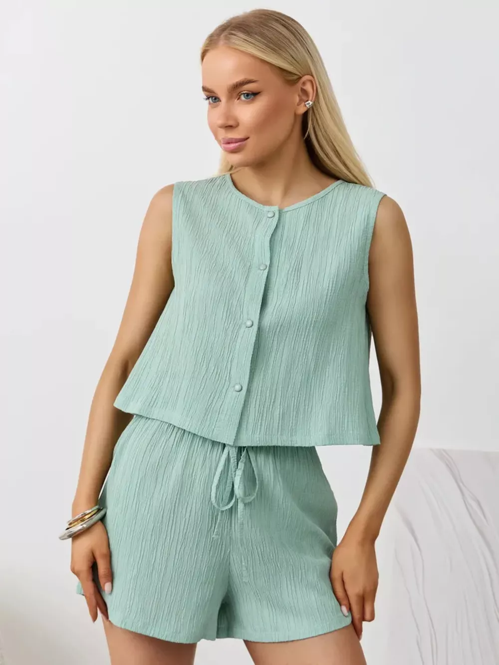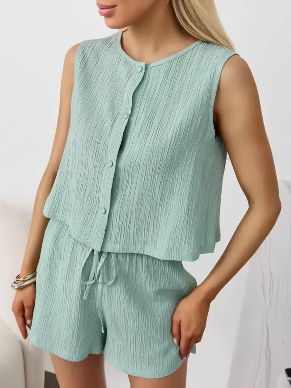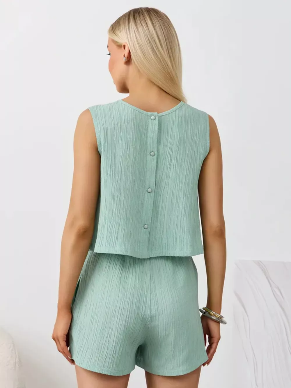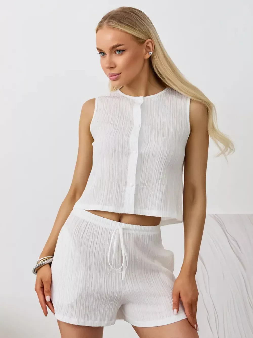 Textured Round Neck Tank and Shorts Set