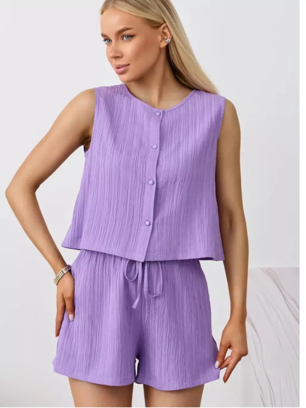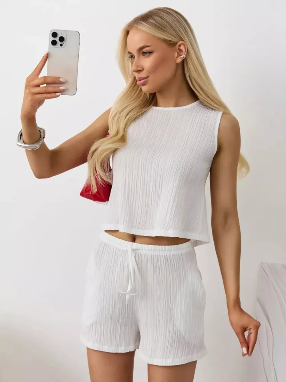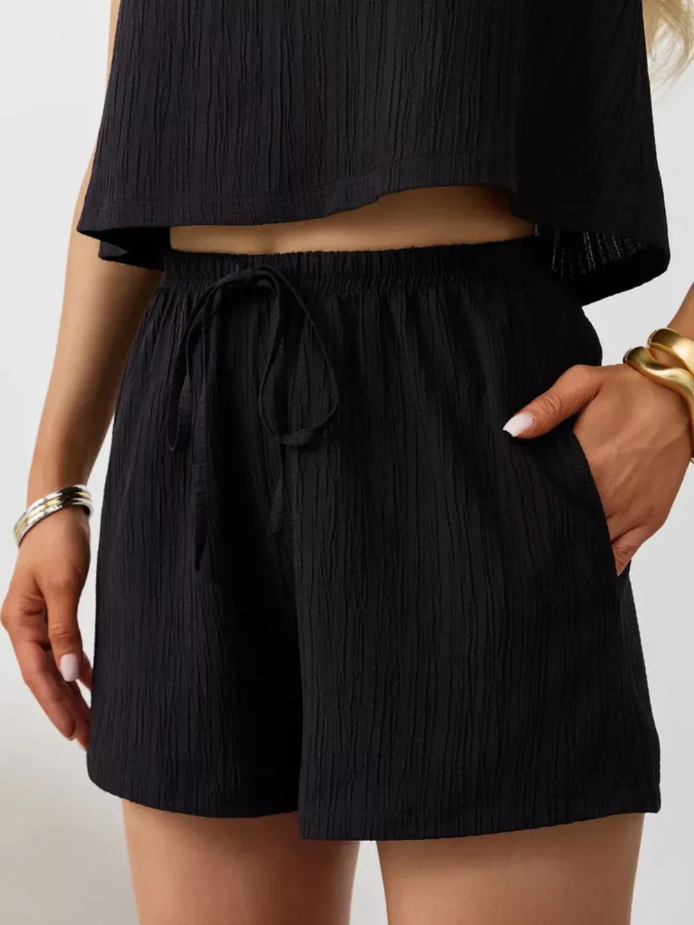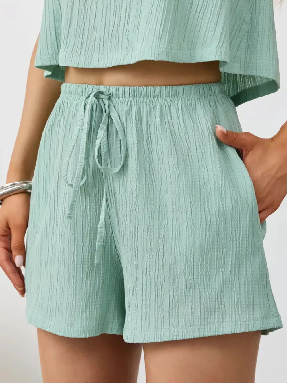Textured Round Neck Tank and Shorts Set
