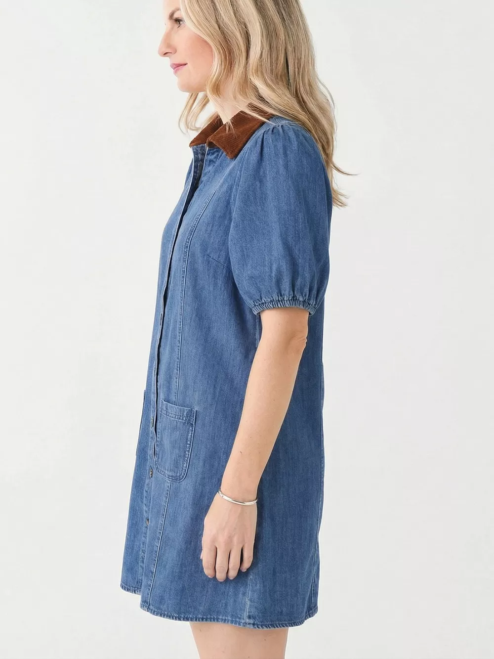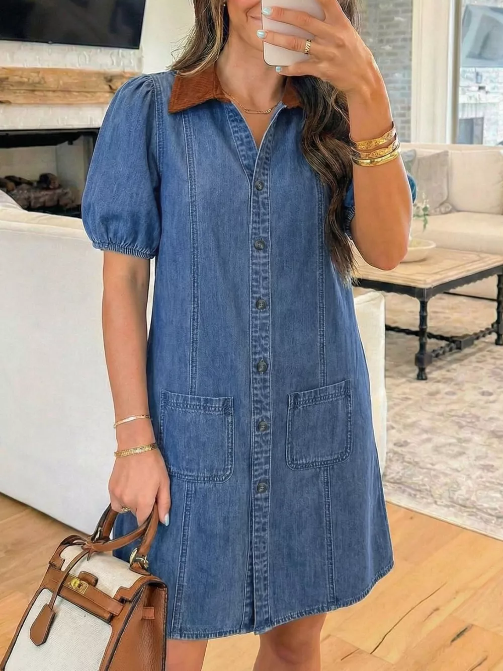 Button-Down Short Sleeve Denim Dress