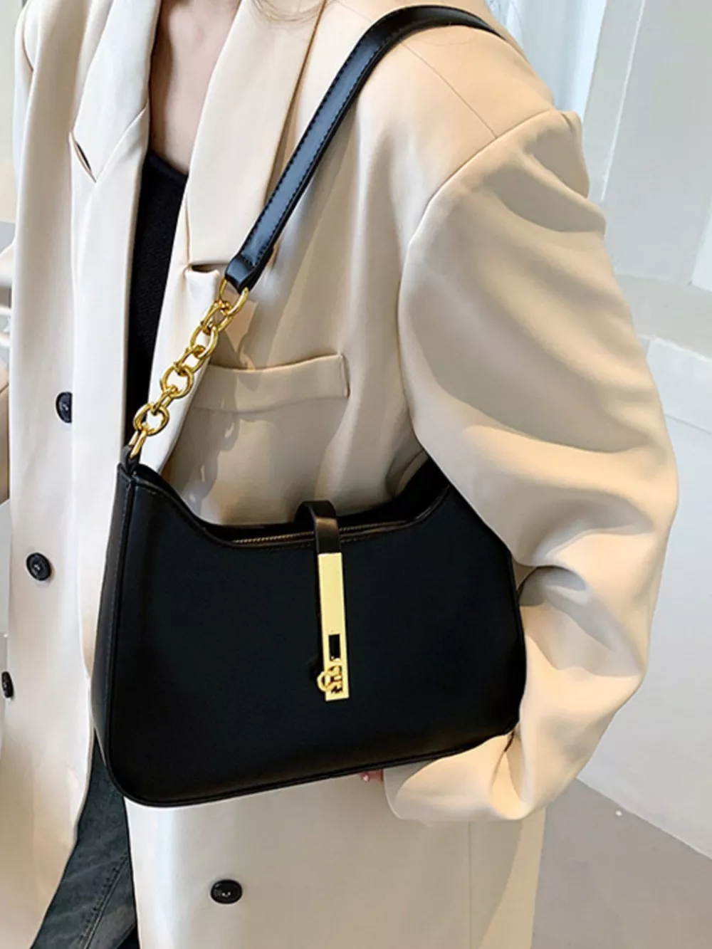 Golden Buckle Shoulder Bag