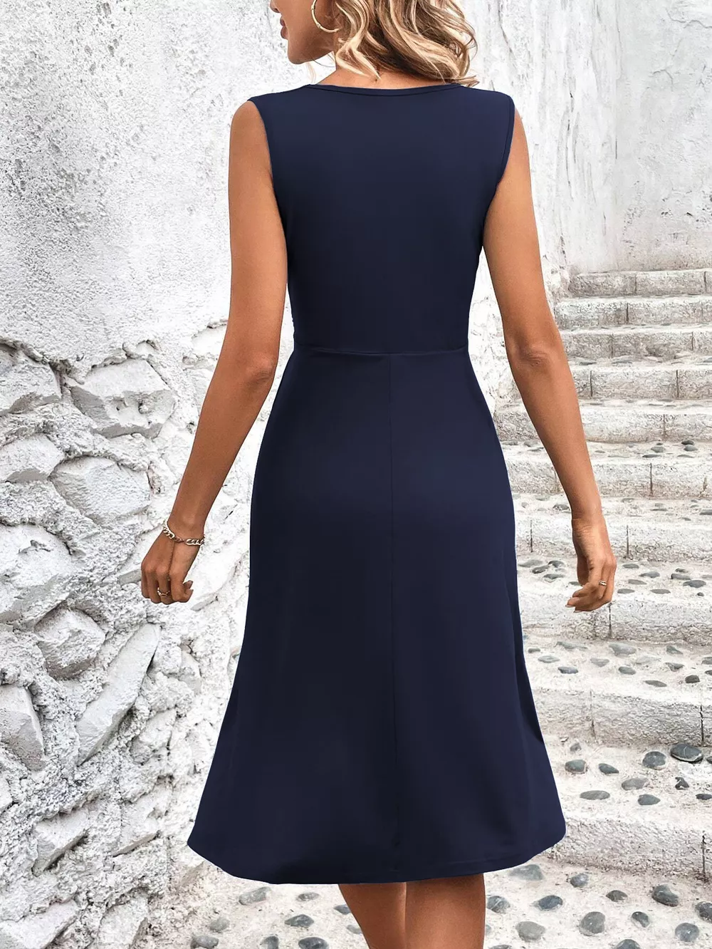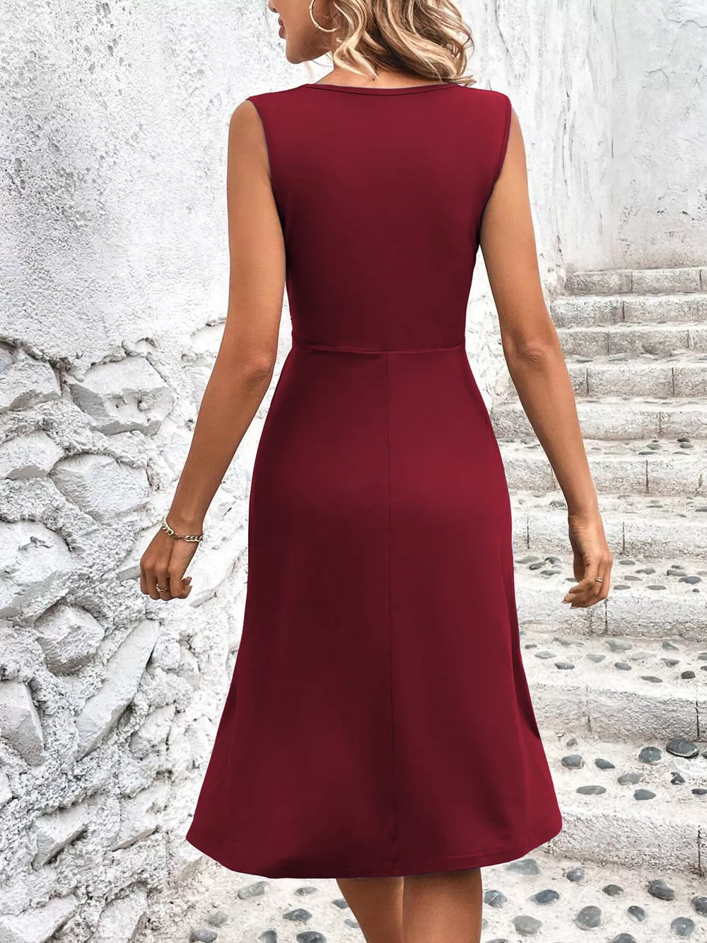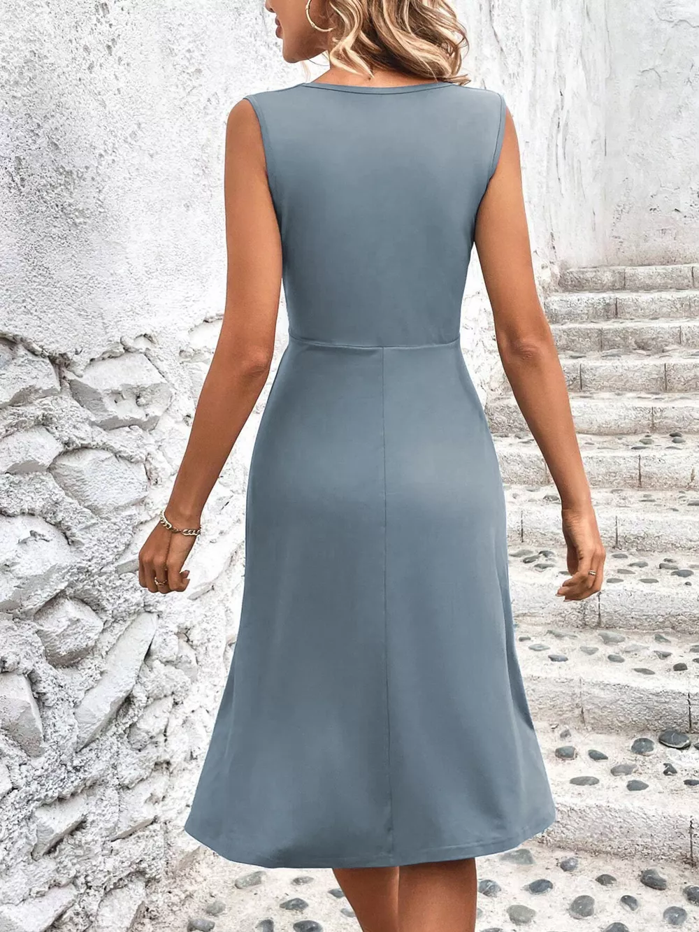 Ruched Sleeveless A-Line Dress