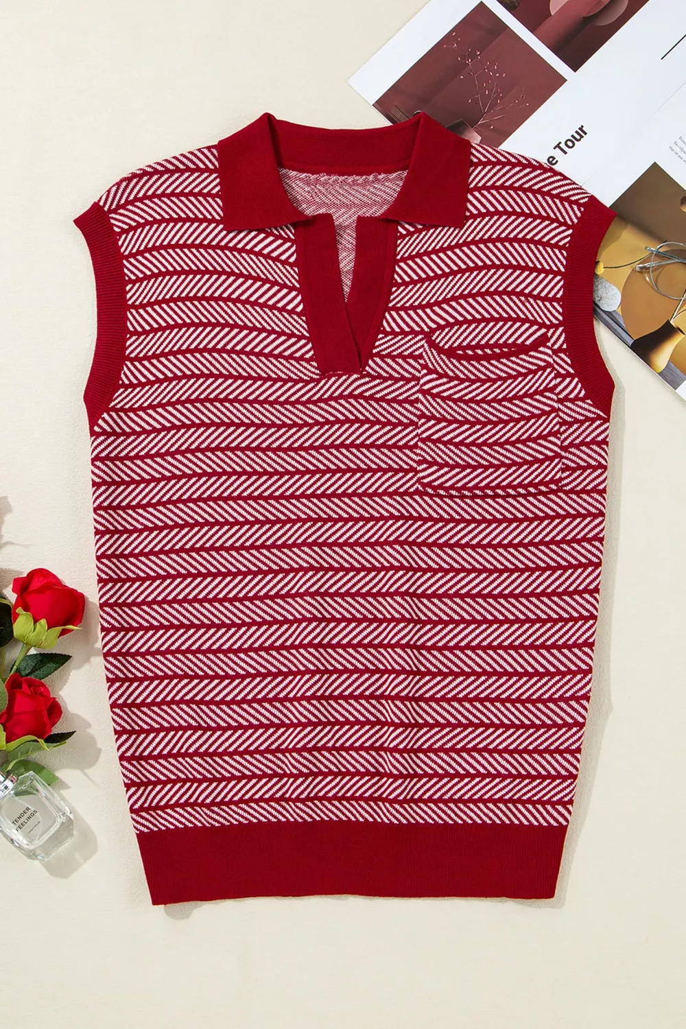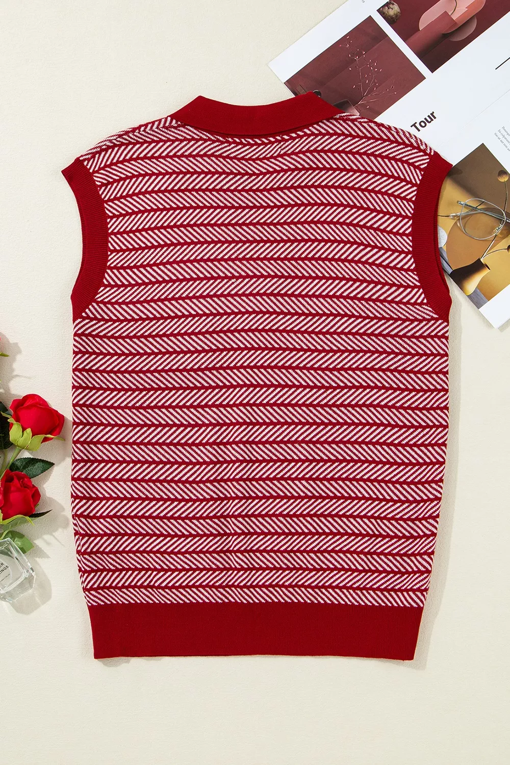 Stripe Contrast Trim Polo Collar Sweater Vest