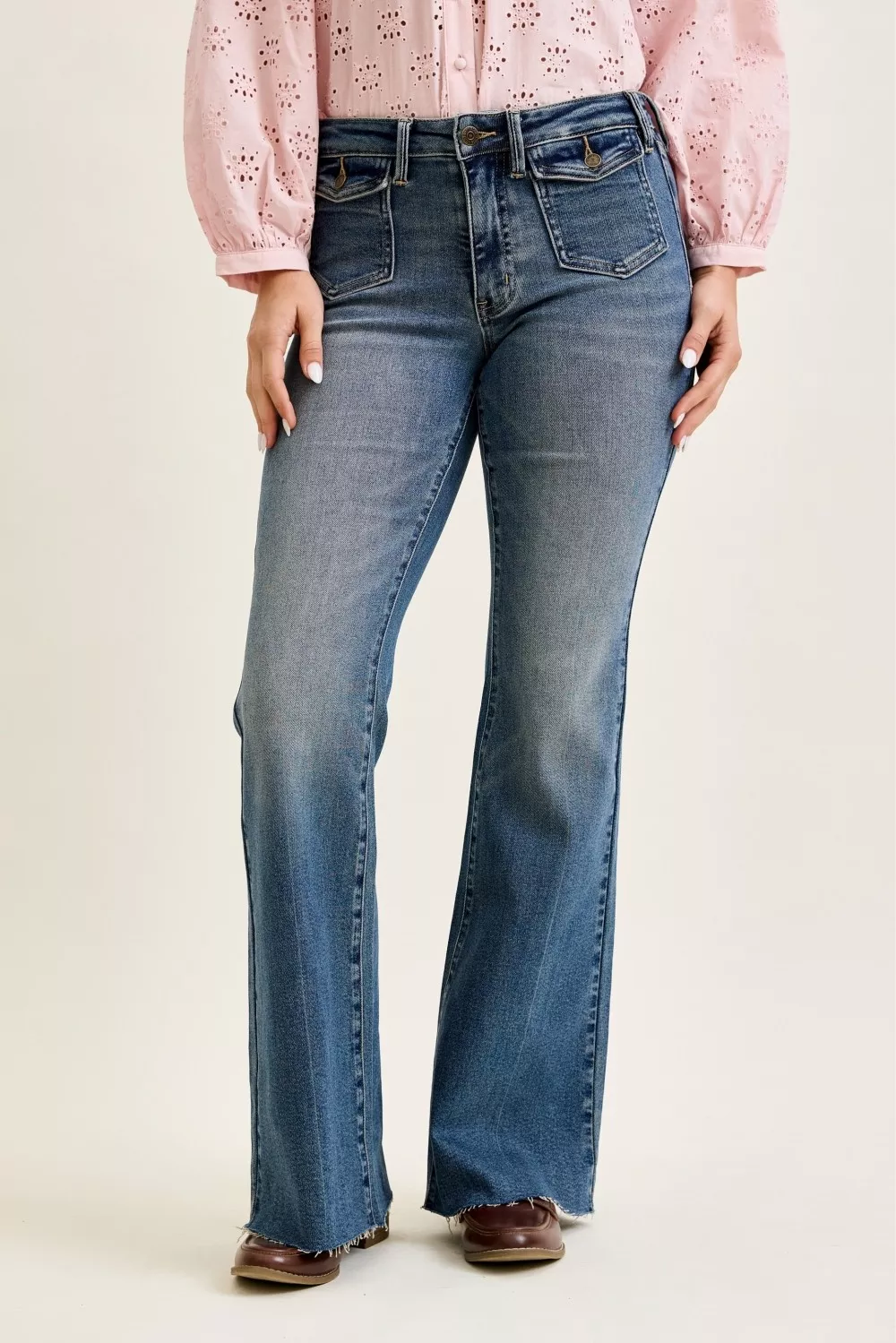 Judy Blue Mid Rise Flare Jeans with Front Flap Pockets