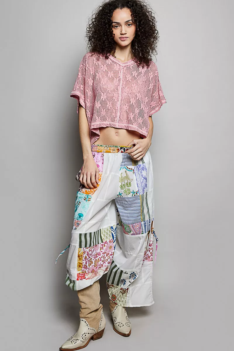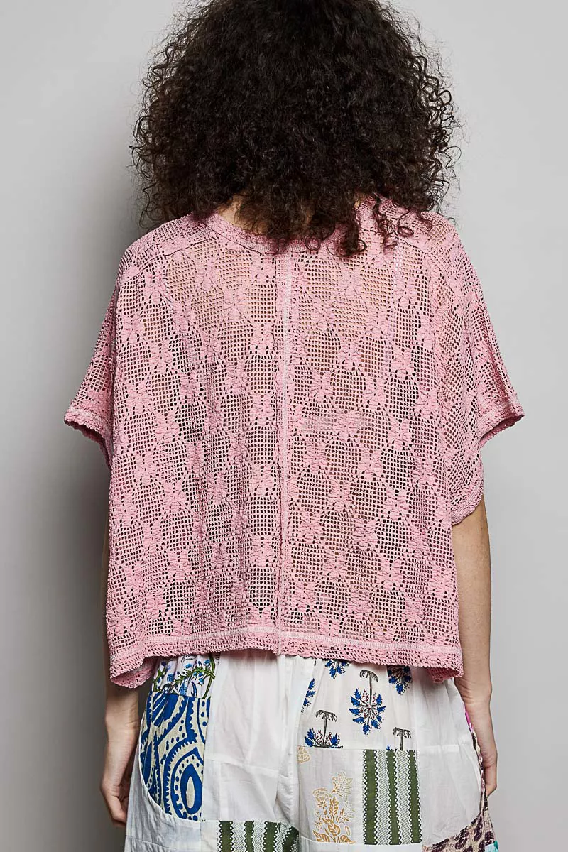 POL Crochet Lace Short Sleeve Top