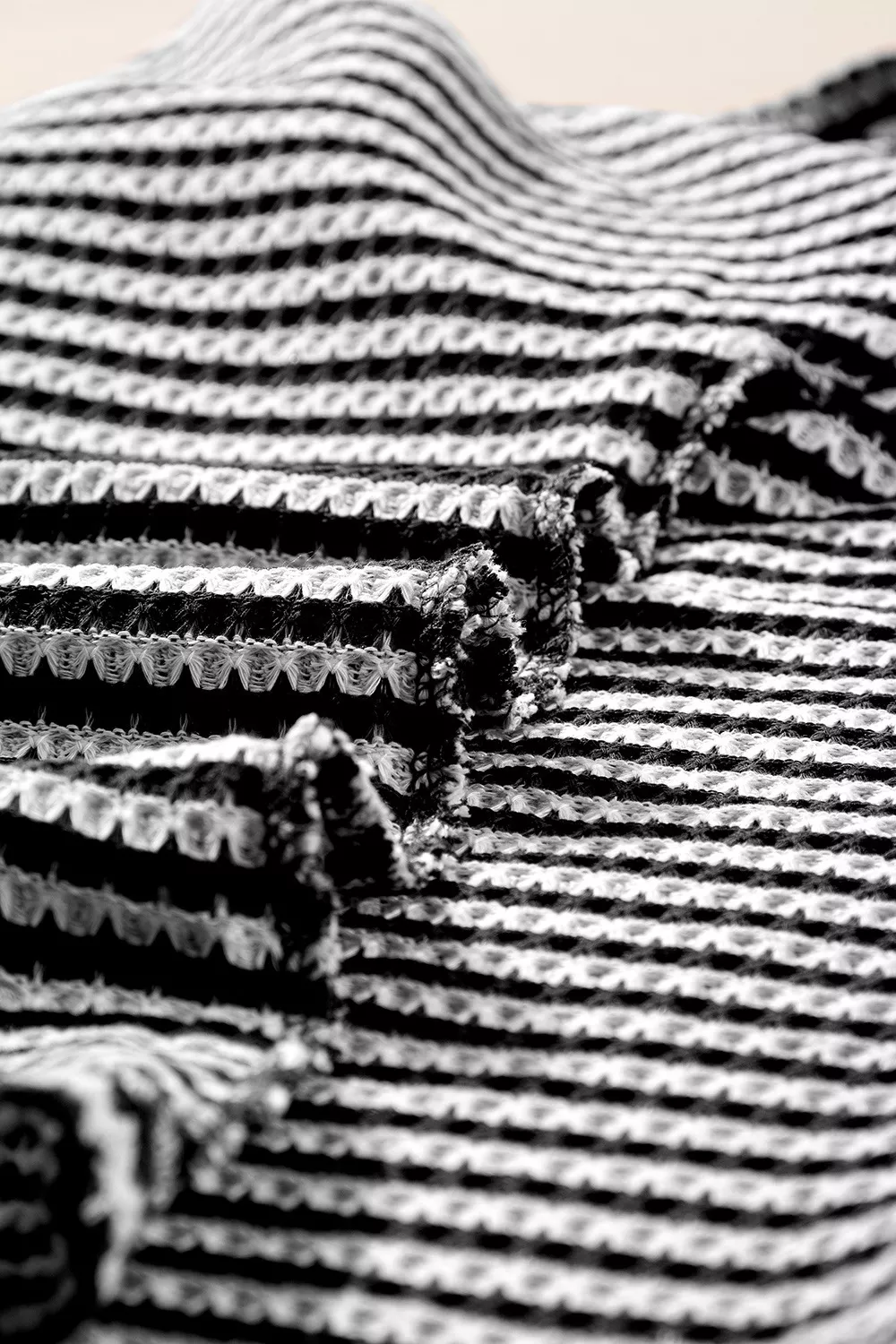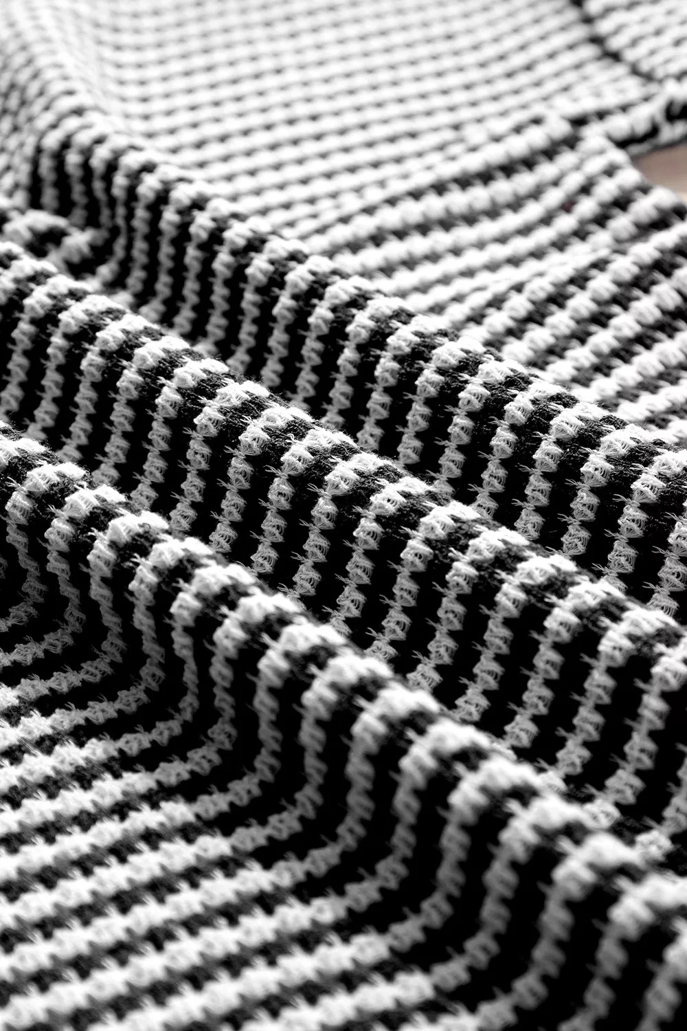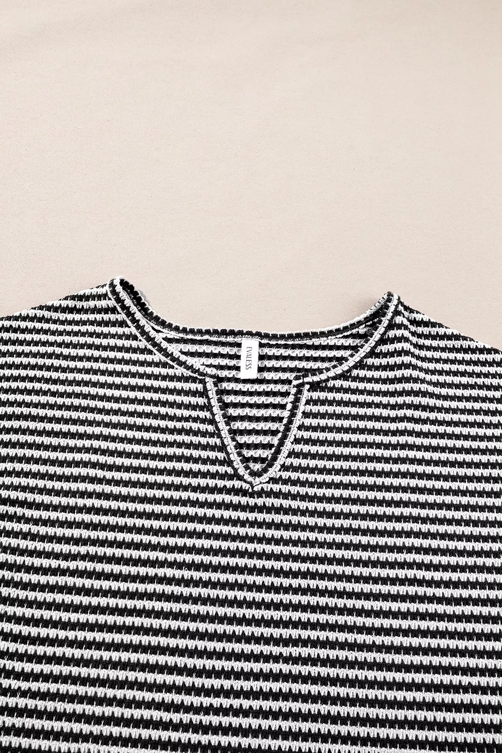 Stripe Textured Knit Notched Neck Cuffed Short Sleeve Top