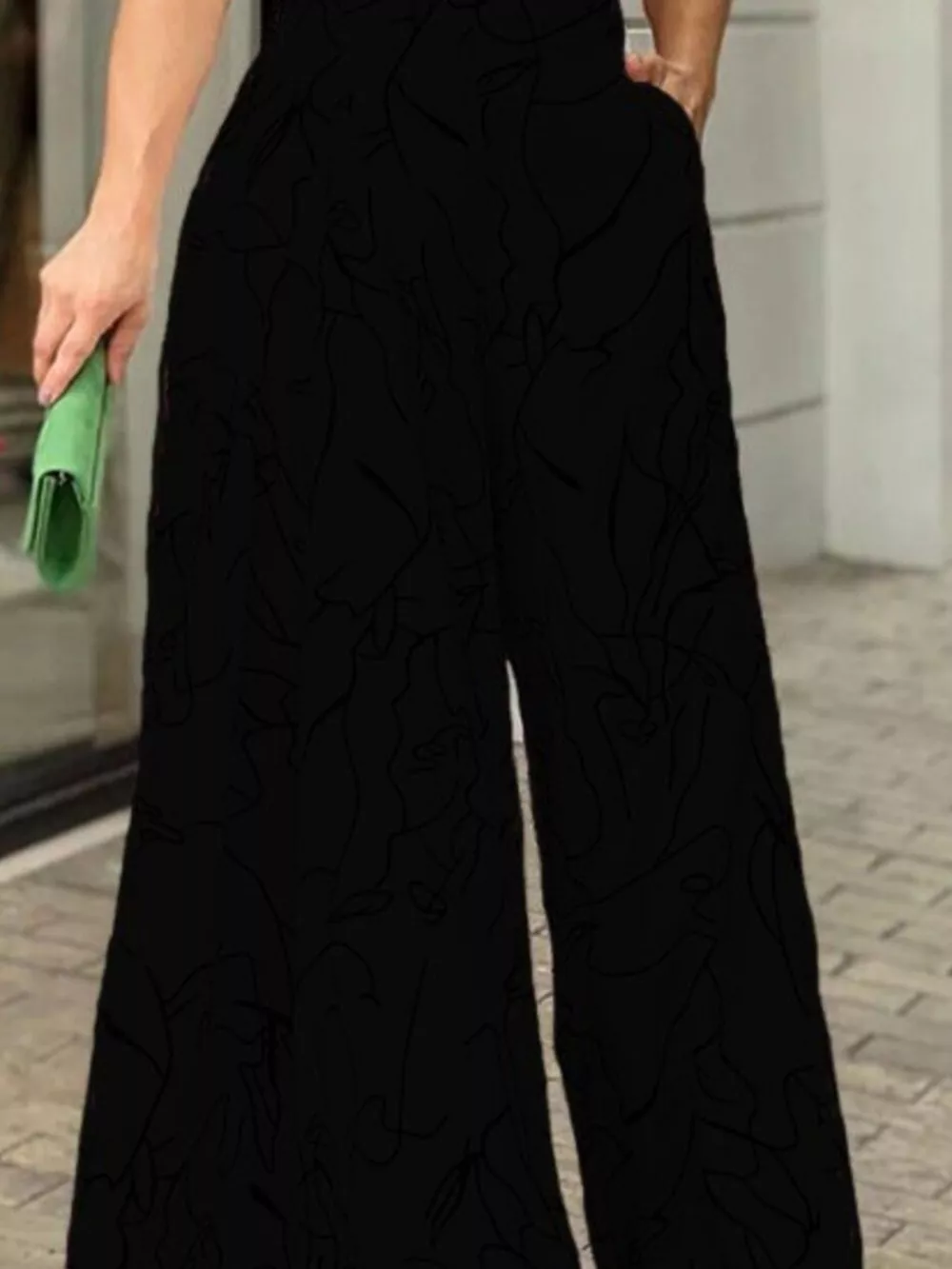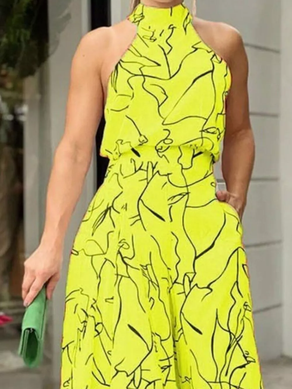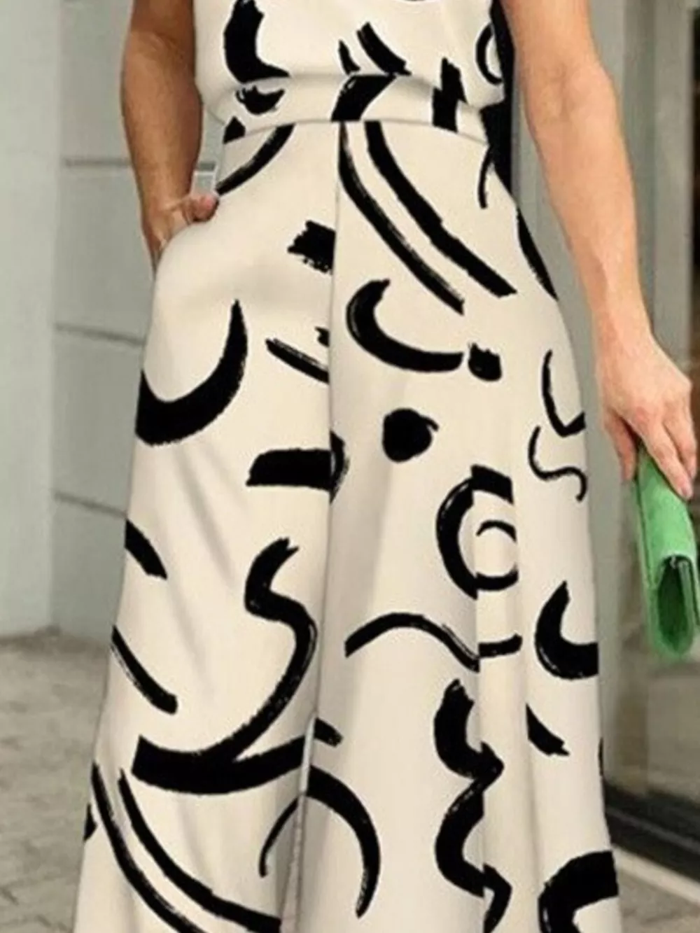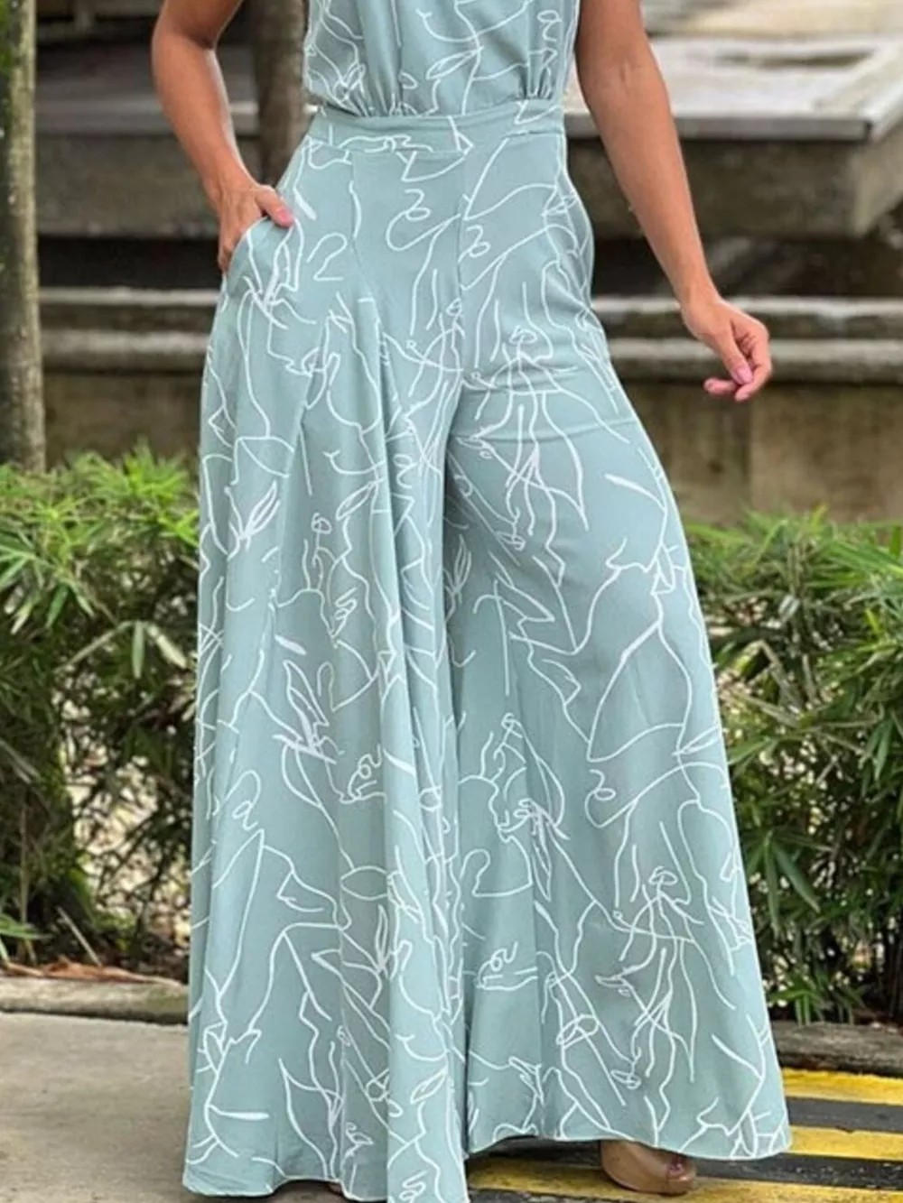 Halter Neck Abstract Print Wide Leg Jumpsuit