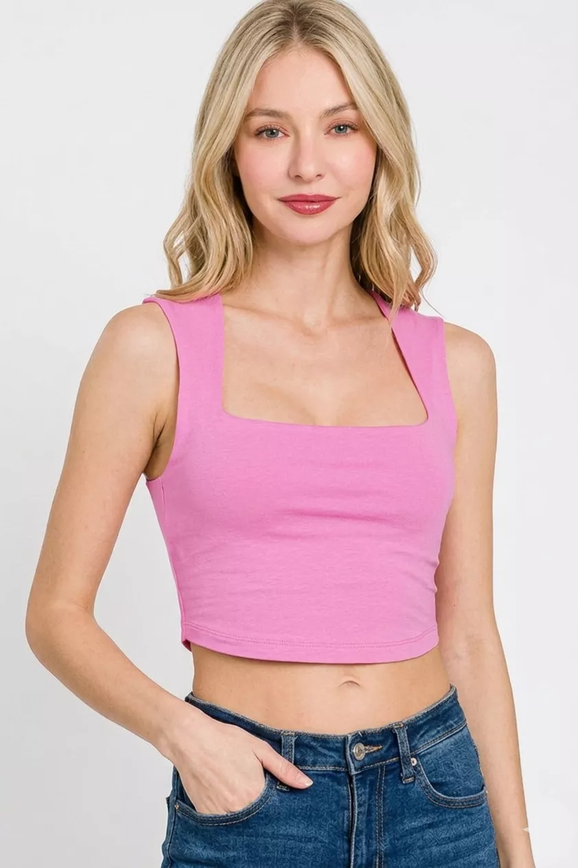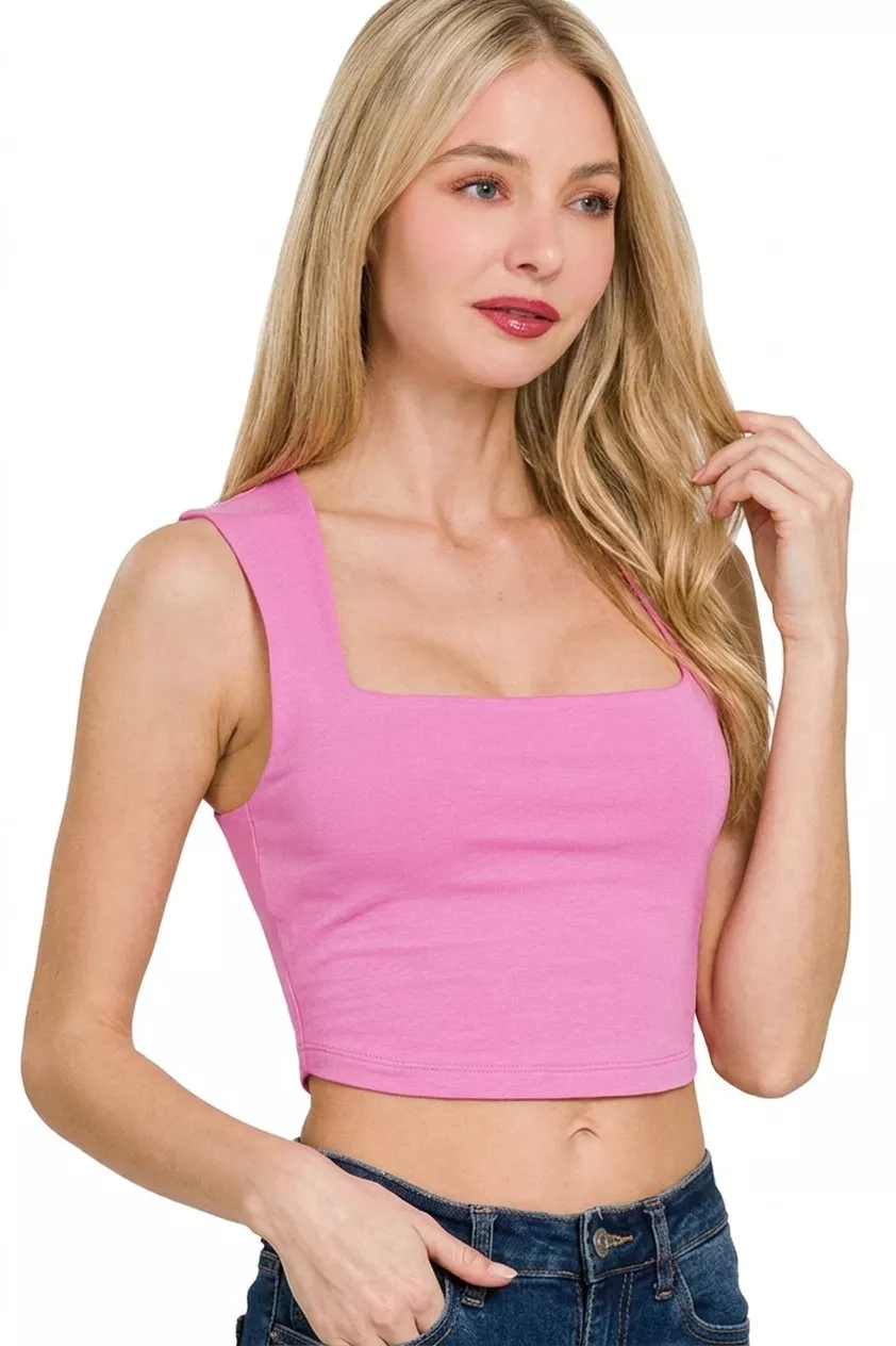 Zenana Double Layered Square Neck Cropped Tank Top