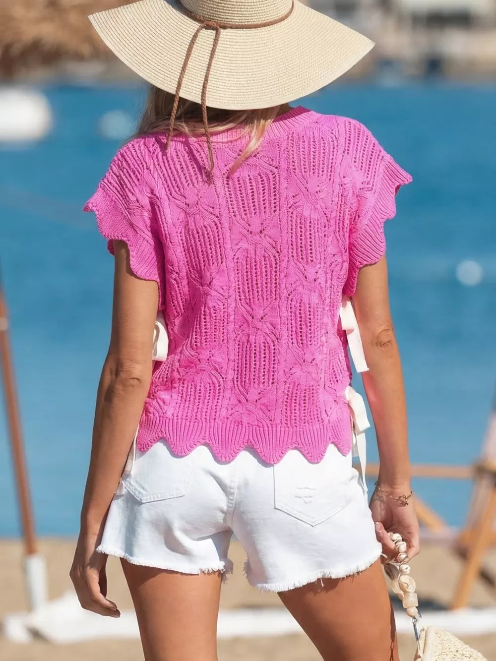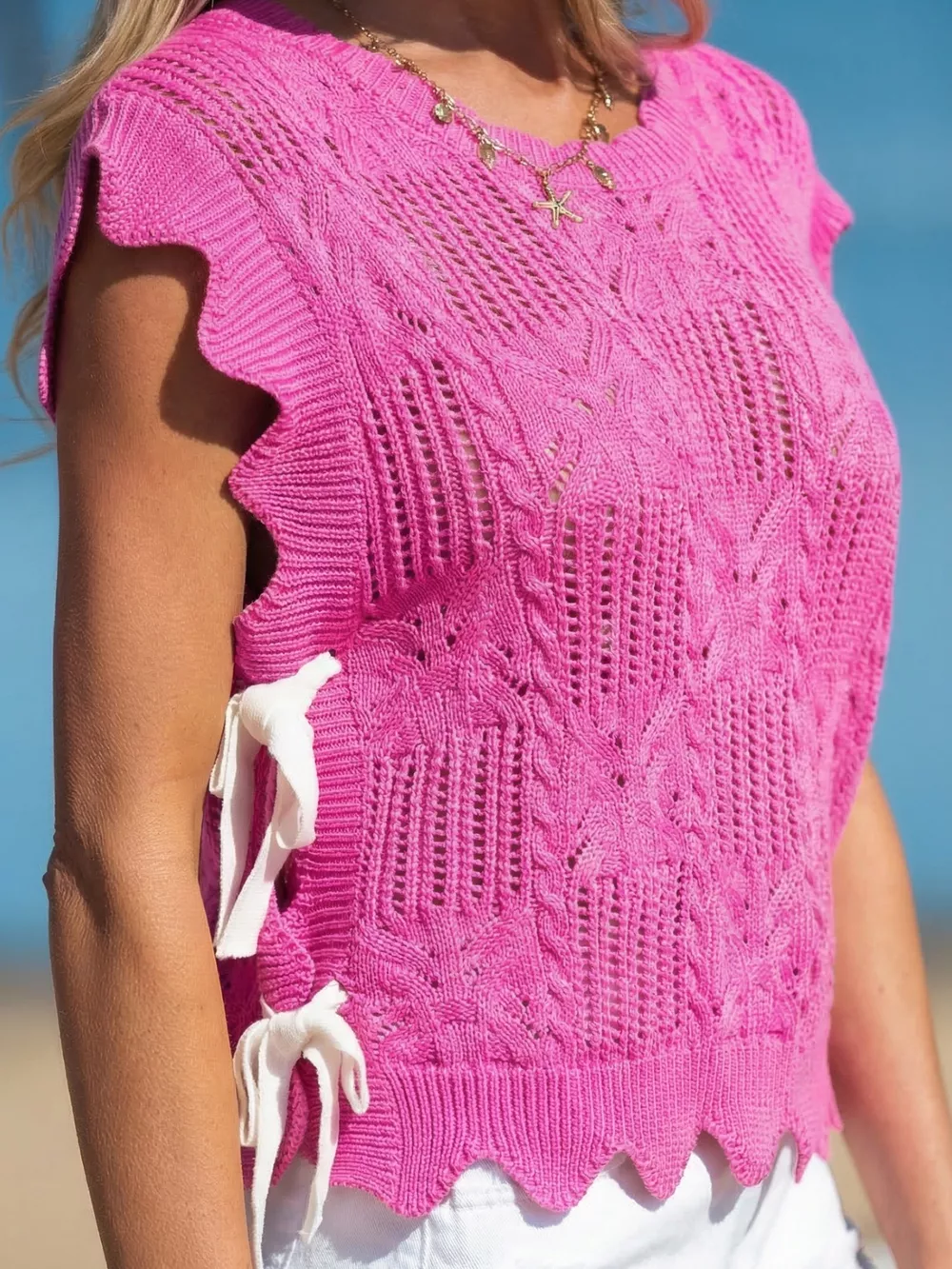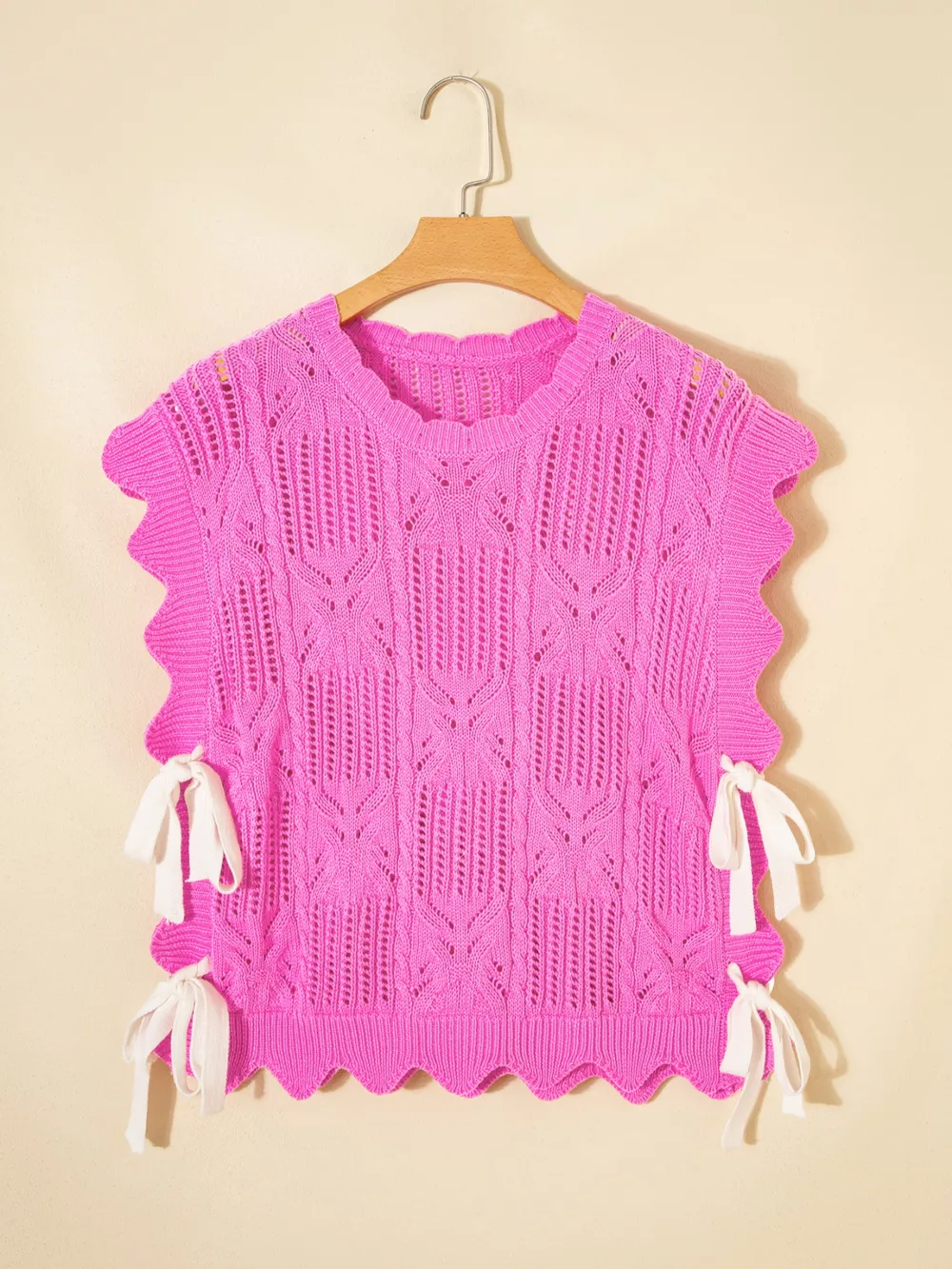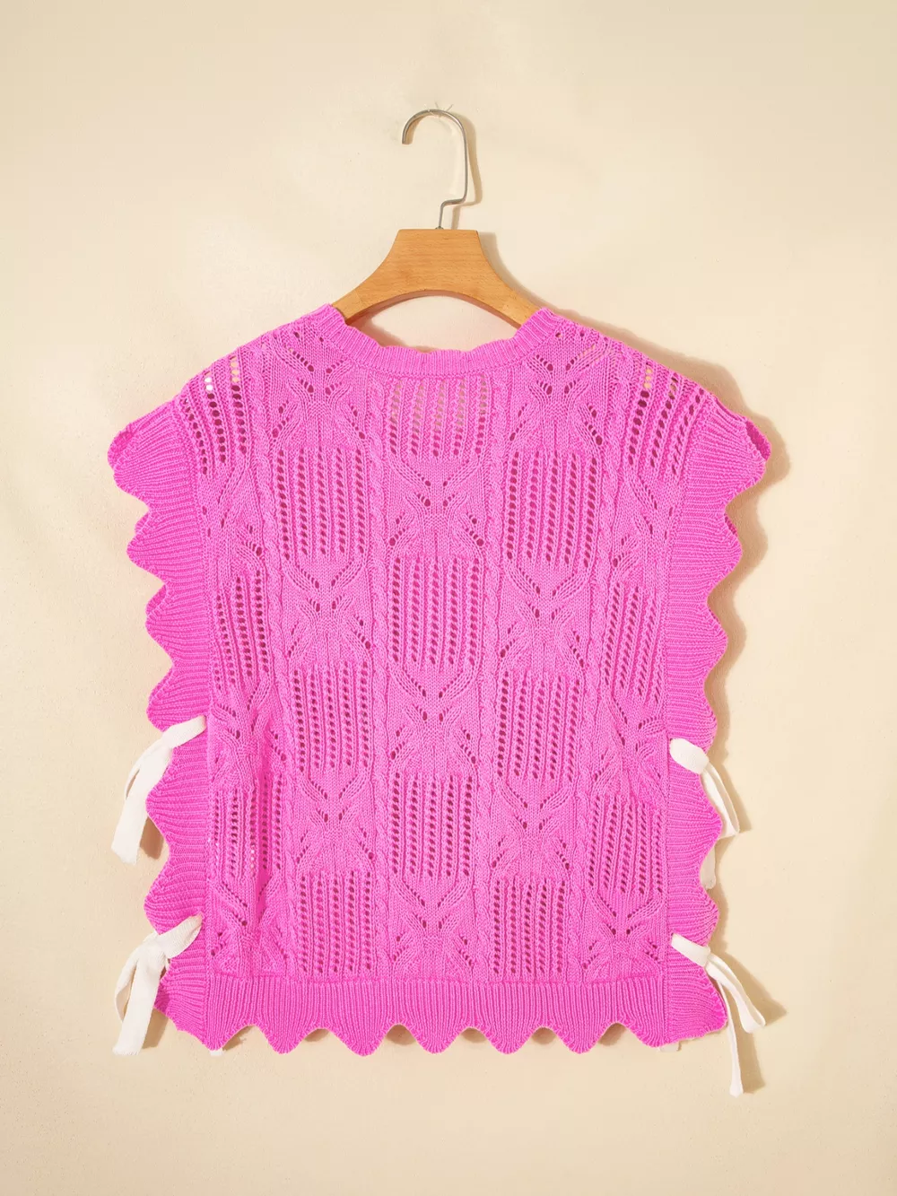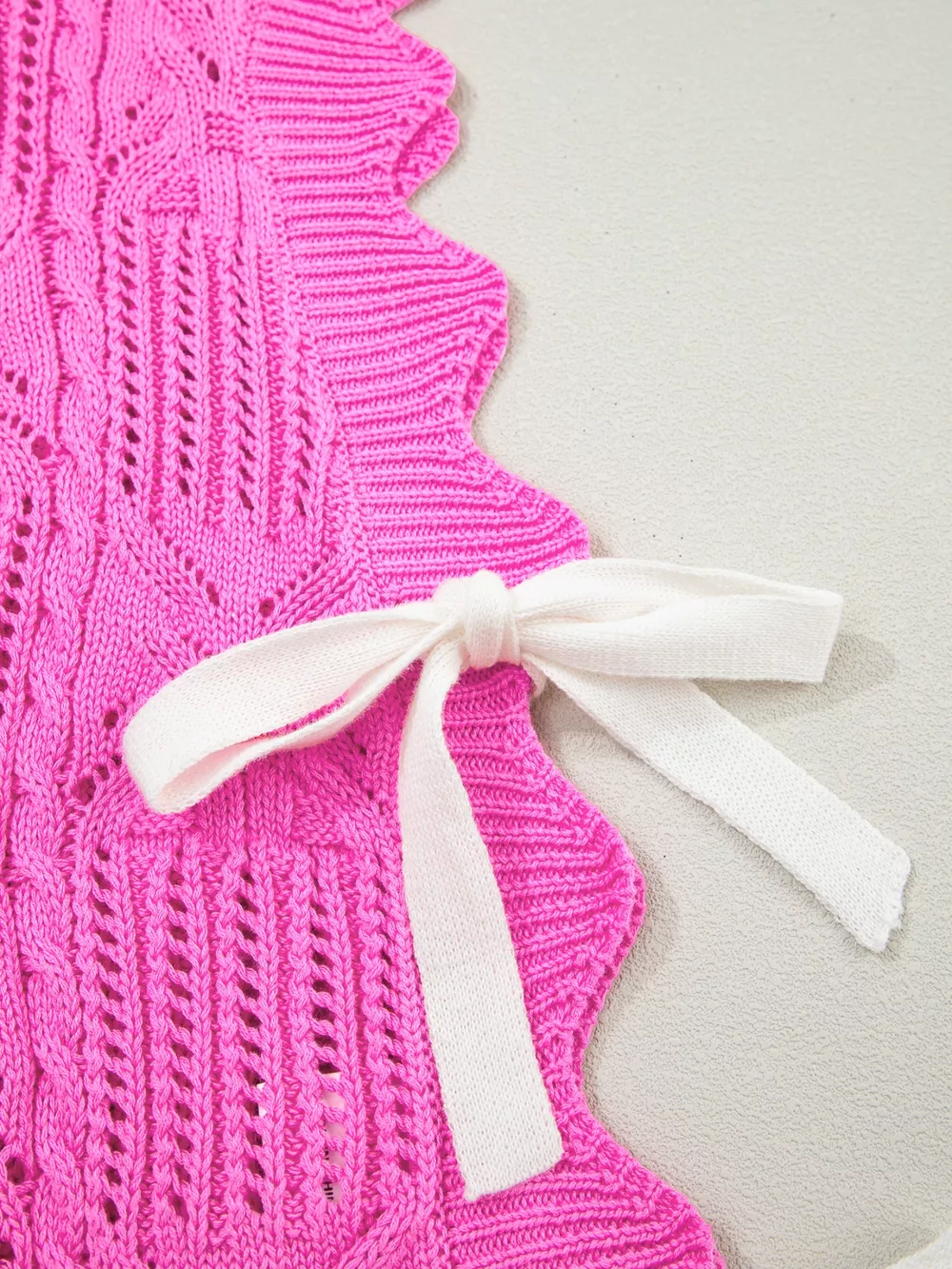 Side Tie Openwork Round Neck Sweater Vest