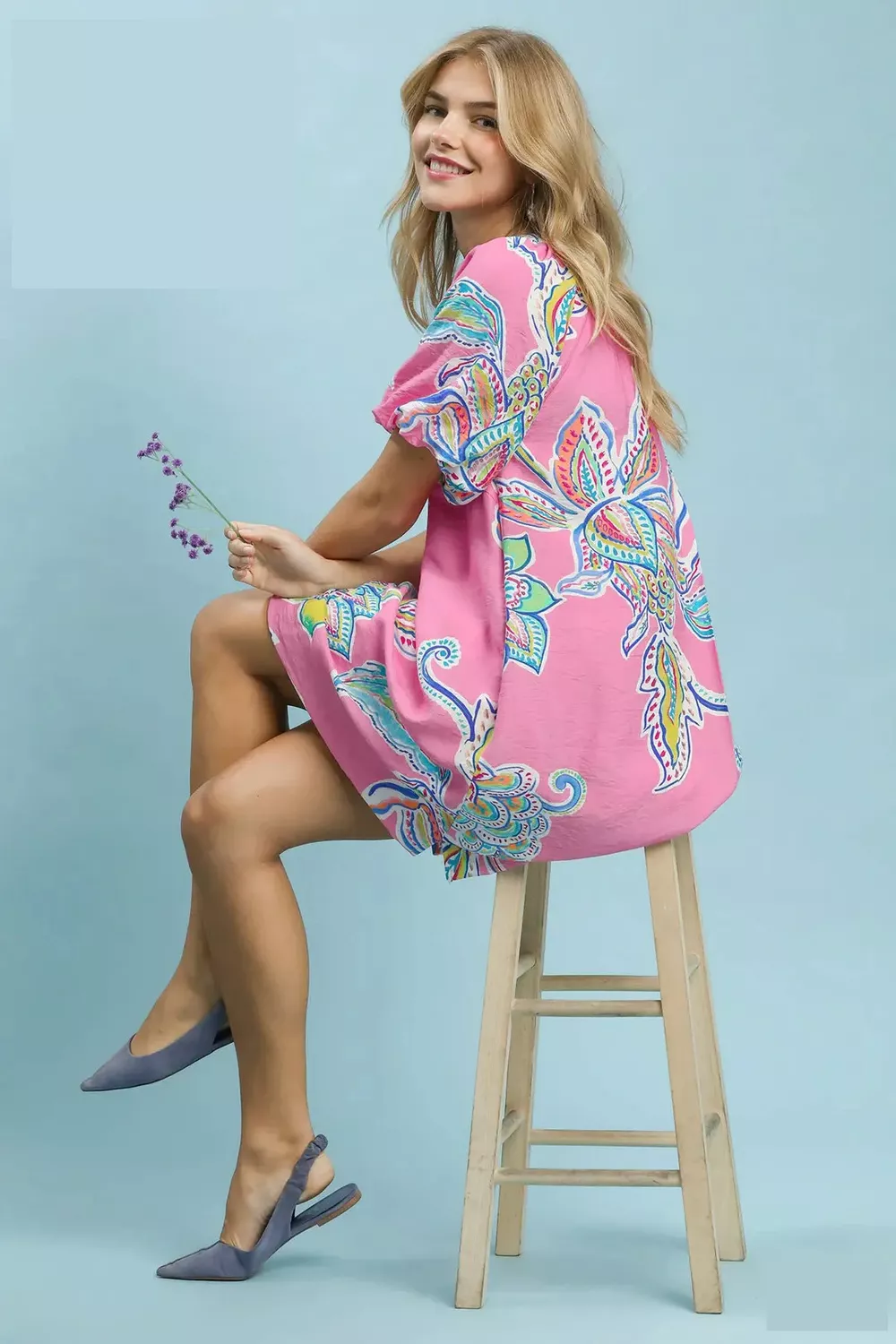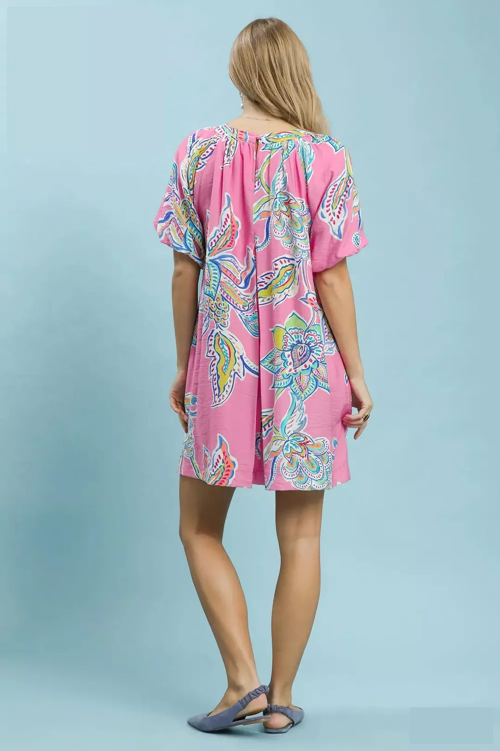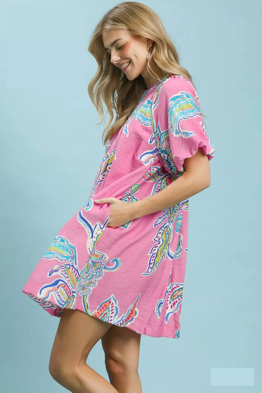 Umgee Boho Floral Print Mini Dress with Pockets