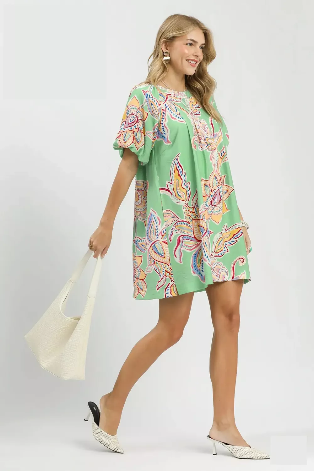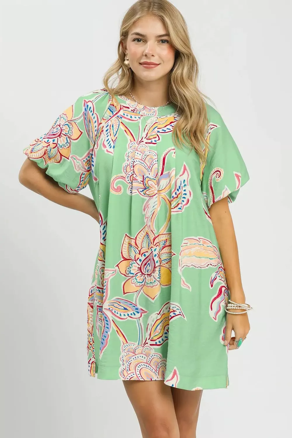 This floral print mini dress is perfect for a casual summer day. The lightweight fabric and comfortable fit make it easy to wear, while the vibrant floral print adds a touch of style. The round neck and short sleeves provide a classic look that can be dressed up or down. Made from a soft and breathable material, this dress is ideal for staying cool and comfortable in warm weather. The mini length is fashion and flattering, making it a great addition to any wardrobe.