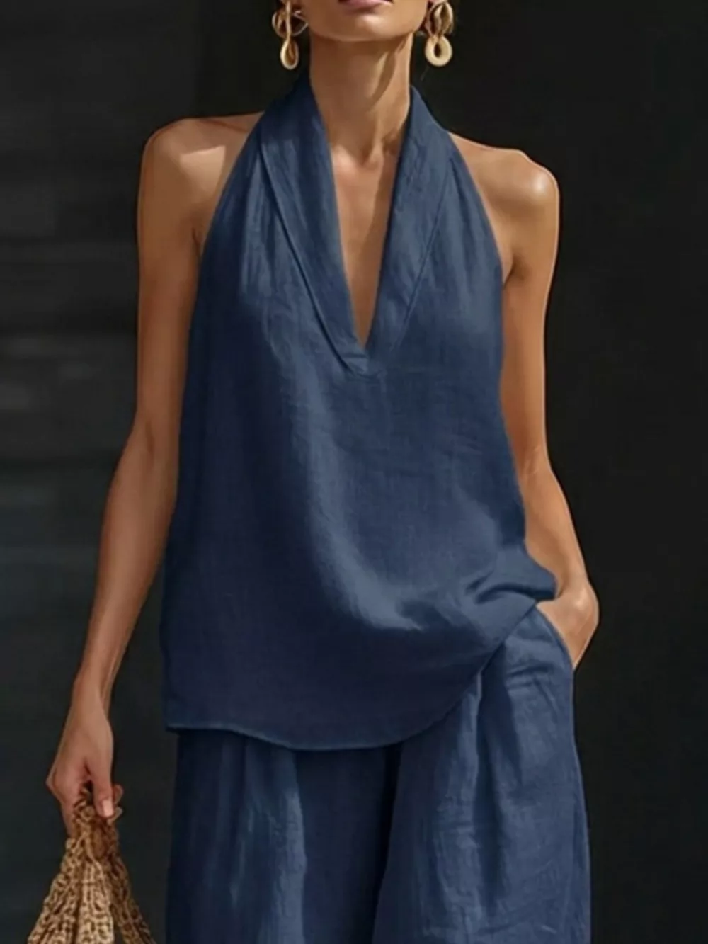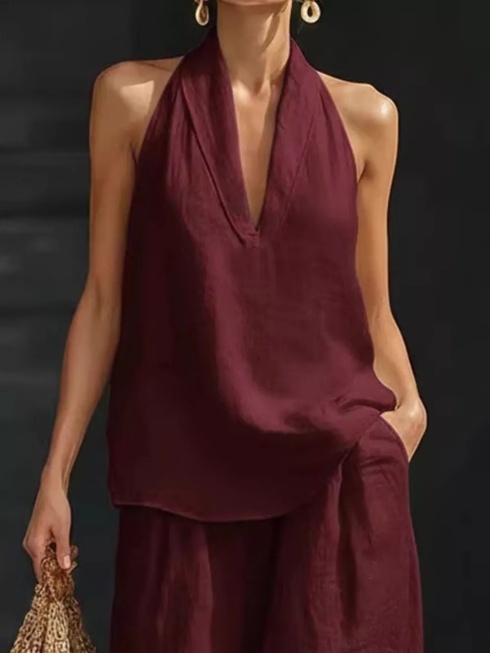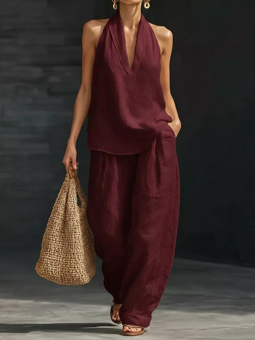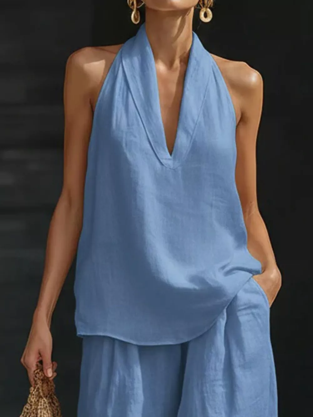 Full Size Halter Neck Top and Wide Leg Pants Set Plus Size