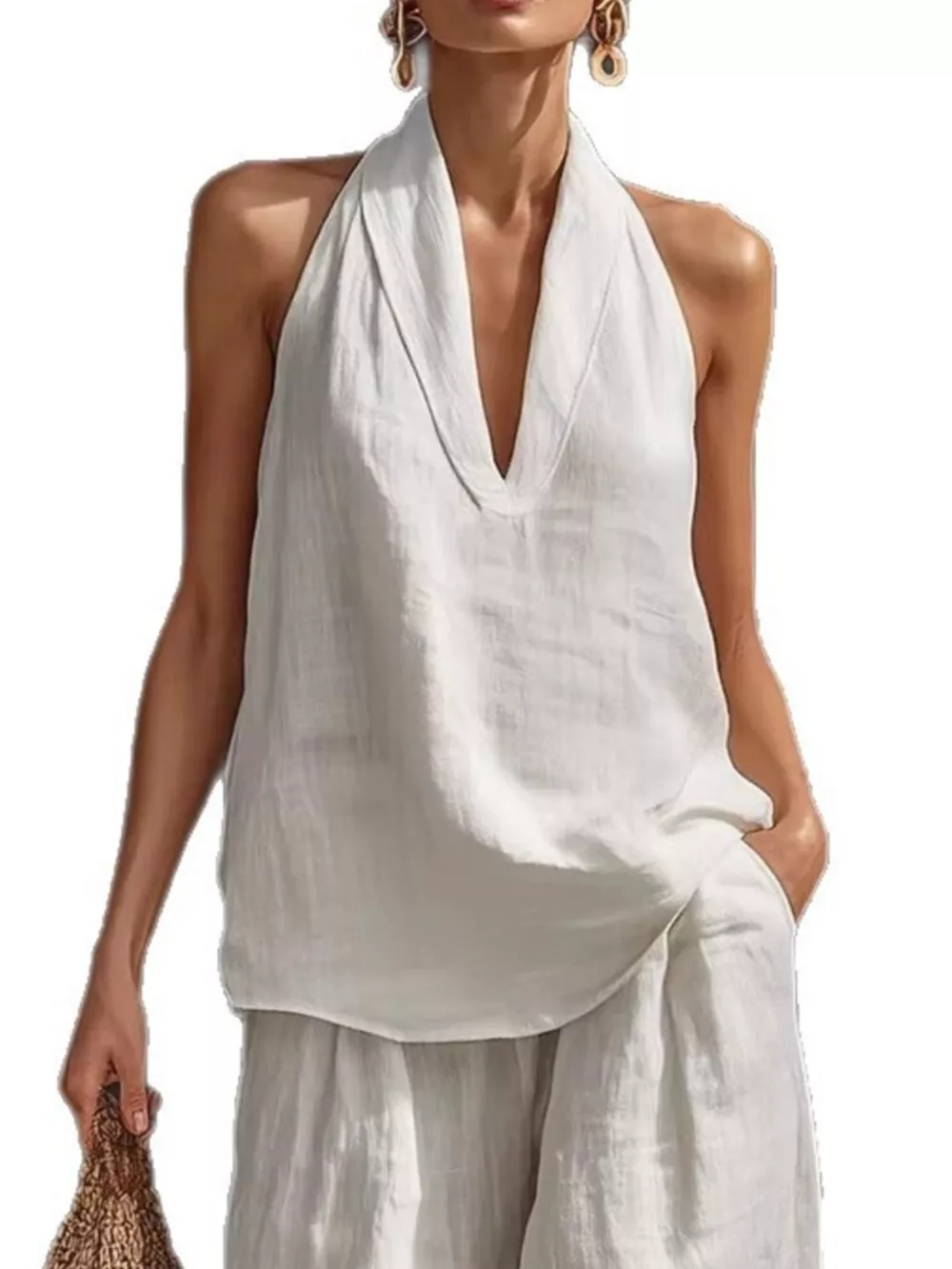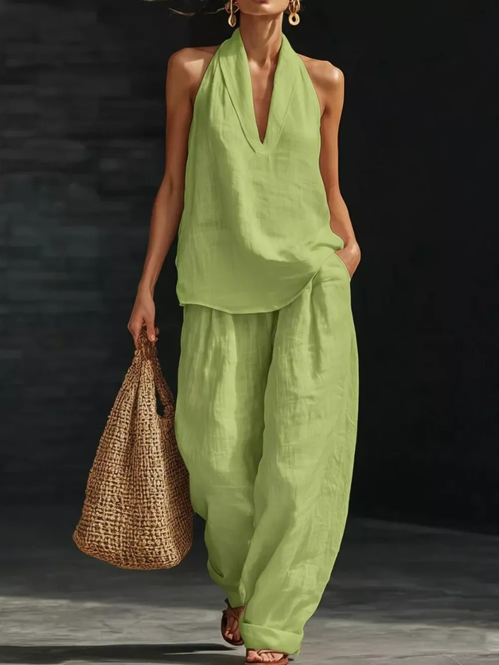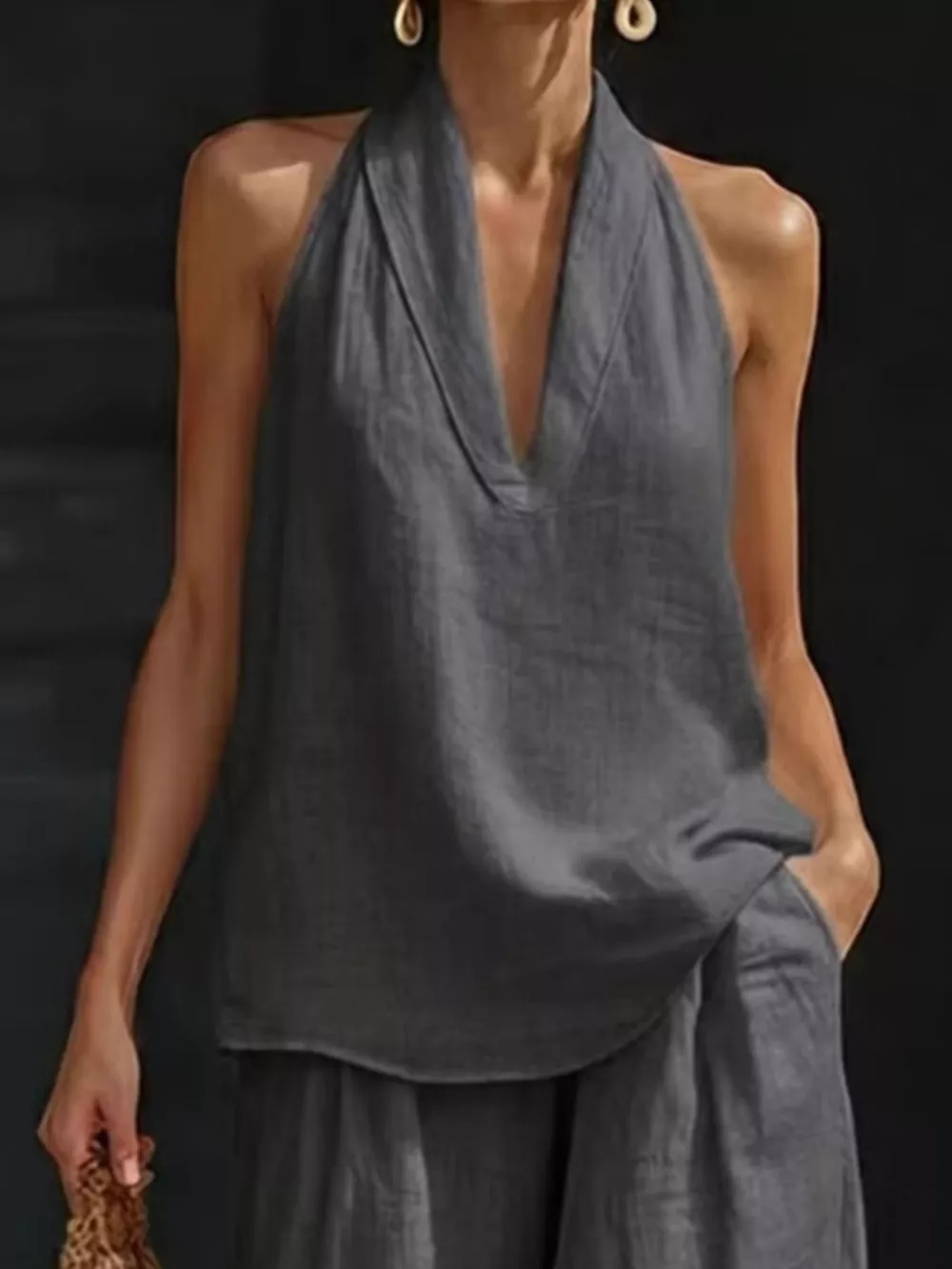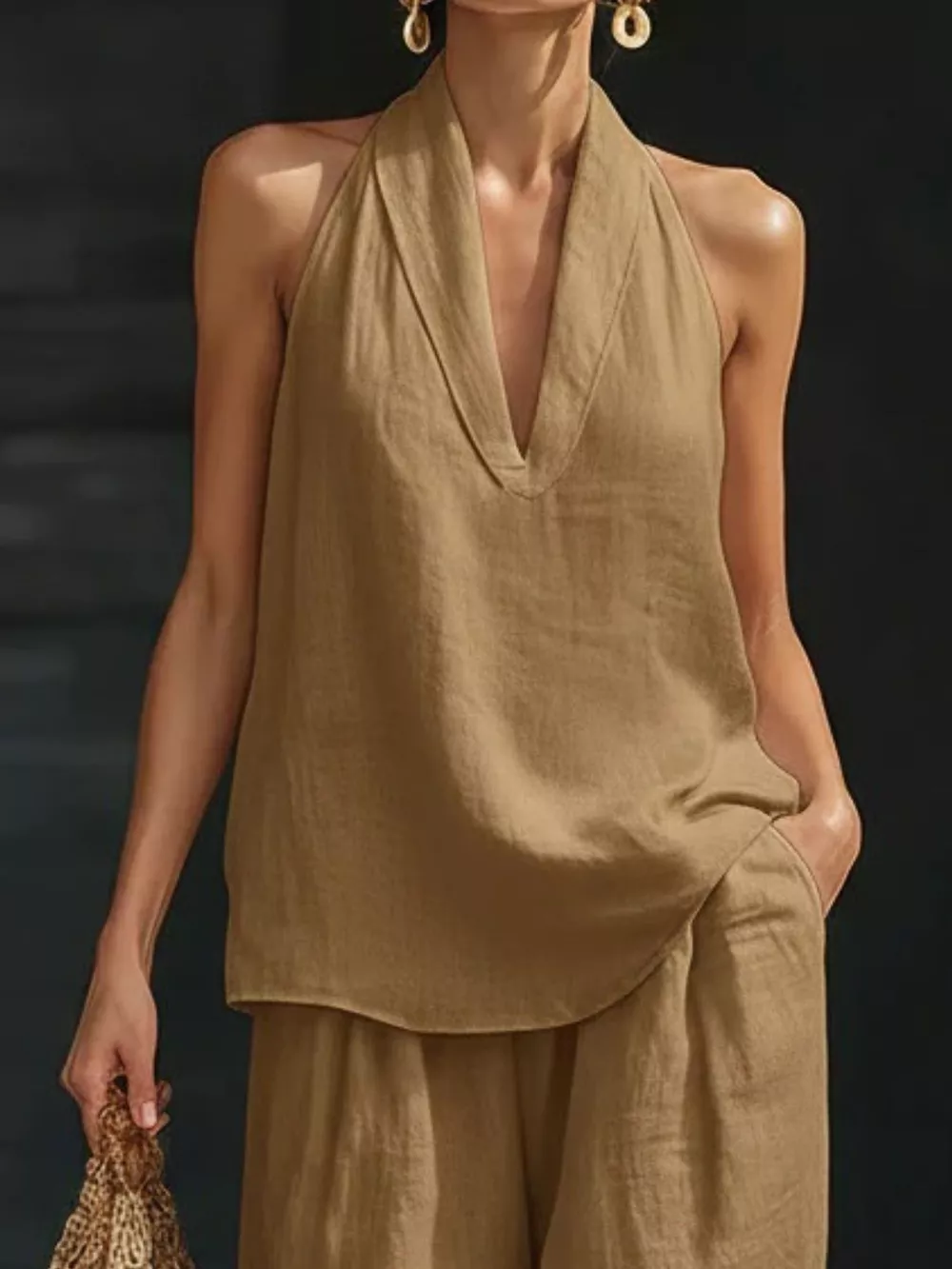 Full Size Halter Neck Top and Wide Leg Pants Set Plus Size