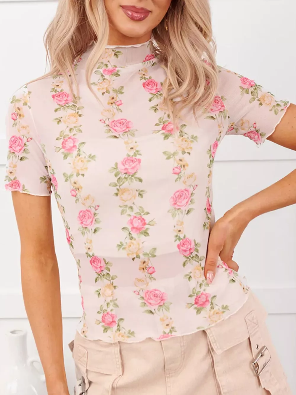 Floral Print Sheer Mesh Top